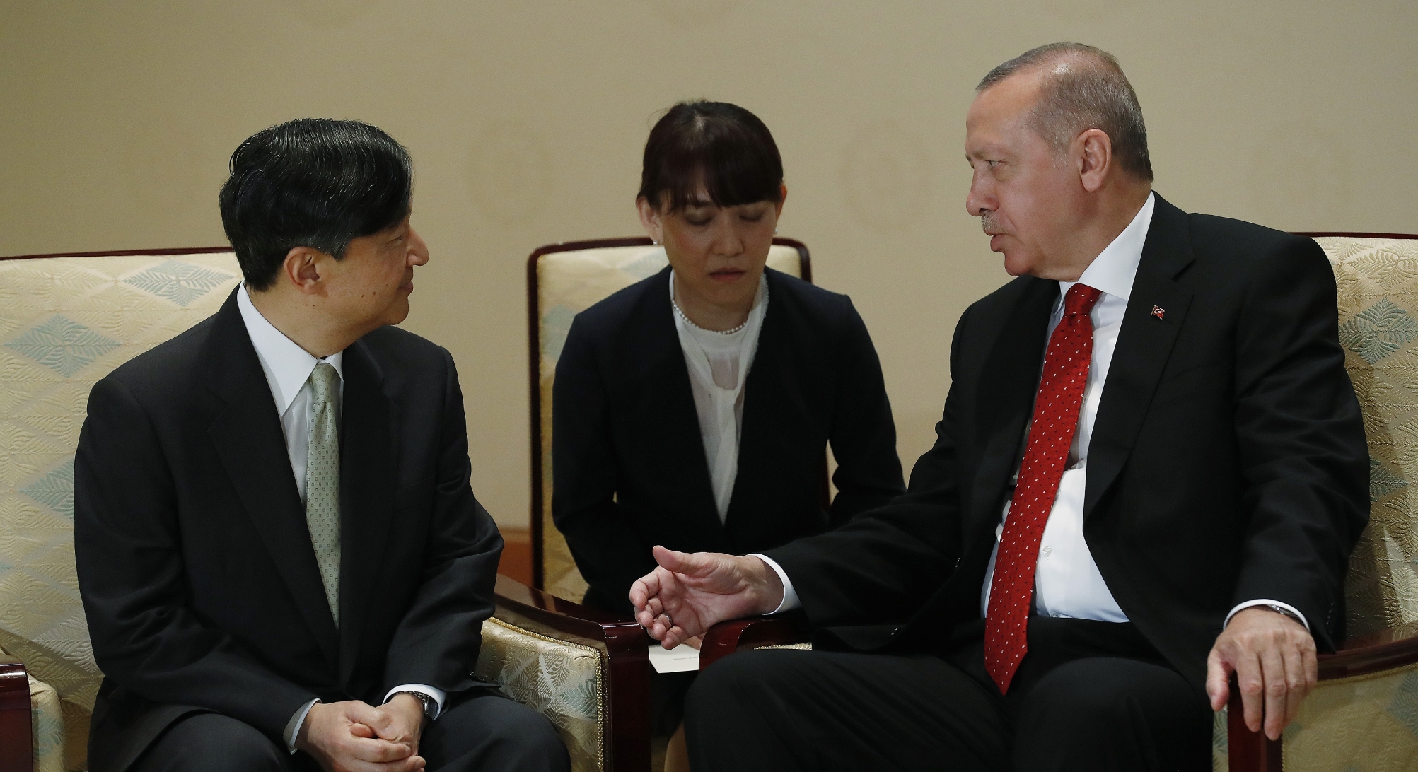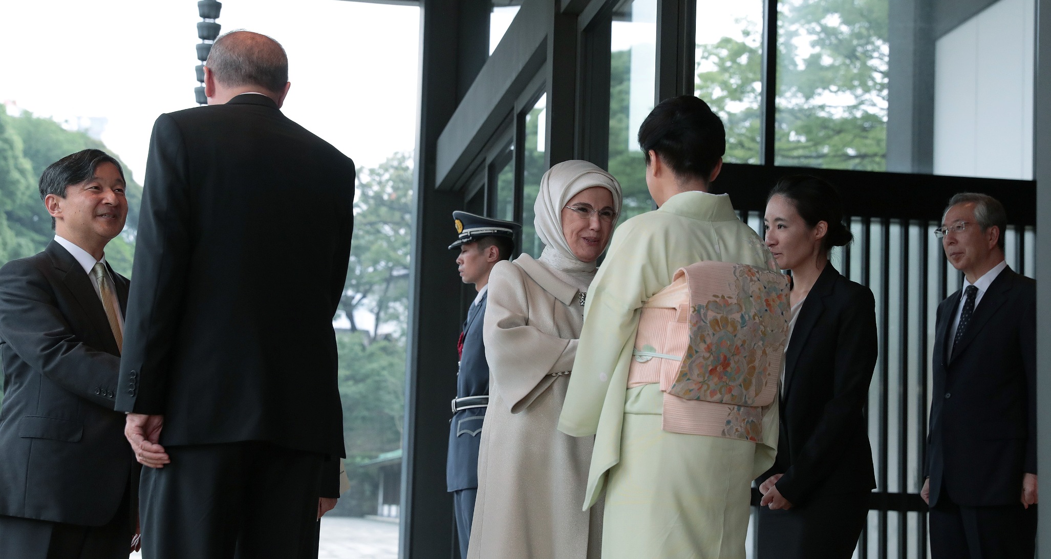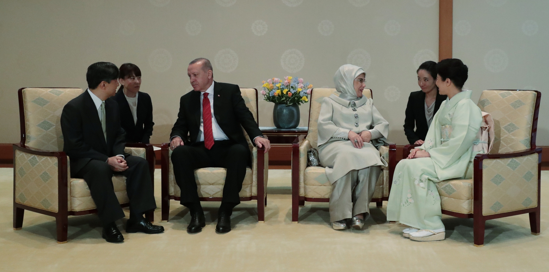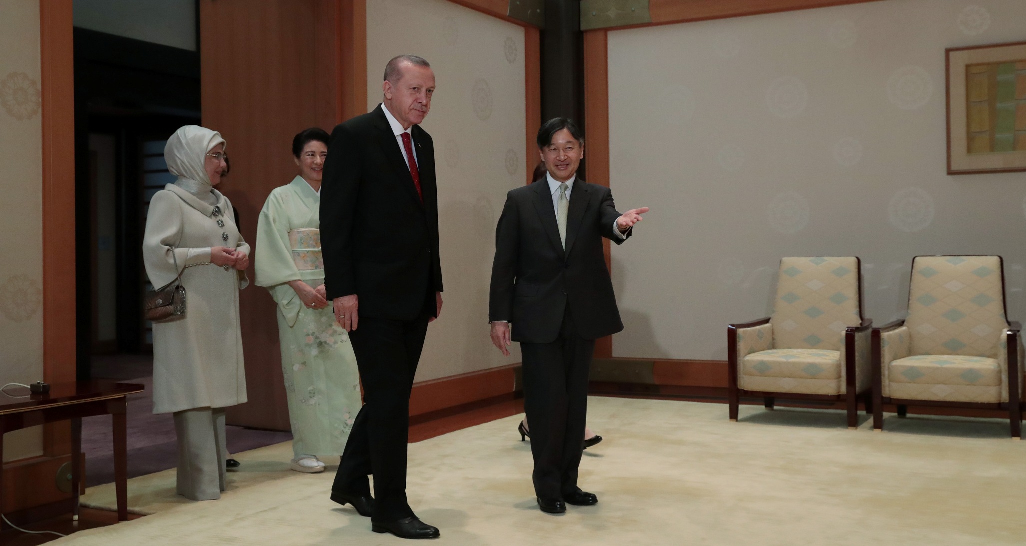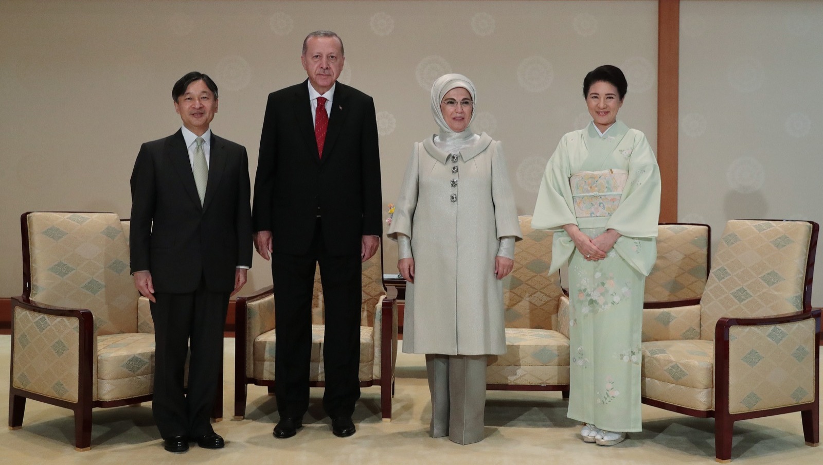 Cumhurbaşkanı Recep Tayyip Erdoğan, Japon İmparatoru Naruhito ile bir araya geldi. İmparatorluk Sarayı'nda basına kapalı gerçekleşen görüşme, yarım saat sürdü. Cumhurbaşkanı Erdoğan'a görüşmede eşi Emine Erdoğan da eşlik etti.