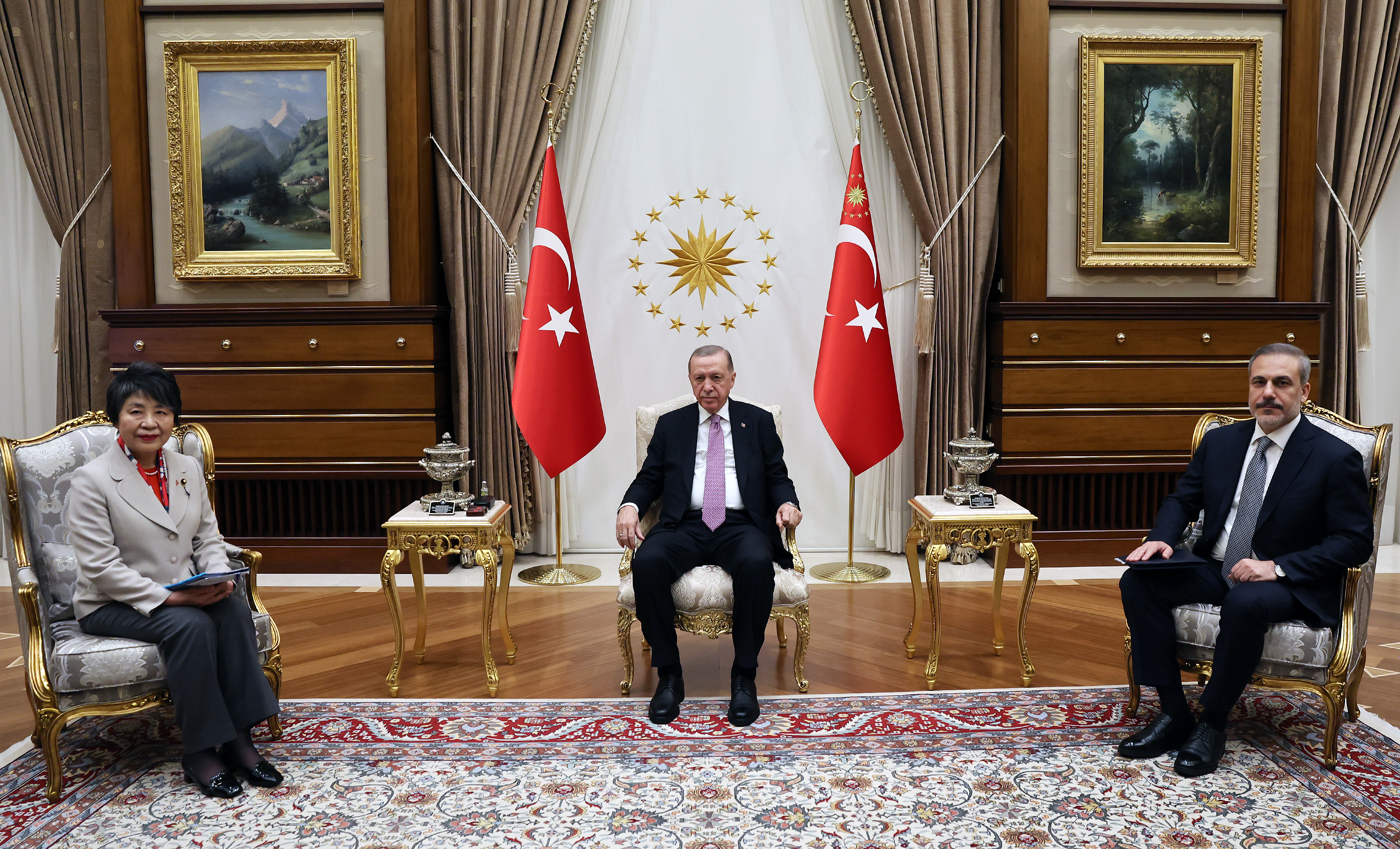 Cumhurbaşkanı Recep Tayyip Erdoğan, Japonya Dışişleri Bakanı Kamikawa Yoko'yu Cumhurbaşkanlığı Külliyesi'nde kabul etti. Kabulde, Dışişleri Bakanı Hakan Fidan da yer aldı.