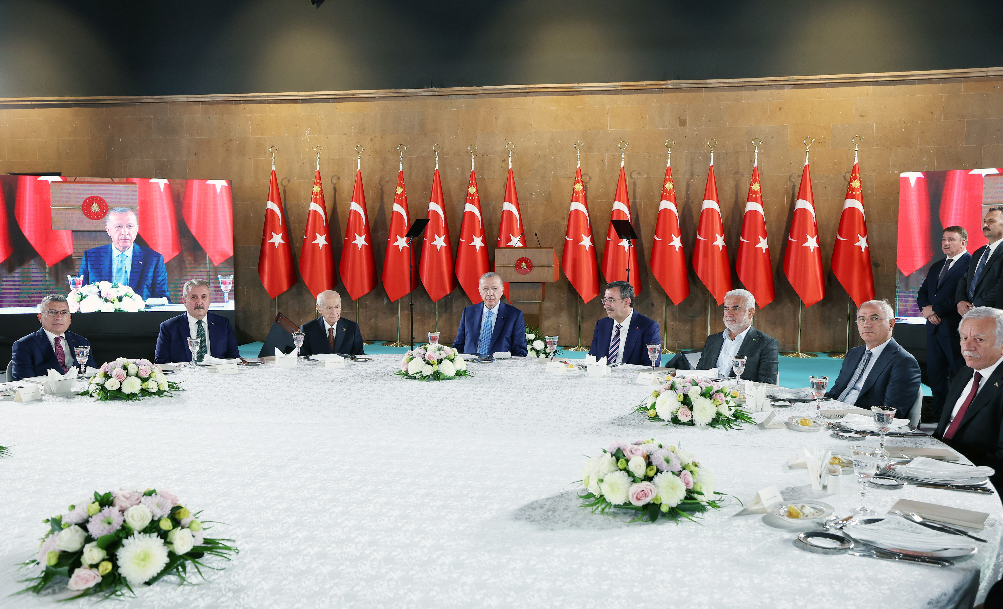 "Düşük nem, yüksek seyreden sıcaklık ve aşırı rüzgâr hızı sebebiyle 15-19 Ağustos arasında tam 306 orman yangını çıktı. Bu yangınlara hem havadan hem karadan etkin bir şekilde müdahale edildi. Tarım ve Orman Bakanım başta olmak üzere ilgili bakanlarımız sürekli sahadaydı. Ben de kendilerinden gidişatla ilgili düzenli olarak bilgi aldım. Yürütülen çalışmalarla ilgili fikir vermesi için burada bazı rakamları kısaca paylaşmak arzusundayım. Sadece 15-19 Ağustos arasında hava araçlarımız 1640 saat mesai yaptı. Kara araçlarımızın toplam kat ettiği mesafe 3 milyon kilometreye yaklaştı. Yangınlara yalnızca havadan 25 bin 472 ton su atıldı. Tüm birimlerimizde, tüm ekiplerimizde tam bir seferberlik ruhuyla yangınları söndürmek için çalıştık, ter döktük. Bilhassa orman personelimiz canlarını tehlikeye atma pahasına büyük bir özveriyle günlerce mücadele ettiler. Mevla hepsinden razı olsun diyorum."