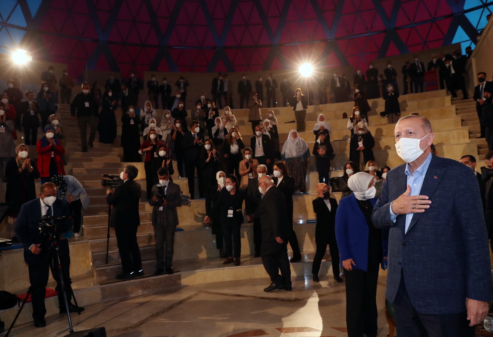 Sazova Parkı'ndaki Anadolu Üniversitesi Türk Dünyası Bilim Kültür ve Sanat Merkezi'ndeki programda konuşan Cumhurbaşkanı Erdoğan, Eskişehir ziyaretinin son programında, kadınlarla birlikte olmaktan duyduğu memnuniyeti dile getirdi.