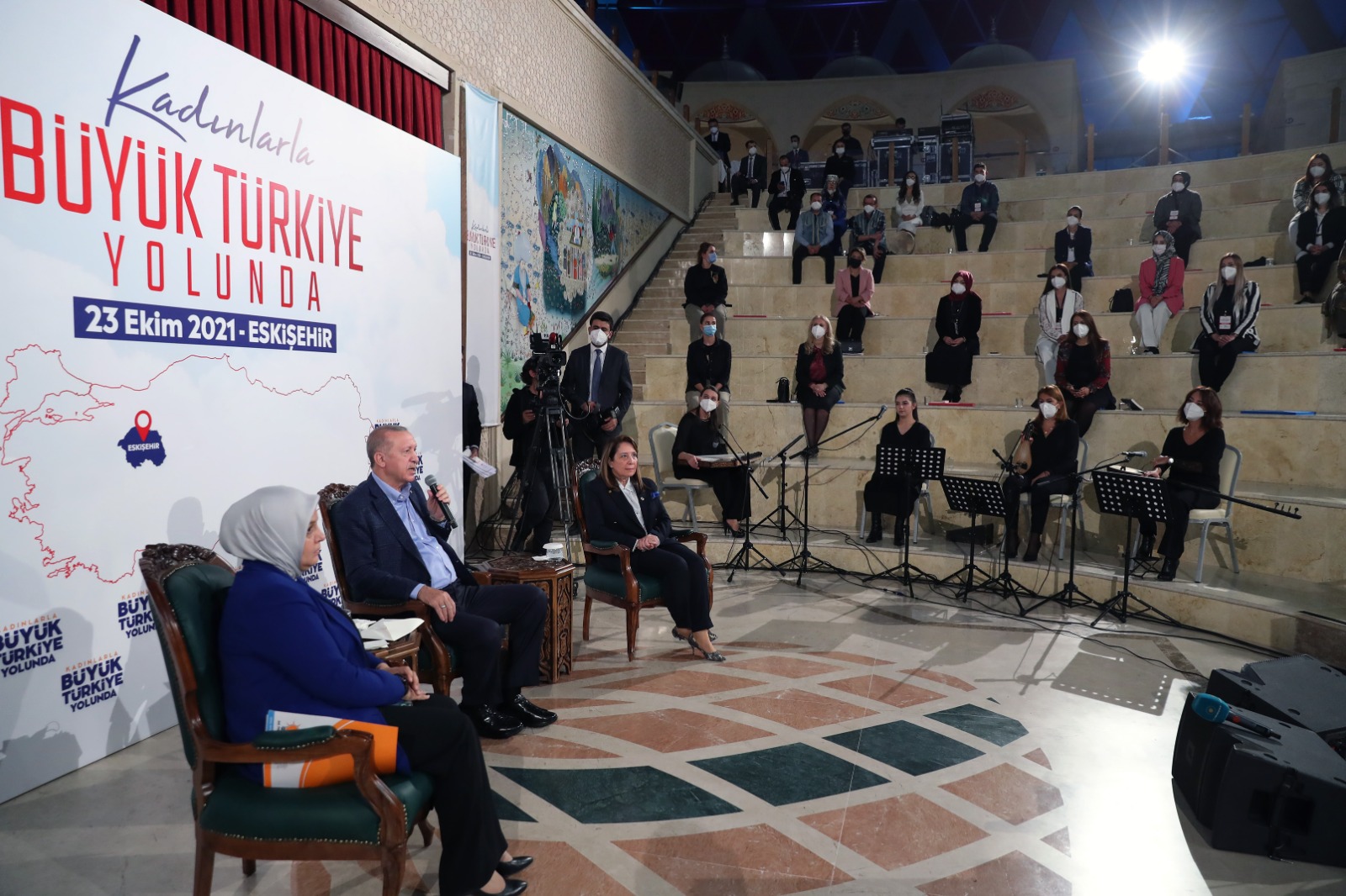 Cumhurbaşkanı Erdoğan, Sazova Parkı'ndaki Anadolu Üniversitesi Türk Dünyası Bilim Kültür ve Sanat Merkezi'ndeki programda kadınların sorularını yanıtladı.