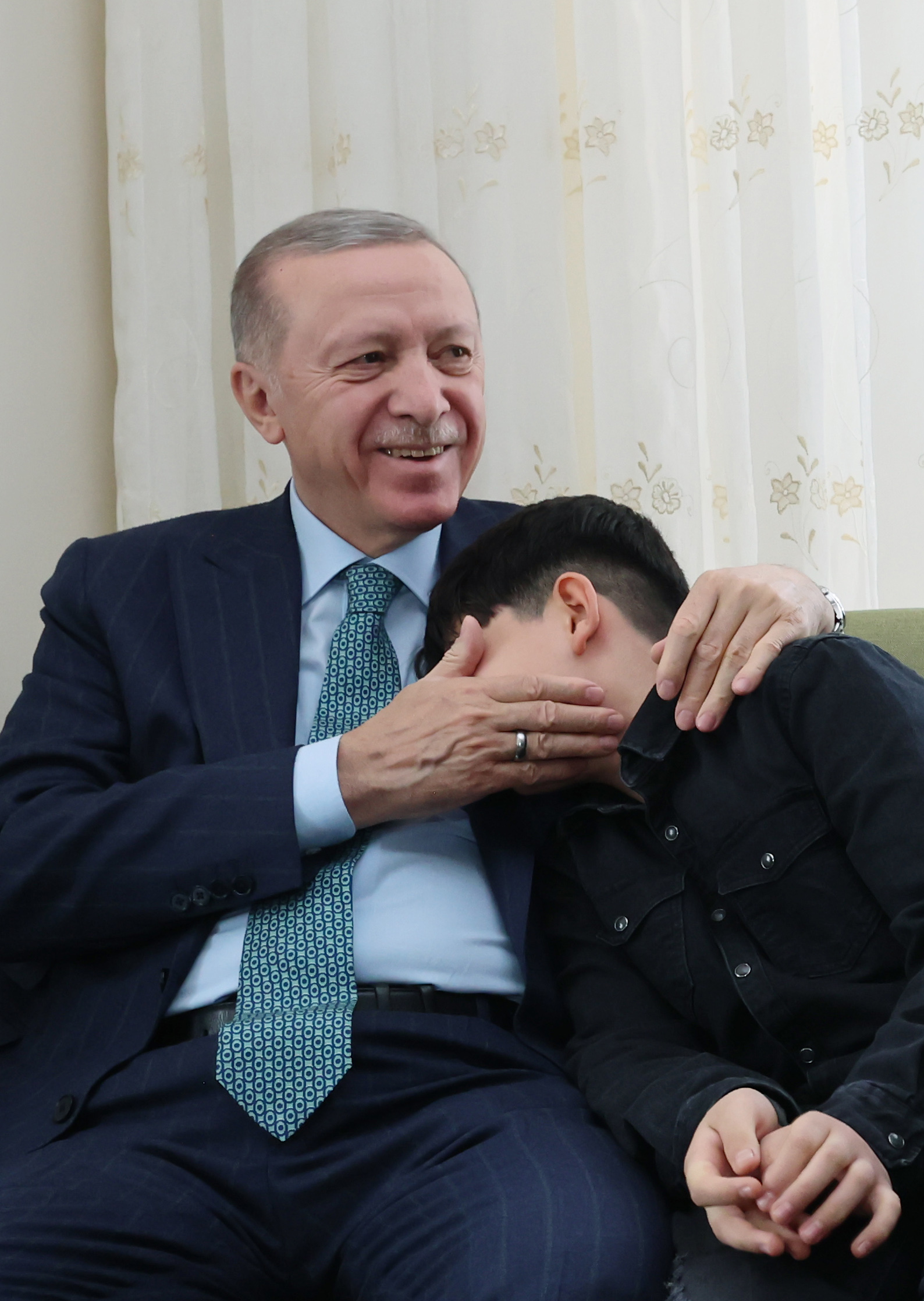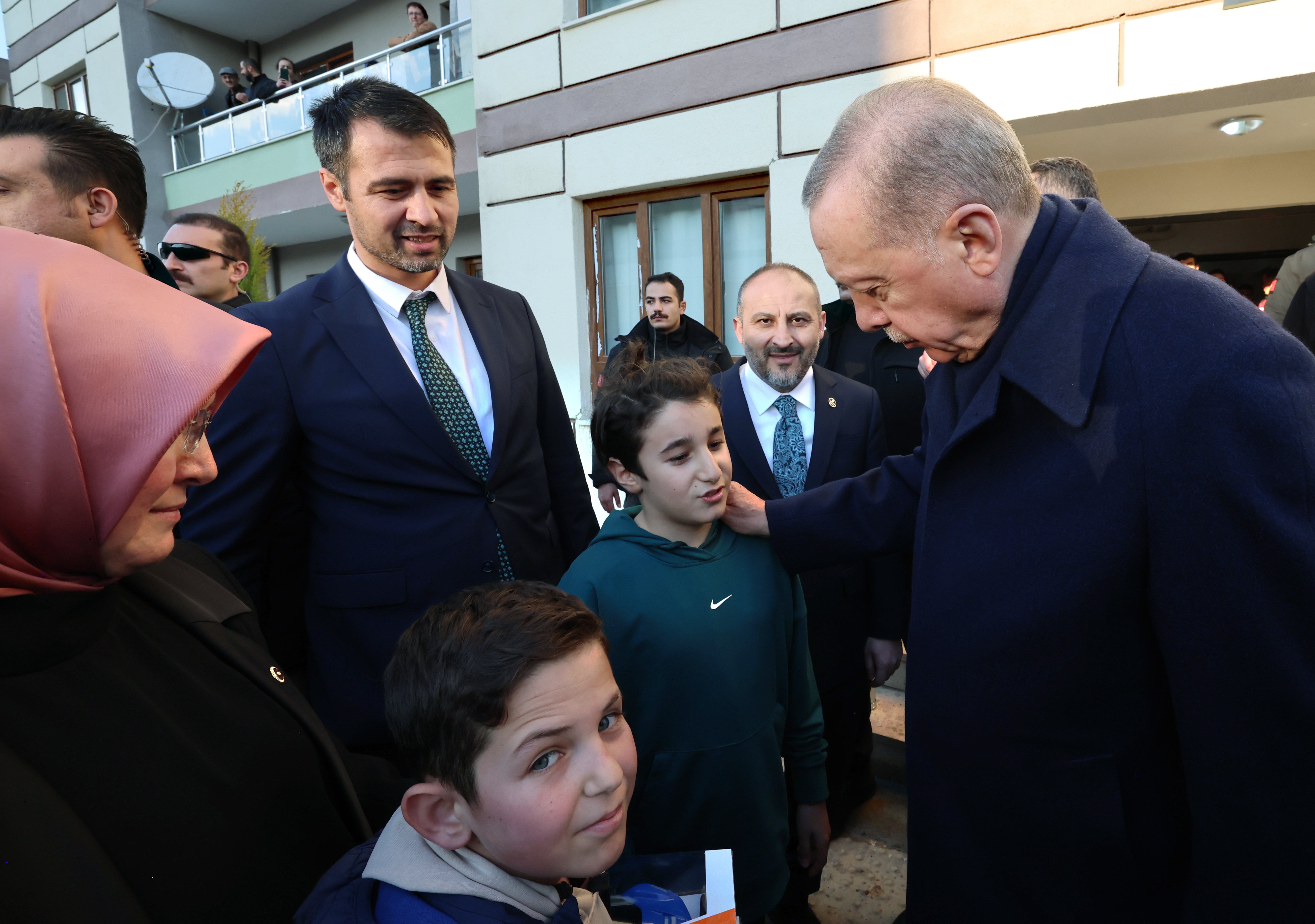 Cumhurbaşkanı Erdoğan, 2 çocuğa da koruyucu ailelik yapan Üzüm'den durumlarına ilişkin bilgi aldı, çocukları sevdi.