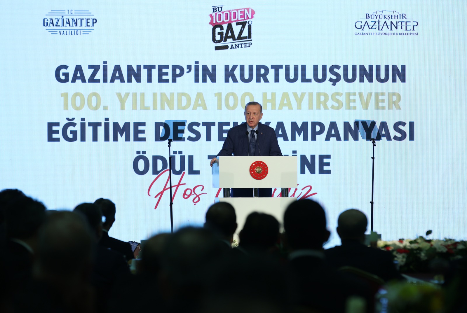 Cumhurbaşkanı Recep Tayyip Erdoğan, Gaziantep'in Kurtuluşunun 100. Yılında 100 Hayırsever Eğitime Destek Kampanyası Ödül Töreni’nde konuştu.