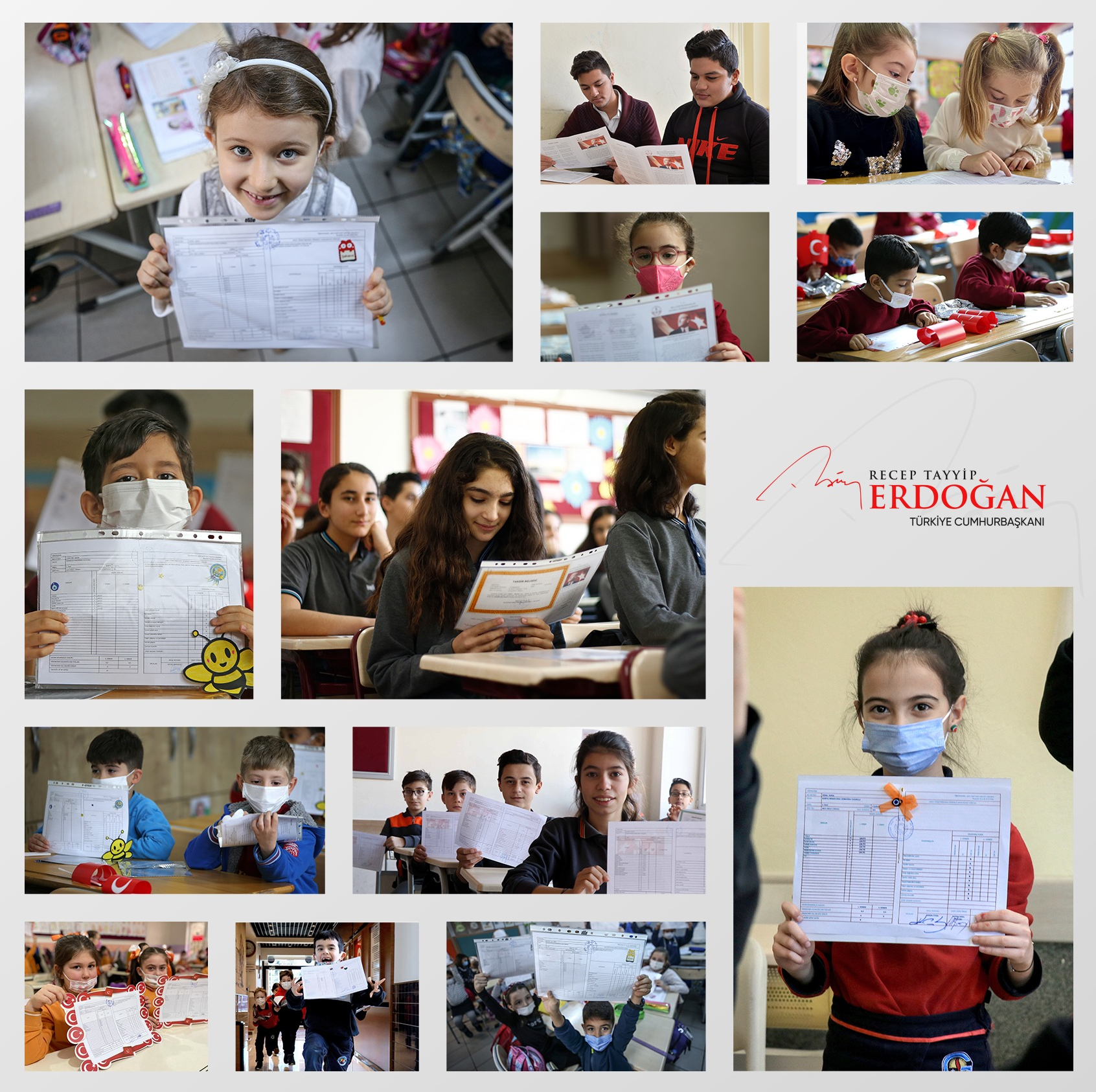 Cumhurbaşkanı Erdoğan'ın paylaşımında, karne alan bazı öğrencilerin fotoğrafları da yer aldı.