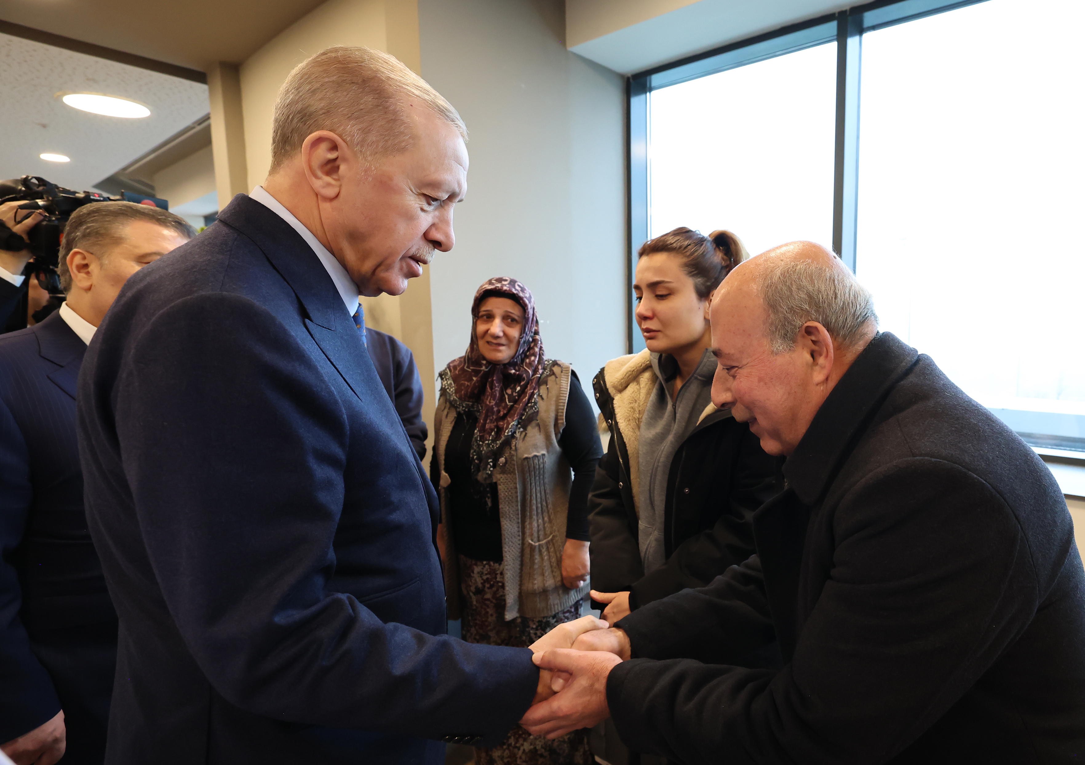 Cumhurbaşkanı Recep Tayyip Erdoğan, Gaziantep'in Nurdağı ilçesi Kartal köyü mevkisinde kaza kırıma uğrayan Emniyet Genel Müdürlüğü Havacılık Daire Başkanlığı envanterine kayıtlı helikopterde yaralanan teknisyen Emrah Yıldız'ın ailesi ile görüştü.