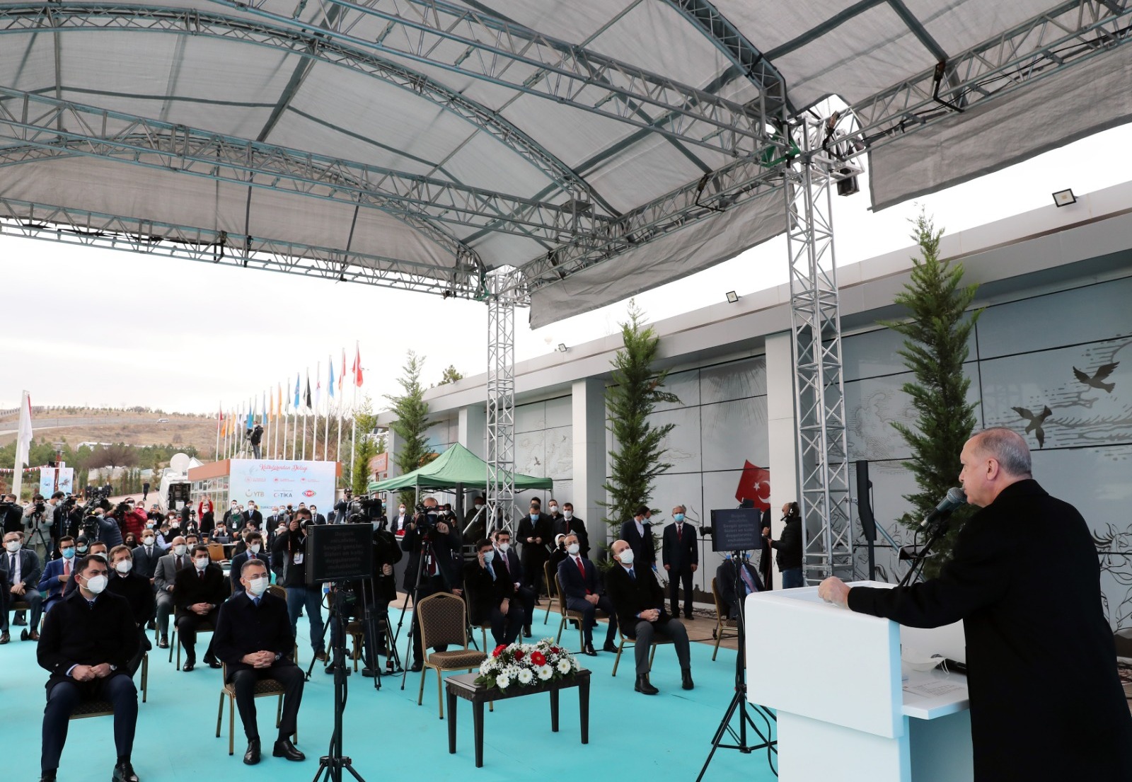 Bünyesindeki ahırı, gezi alanları, tribünü, açık ve kapalı ok atış sahaları, güreş alanları, satış ve tamir atölyeleri, konferans salonu, kafeteryası ve diğer tüm birimleriyle bu güzel tesisin Ankara'ya kazandırılmasında emeği geçenleri tebrik eden Cumhurbaşkanı Erdoğan, yaklaşık 1,5 yıldır faaliyette olan tesisin resmi açılışını yapmanın bugüne nasip olduğunu belirtti.