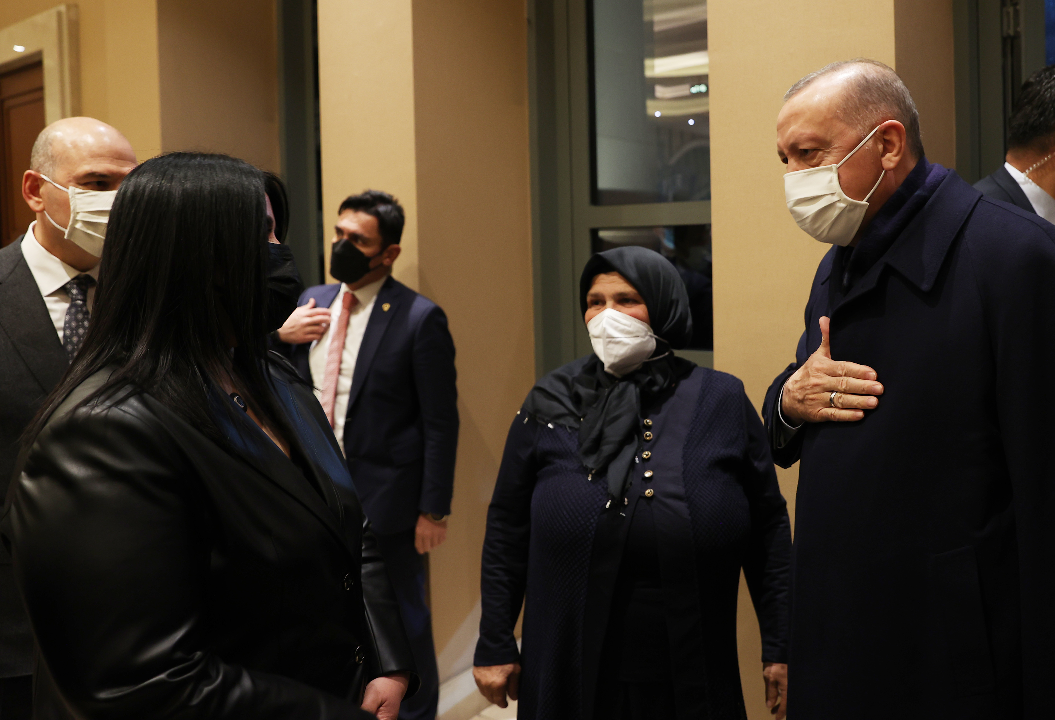 Cumhurbaşkanı Erdoğan, filmi izlemeden önce şehit Eren Bülbül'ün annesi Ayşe Bülbül ve şehit Astsubay Kıdemli Başçavuş Ferhat Gedik'in eşi Cemile Gedik ile bir süre sohbet etti.