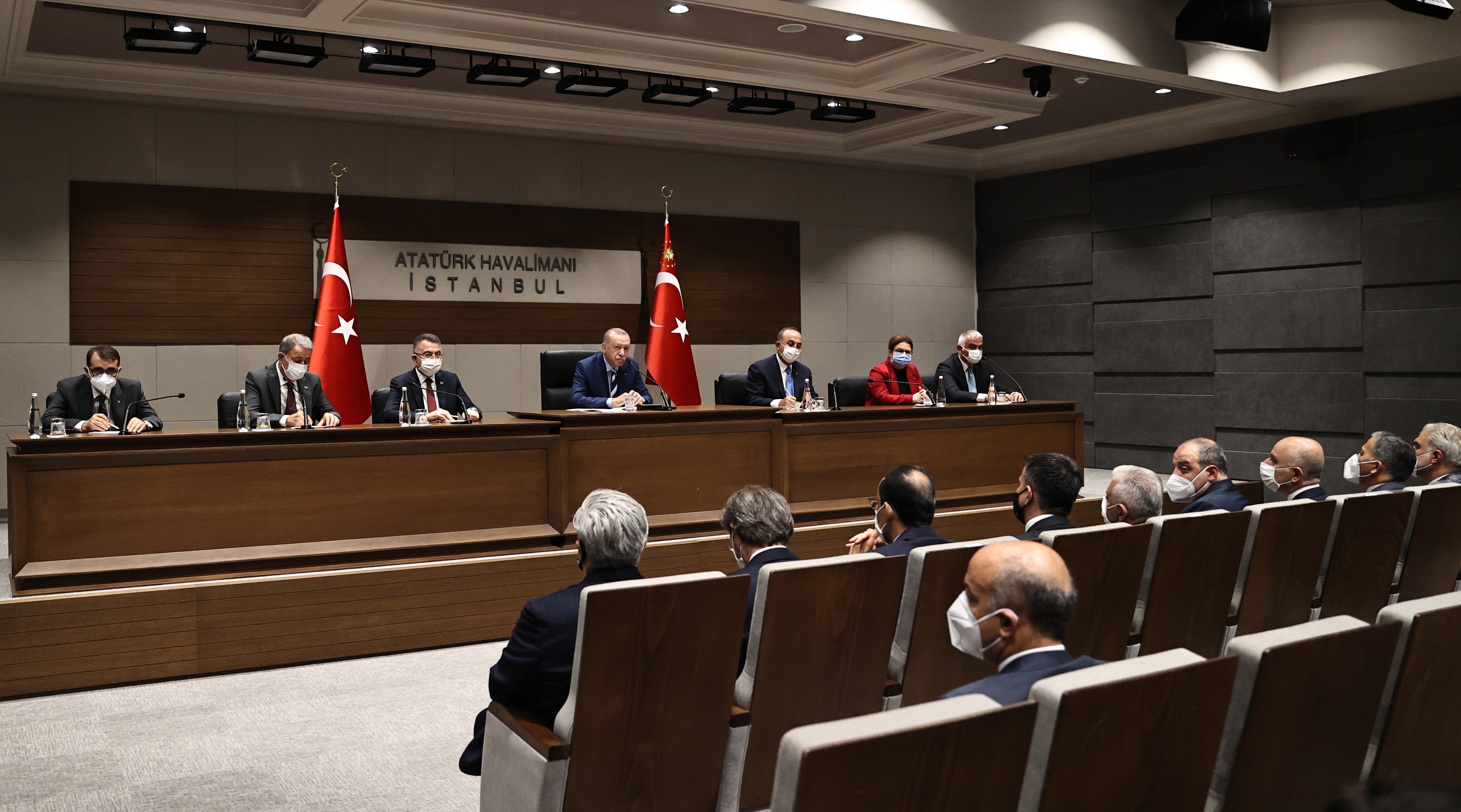 Cumhurbaşkanı Erdoğan, Kıbrıs Barış Harekatı'nın 47'nci yıl dönümü dolayısıyla Kuzey Kıbrıs Türk Cumhuriyeti'ne (KKTC) hareketinden önce Atatürk Havalimanı Devlet Konuk Evi'nde basın toplantısı düzenledi.