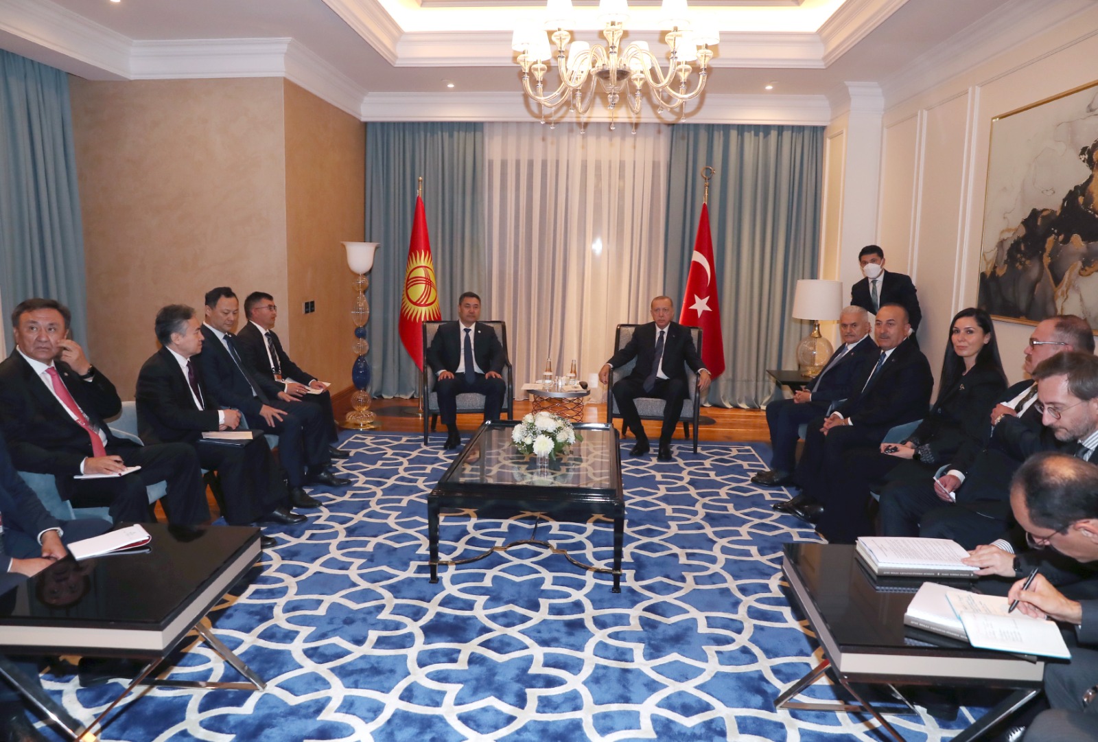 İki ülkenin heyetlerinin katıldığı görüşmede, Dışişleri Bakanı Mevlüt Çavuşoğlu, Türk Devletleri Teşkilatı Aksakallılar Heyeti Başkanı ve AK Parti Genel Başkanvekili Binali Yıldırım, AK Parti Genel Başkan Yardımcısı Çiğdem Karaaslan, İletişim Başkanı Fahrettin Altun ve Cumhurbaşkanlığı Sözcüsü İbrahim Kalın da yer aldı.