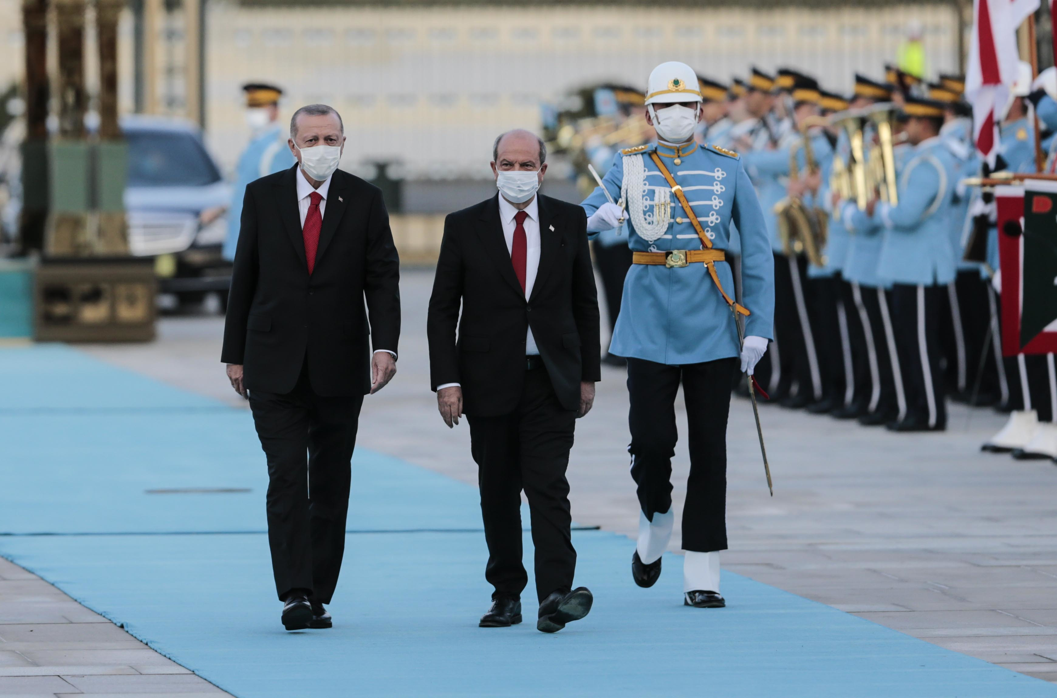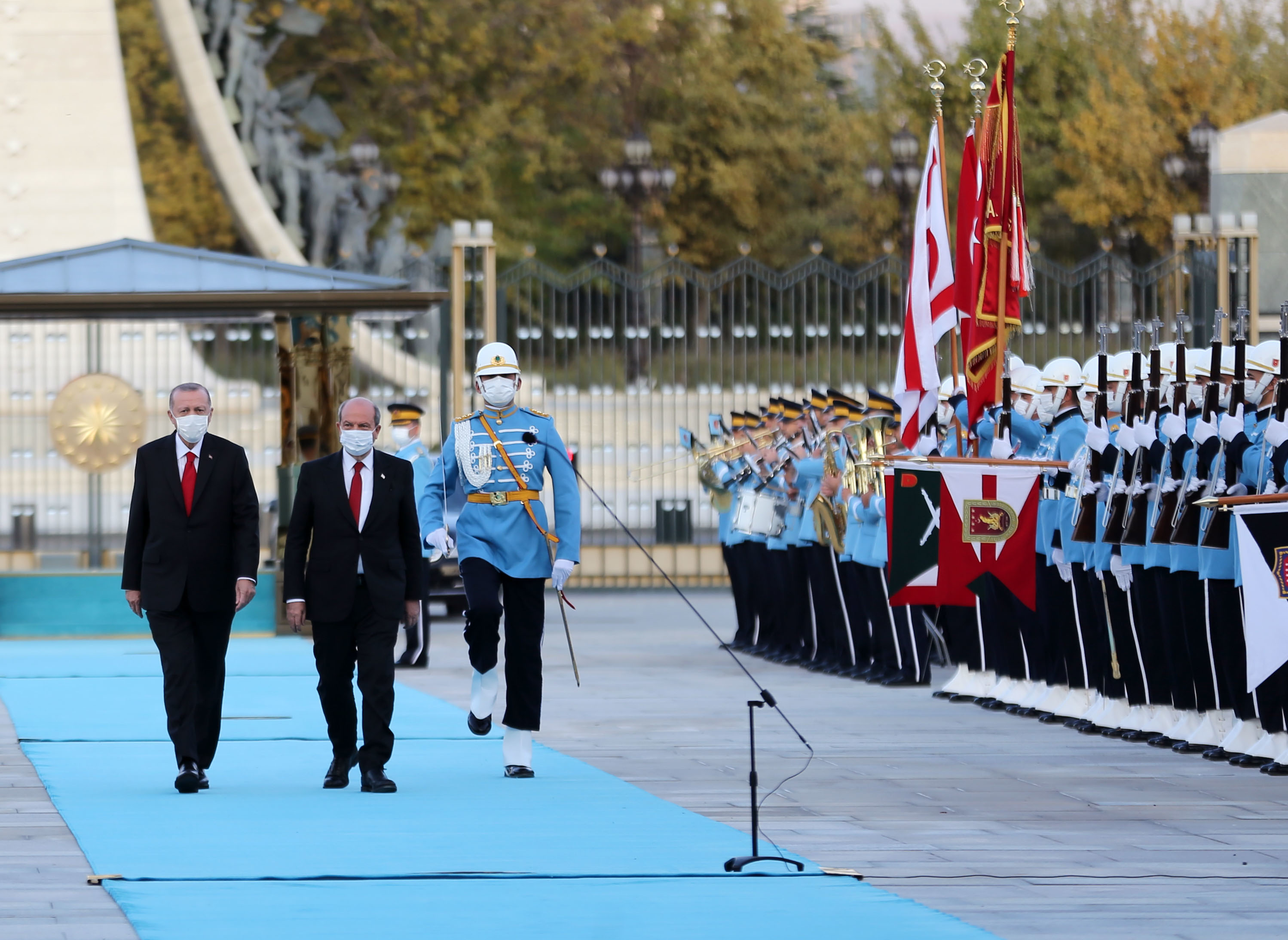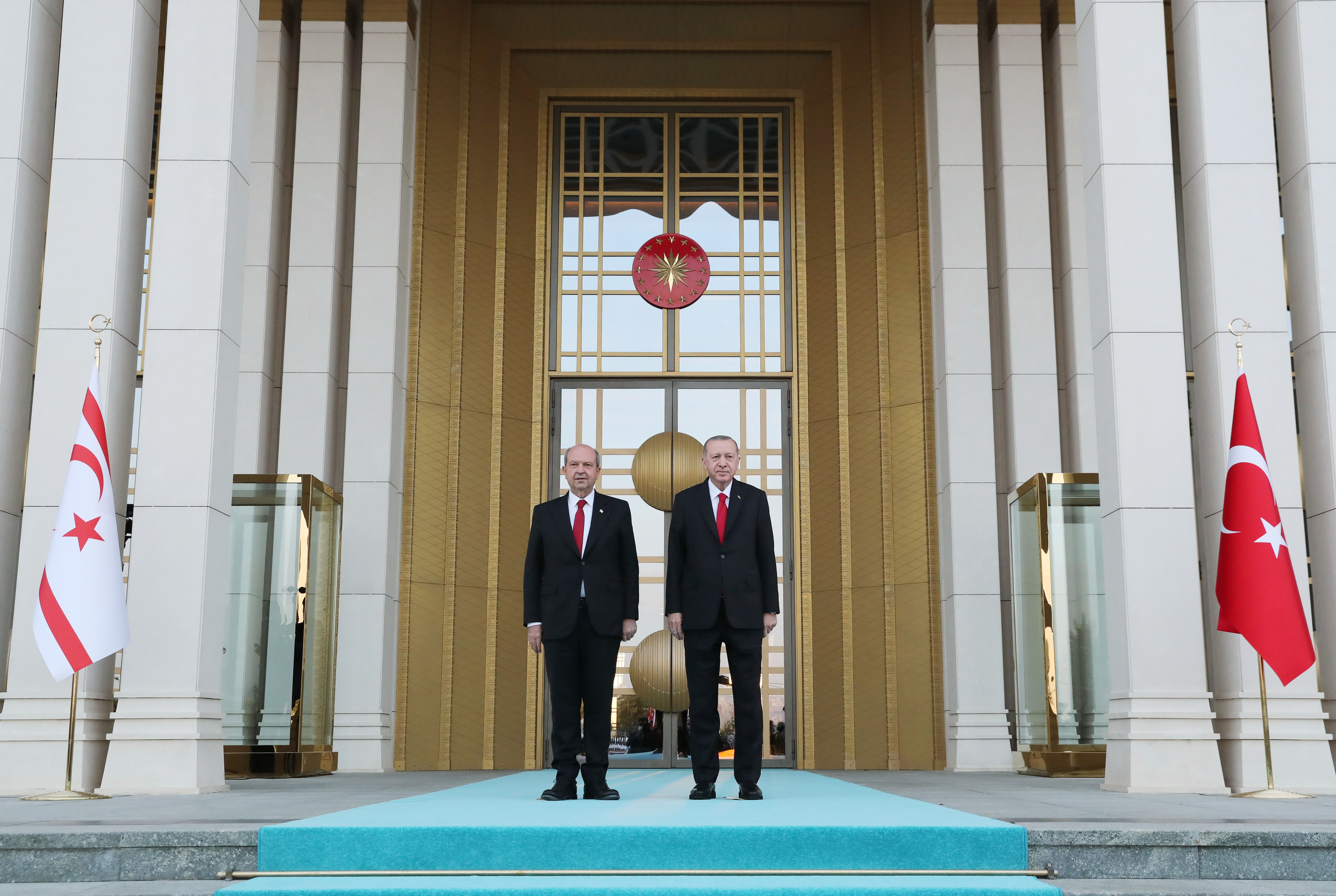 Cumhurbaşkanı Recep Tayyip Erdoğan, cumhurbaşkanı seçildikten sonra ilk resmi ziyaretini Türkiye'ye gerçekleştiren Kuzey Kıbrıs Türk Cumhuriyeti (KKTC) Cumhurbaşkanı Ersin Tatar'ı resmi törenle karşıladı.