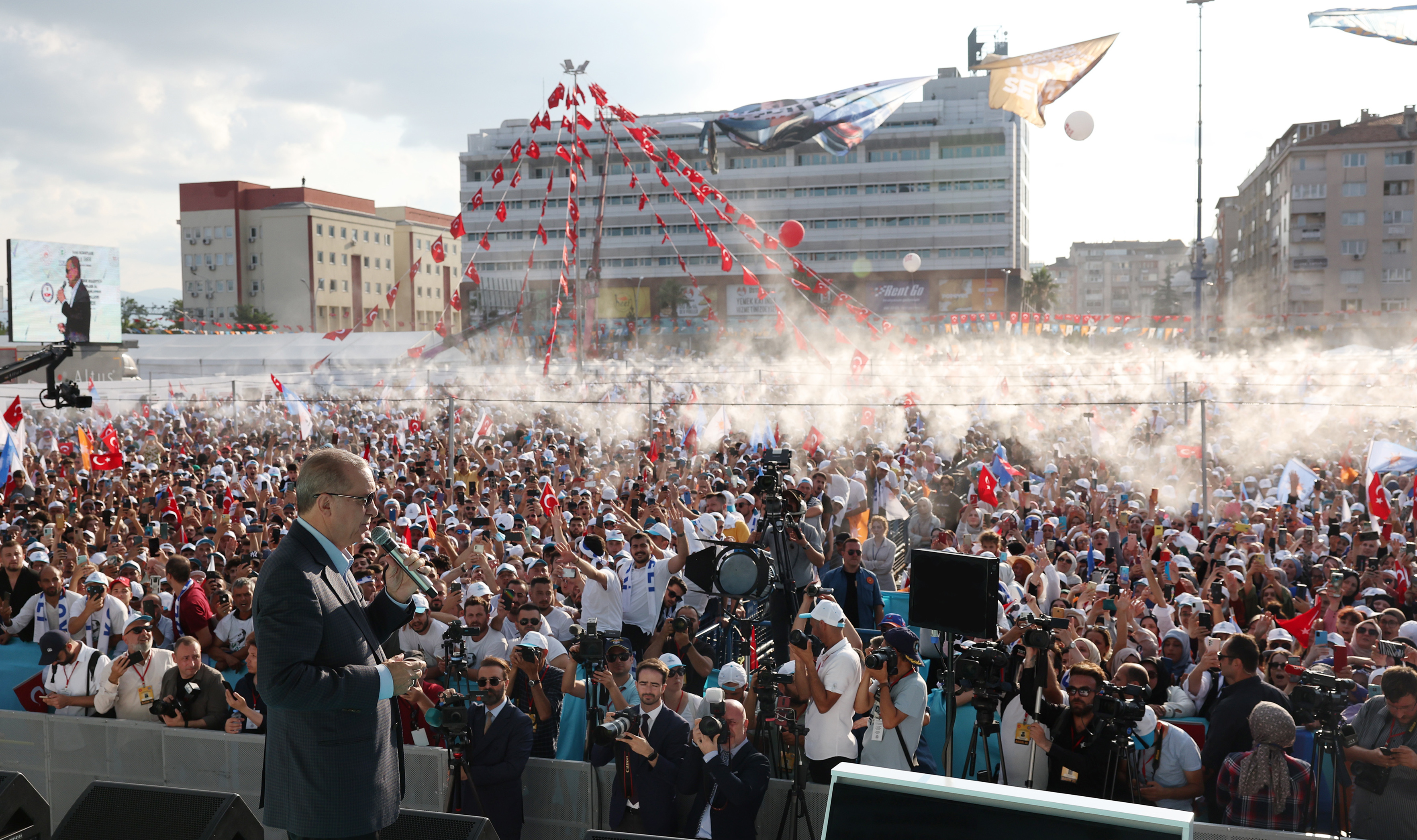 Vatandaşların "Recep Tayyip Erdoğan" şeklindeki tezahüratına karşılık veren Cumhurbaşkanı Erdoğan, "Maşallah. Bu ne aşk, bu ne coşku? Allah'a hamdolsun. Maşallah. Kadınıyla, genciyle, ana kademesiyle. Bir olacağız, iri olacağız, diri olacağız, kardeş olacağız. Ve 2023'ten de zaferle çıkacağız." diye konuştu.