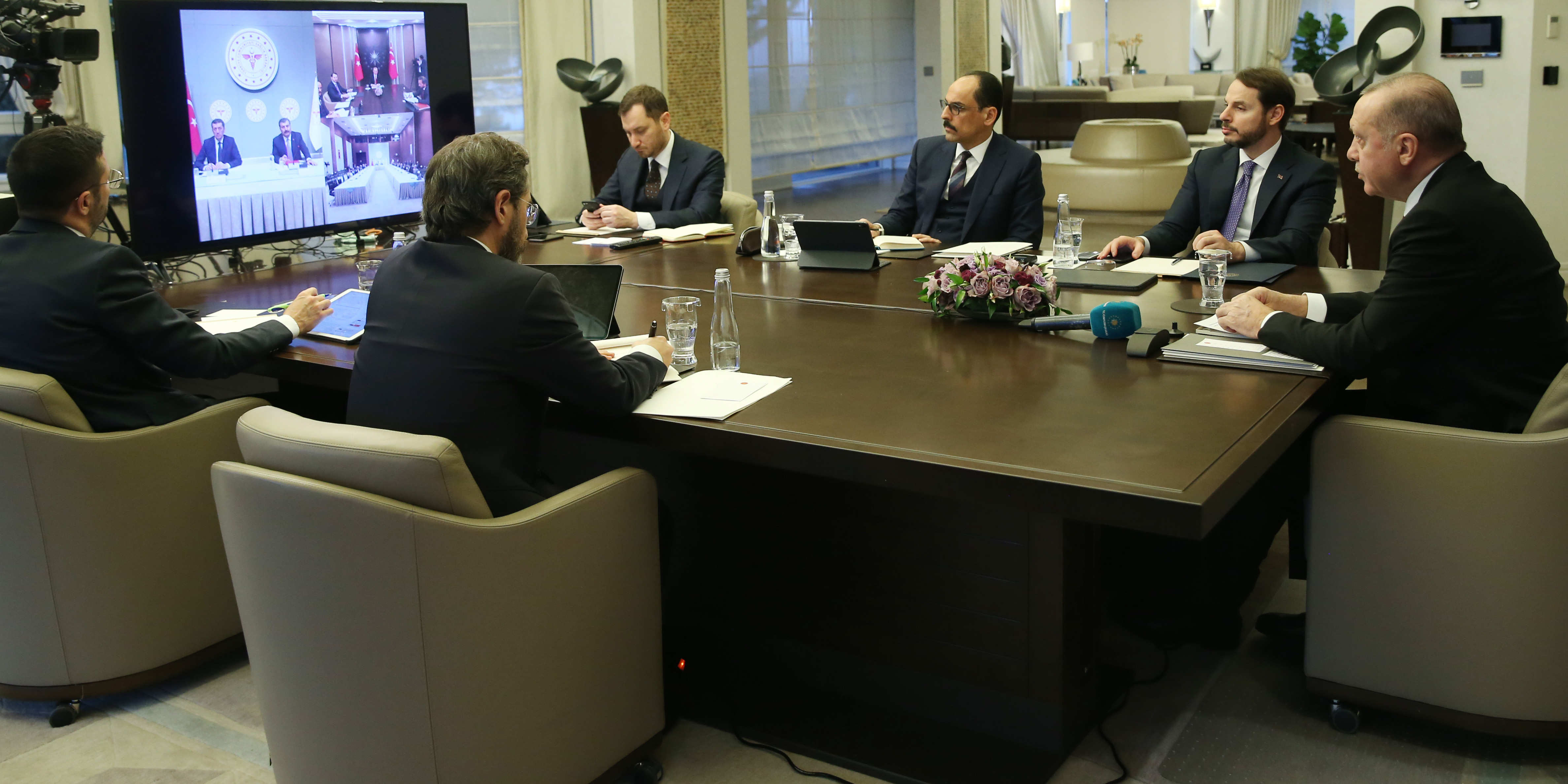 Toplantıda Hazine ve Maliye Bakanı Berat Albayrak, İletişim Başkanı Fahrettin Altun ve Cumhurbaşkanlığı Sözcüsü İbrahim Kalın da yer aldı.