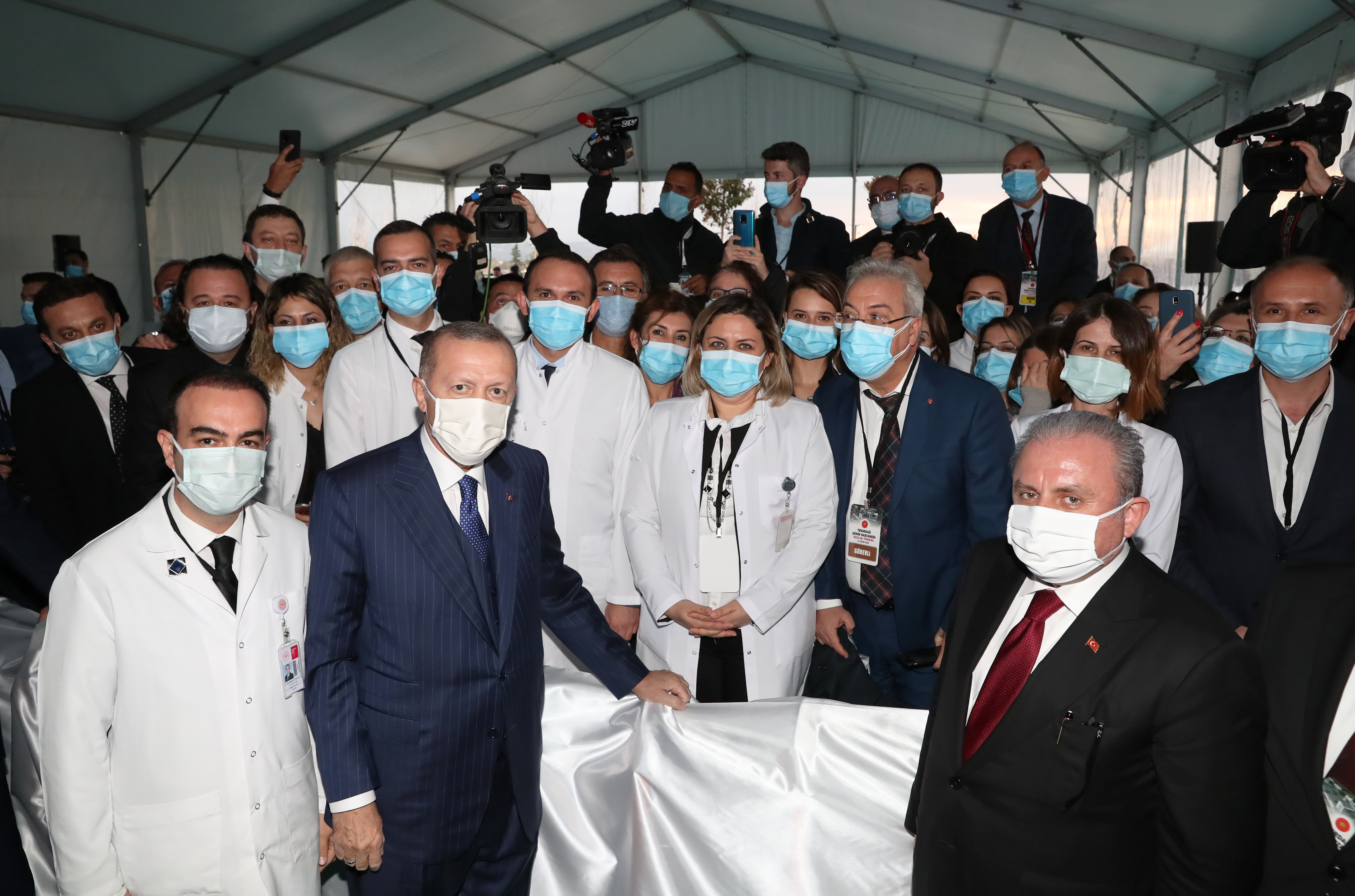 Cumhurbaşkanı Erdoğan, Kovid-19 sürecini, Avrupa'daki toplam kapasiteye yaklaşan yoğun bakım yatak sayısı, 1 milyon 100 bini bulan sağlık ordusuyla başarıyla yürüttüklerini, çok kısa sürede inşaatını tamamlayıp hizmete sundukları hastanelerin bunun bir ifadesi olduğunu söyledi.