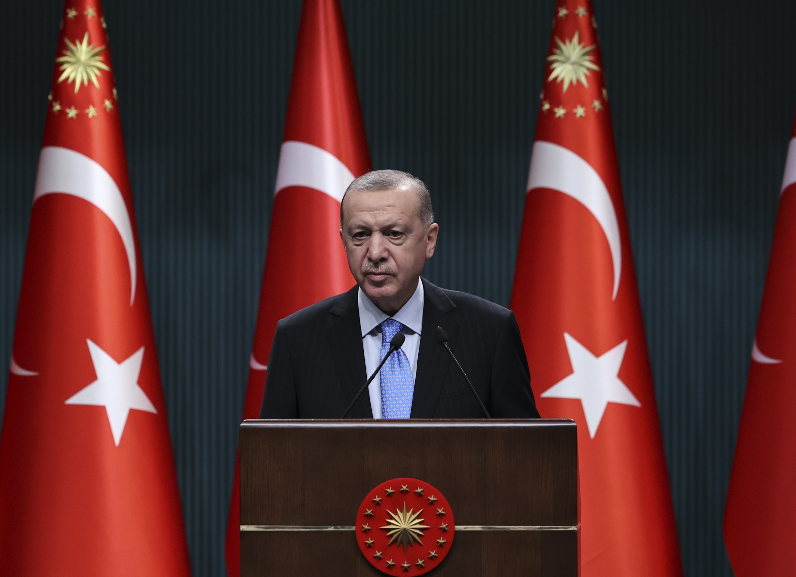 Cumhurbaşkanı Erdoğan, Cumhurbaşkanlığı Külliyesi'nde yapılan Cumhurbaşkanlığı Kabine Toplantısı'nın ardından millete seslendi.