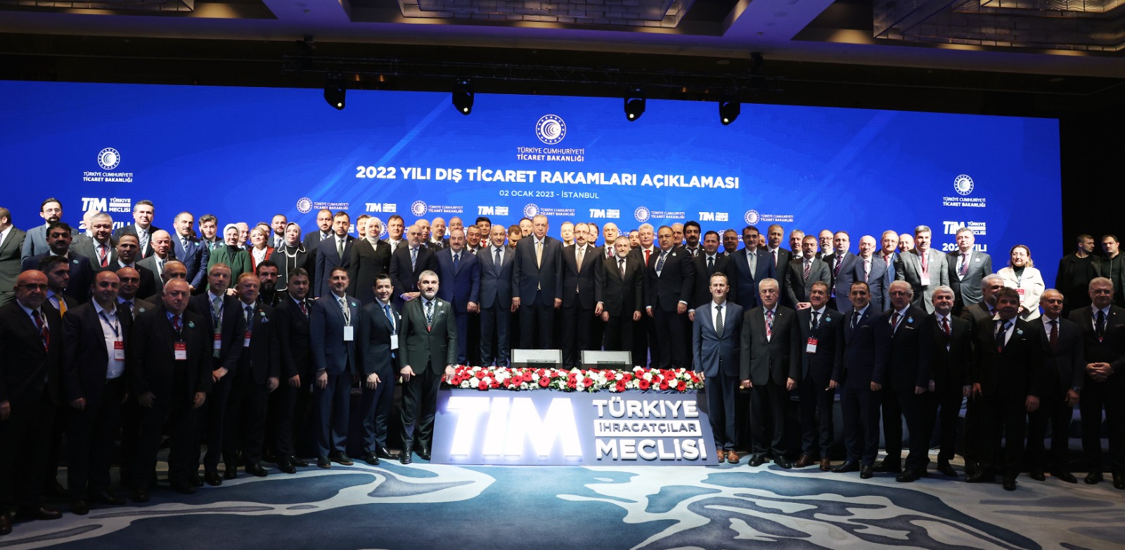 2022 yılı dış ticaret rakamlarının açıklandığı programda konuşan Cumhurbaşkanı Erdoğan "2022 yılı ihracatımız, geçen yıla göre yüzde 12,9 oranında artışla 254,2 milyar dolar olarak gerçekleşmiştir. Bu rakam, Cumhuriyet tarihimizin rekorudur" dedi.