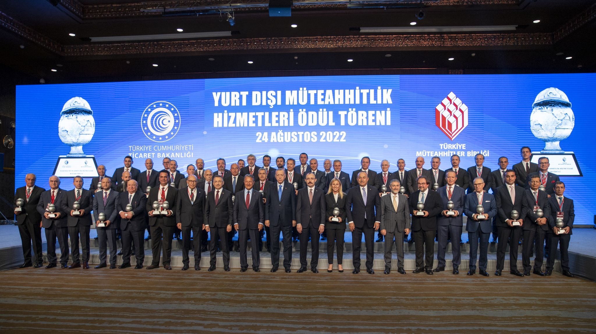 Ödül alan firmaları ve temsilcileri kutlayan Cumhurbaşkanı Erdoğan, Türkiye'nin dünyanın en büyük 250 uluslararası müteahhidi listesinde 48 firmasıyla iftihar verici bir yerde bulunduğunu, dünyanın en büyük 225 uluslararası teknik müşavirler listesinde de 7 firmayla temsil edildiğini aktardı.