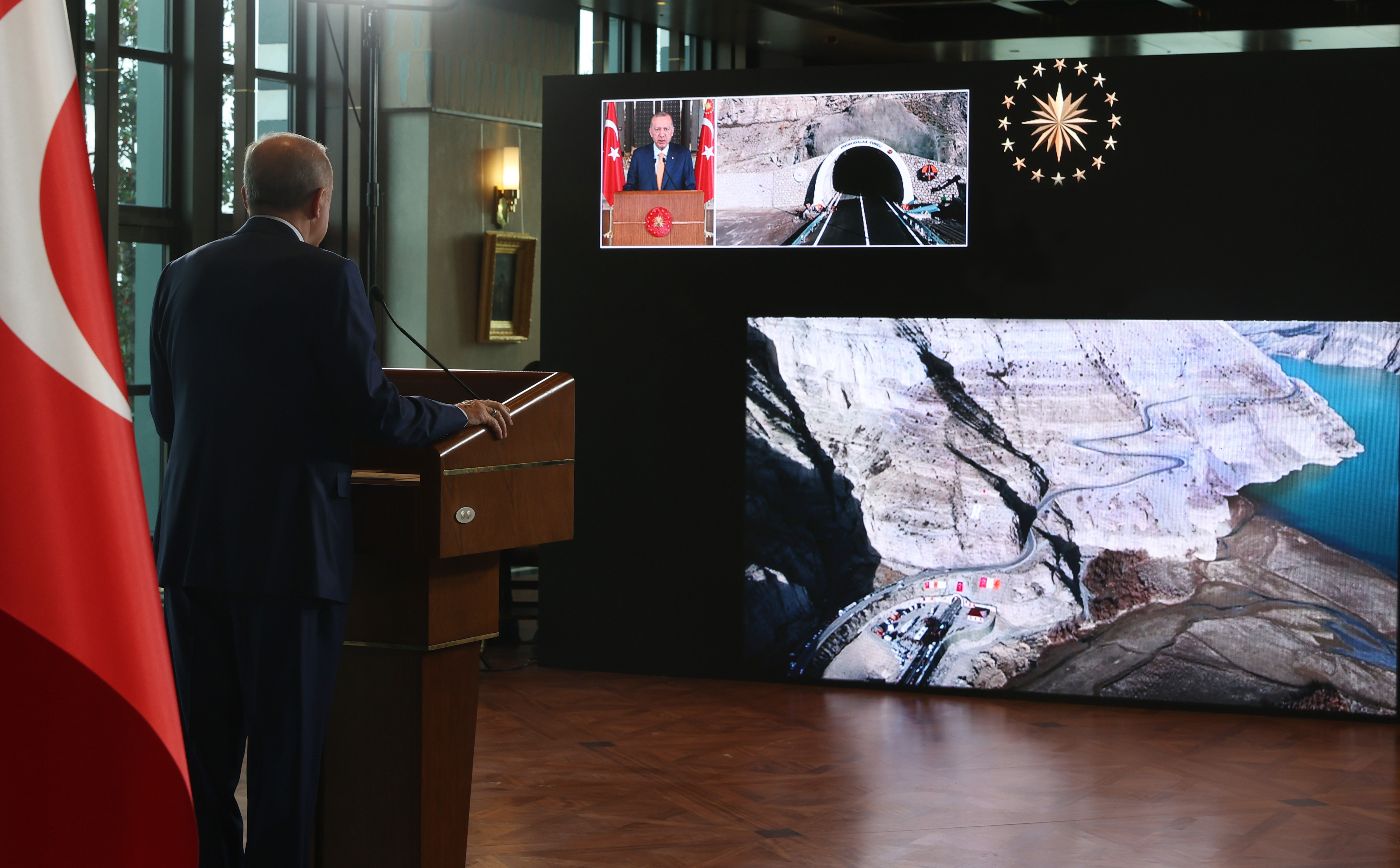 Pirinkayalar Tüneli Açılış Töreni'ne canlı bağlantı ile katılan Cumhurbaşkanı Erdoğan: Türkiye'nin aydınlık geleceğine uzanan kutlu yürüyüşün yeni bir adımını atıyoruz. Milletimizin her bir ferdini bu kutlu yürüyüşte yer almaya davet ediyorum.