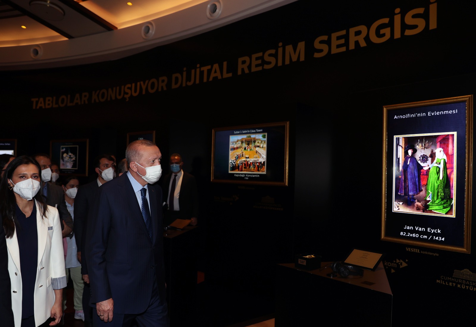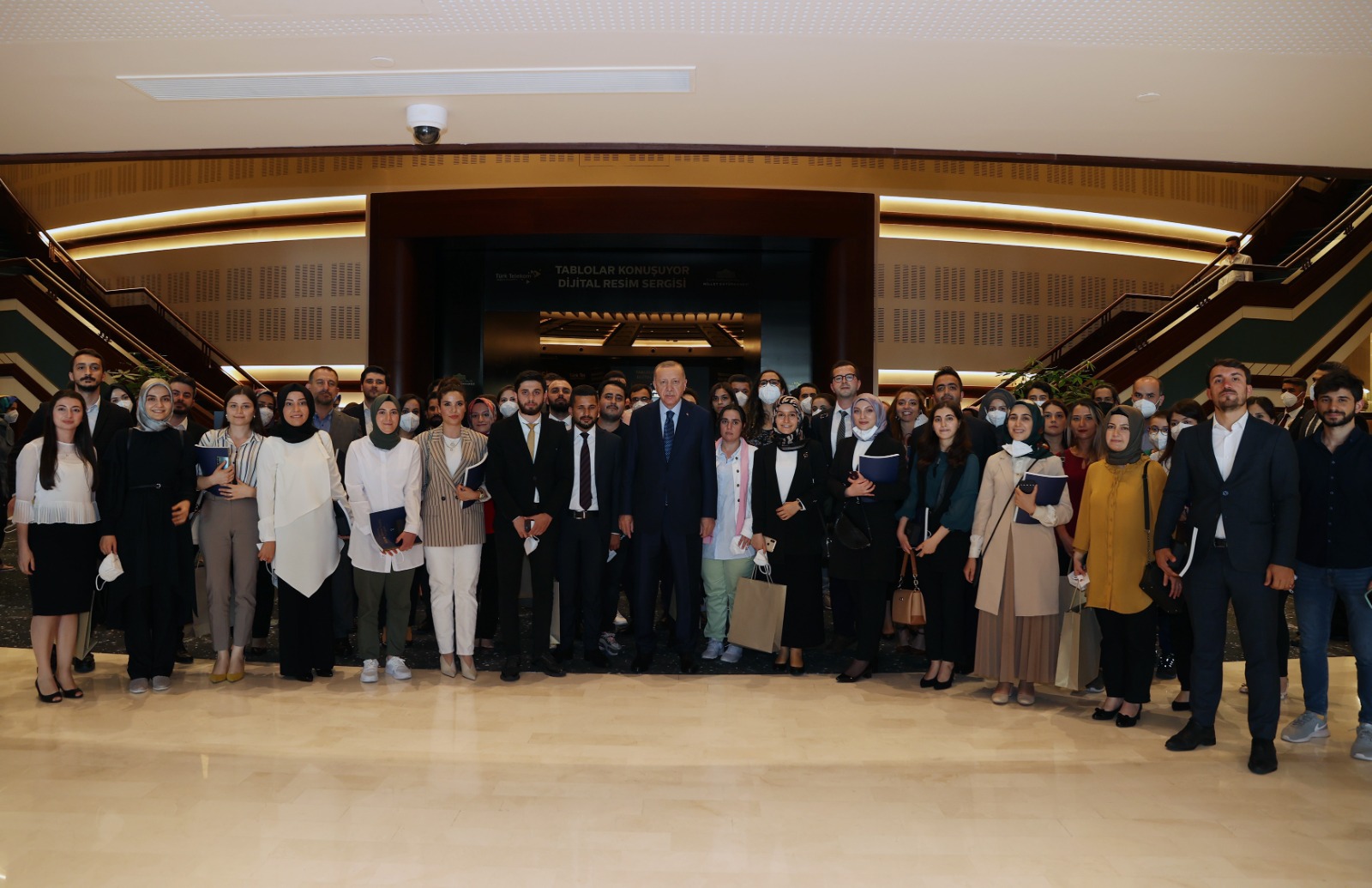 Cumhurbaşkanı Erdoğan, konuşmasının sonunda, gençlerle birlikte Millet Kütüphanesi'ndeki "Tablolar Konuşuyor Dijital Resim Sergisi"ni gezdi.