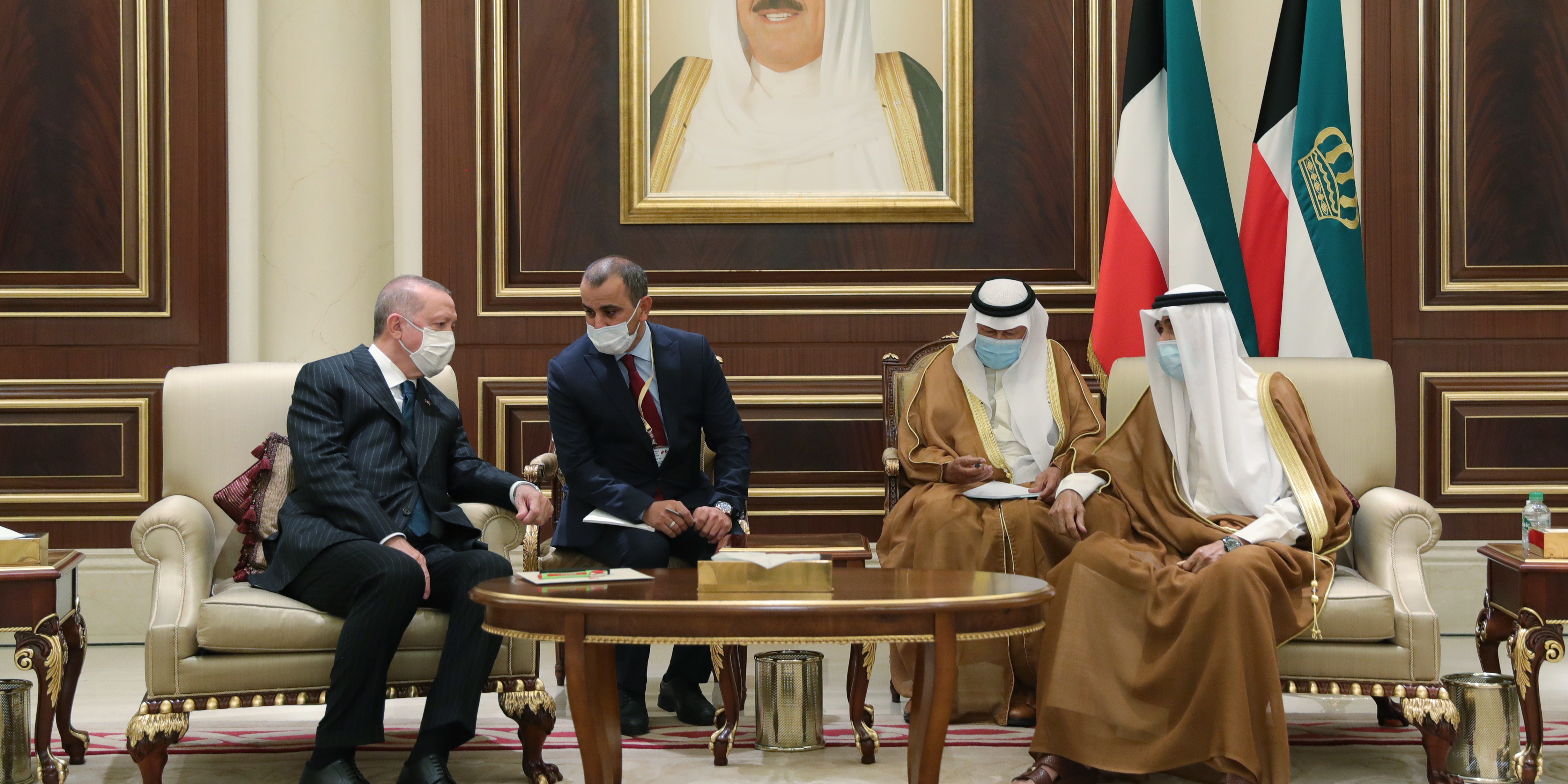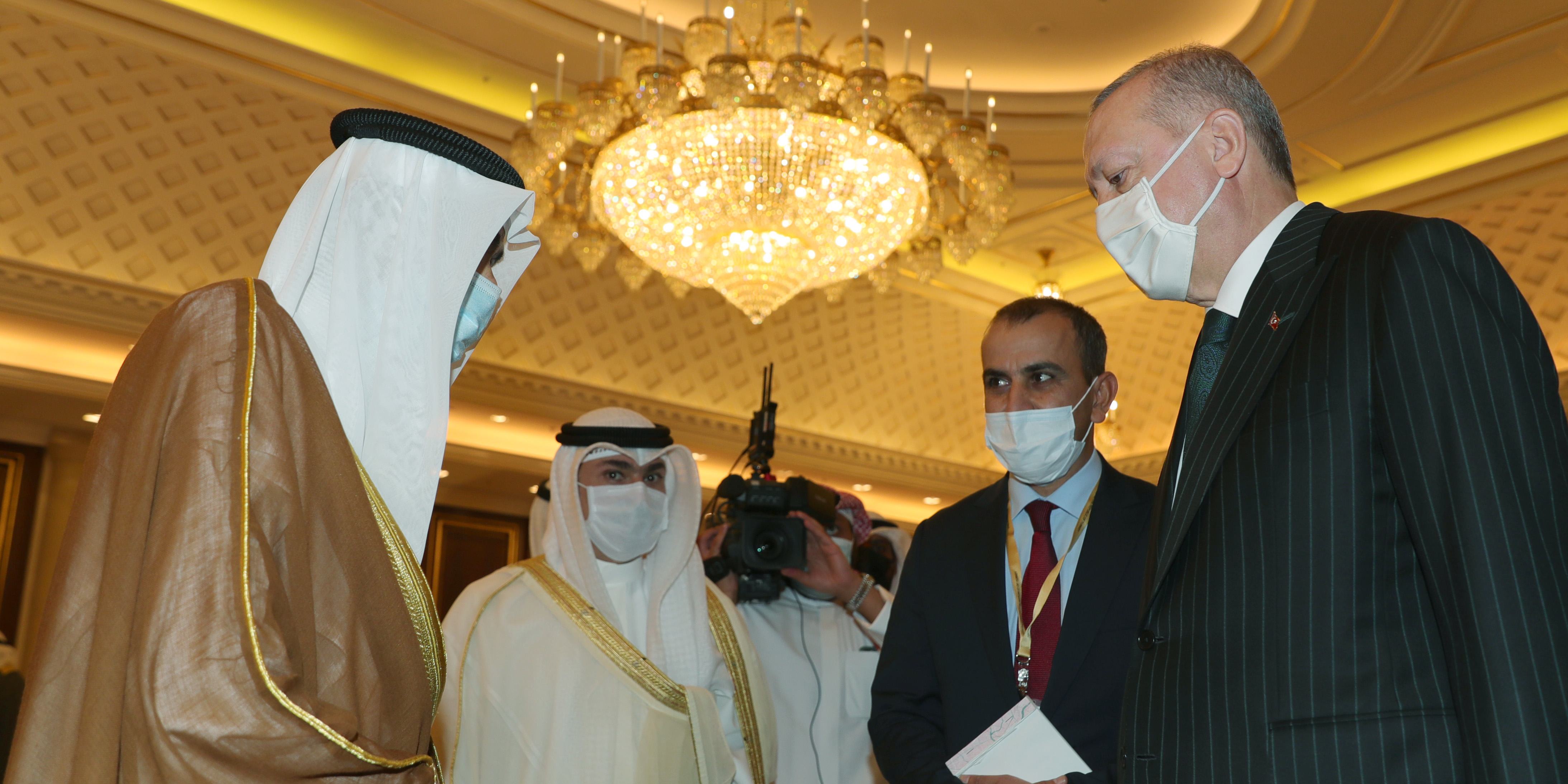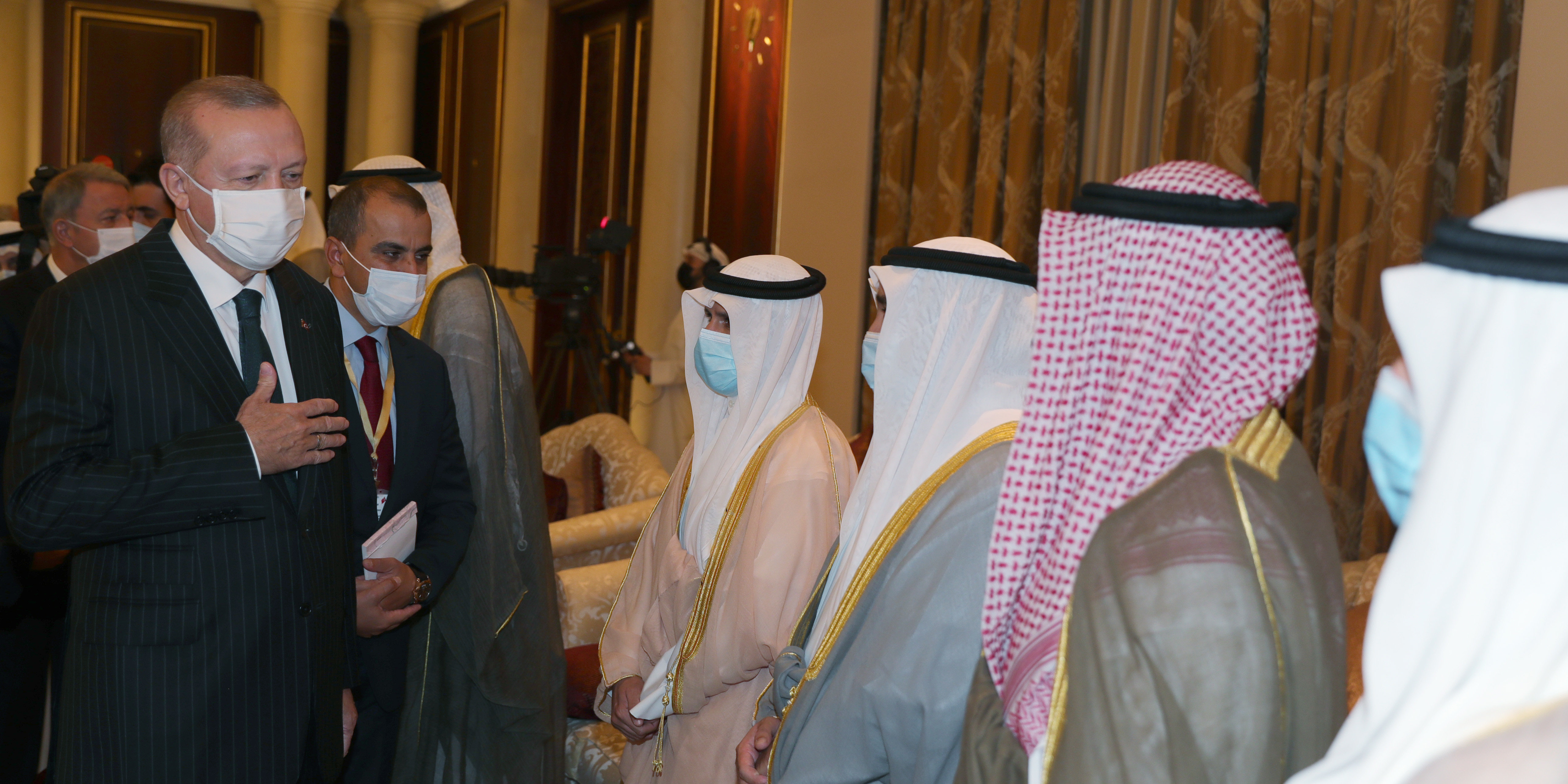 Cumhurbaşkanı Erdoğan ile Hazine ve Maliye Bakanı Berat Albayrak, Gençlik ve Spor Bakanı Mehmet Kasapoğlu, Milli Savunma Bakanı Hulusi Akar, MİT Başkanı Hakan Fidan, İletişim Başkanı Fahrettin Altun ve Cumhurbaşkanlığı Sözcüsü İbrahim Kalın da Kuveyt'e geldi.