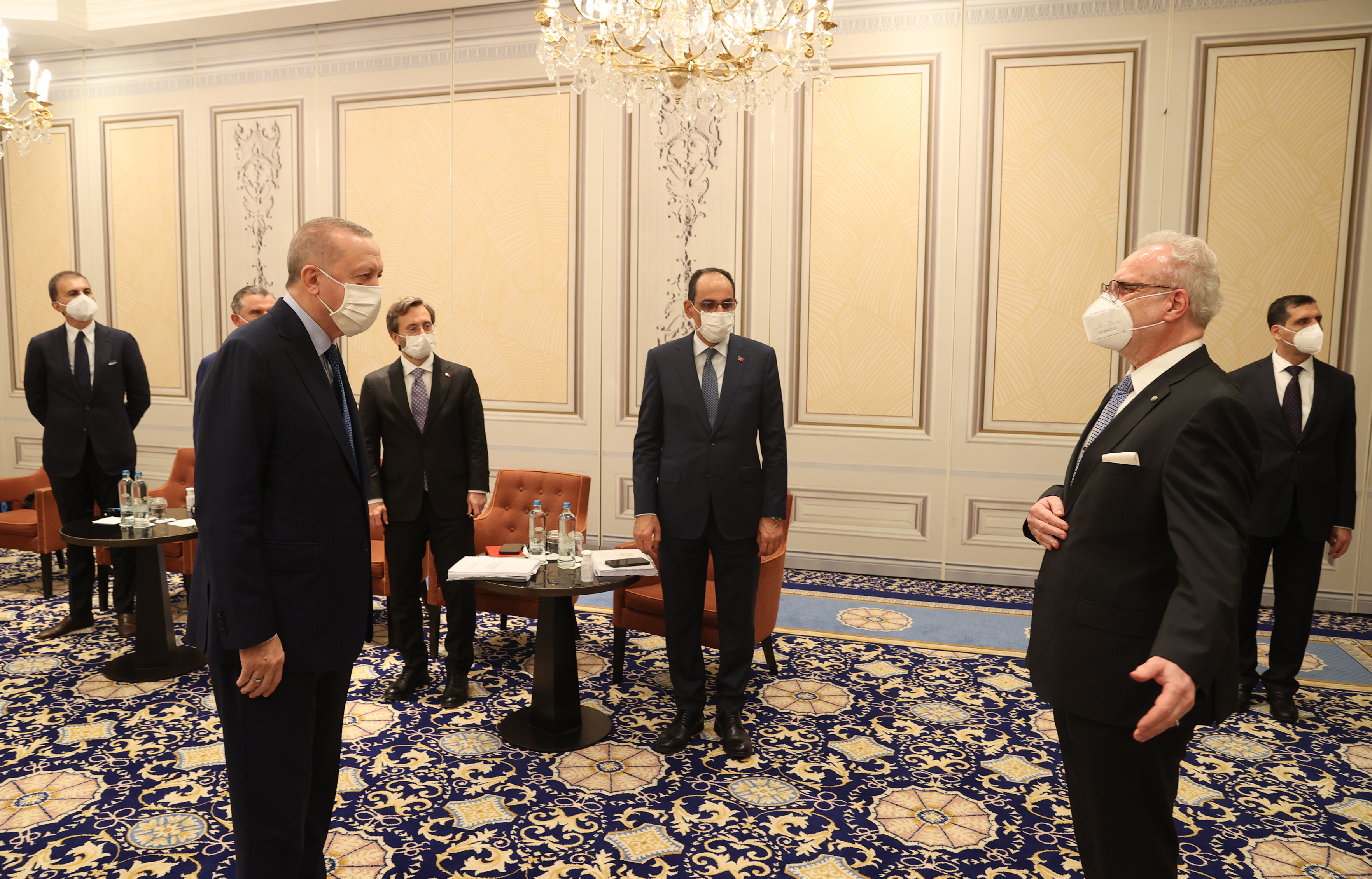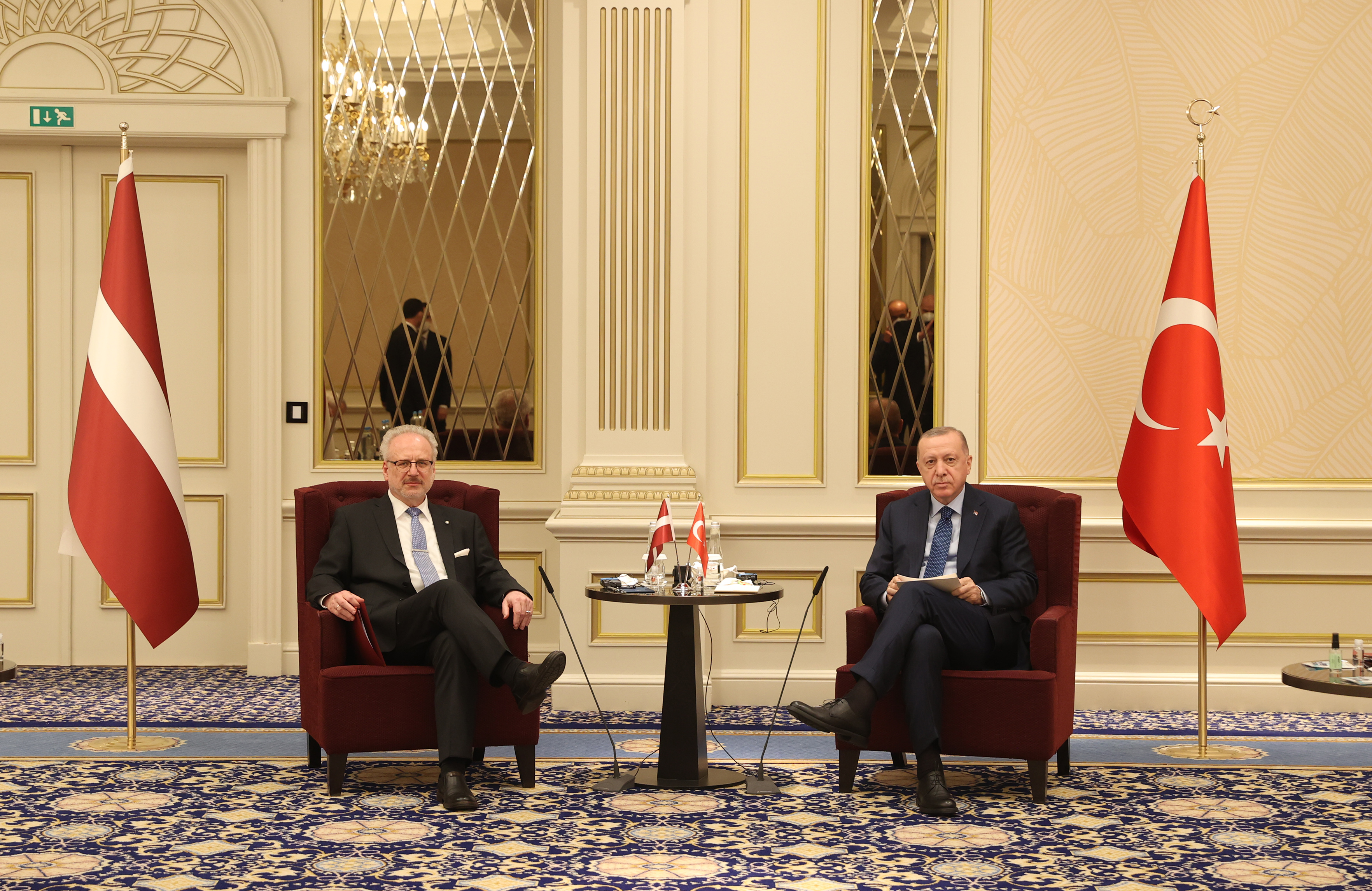 Cumhurbaşkanı Recep Tayyip Erdoğan, NATO Liderler Zirvesi dolayısıyla bulunduğu Brüksel'deki ikili temasları kapsamında, Letonya Cumhurbaşkanı Egils Levits ile bir araya geldi.