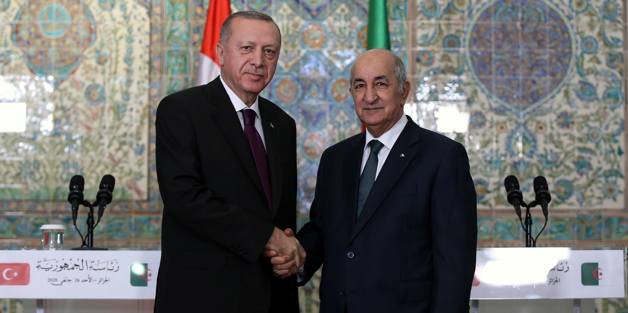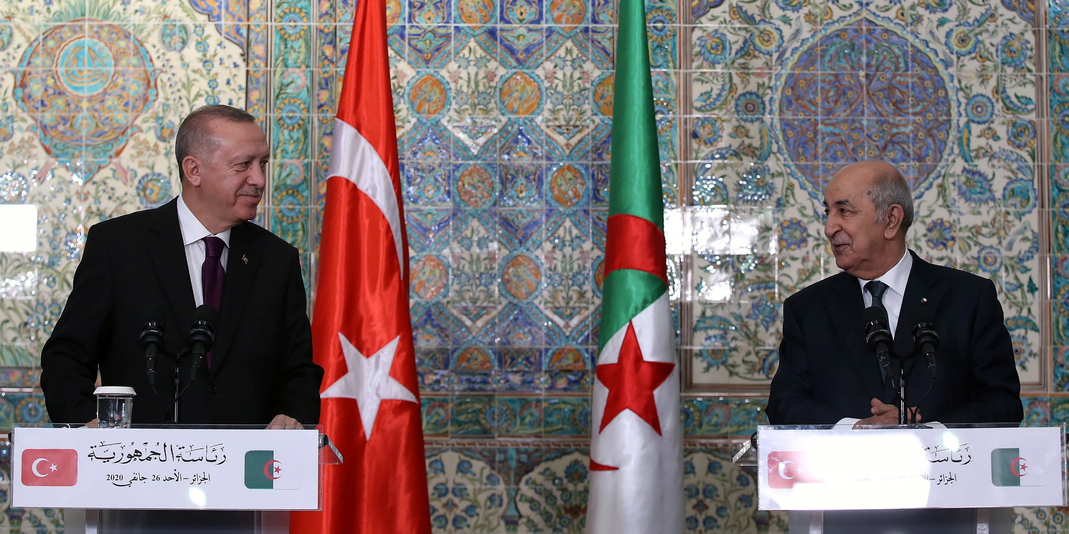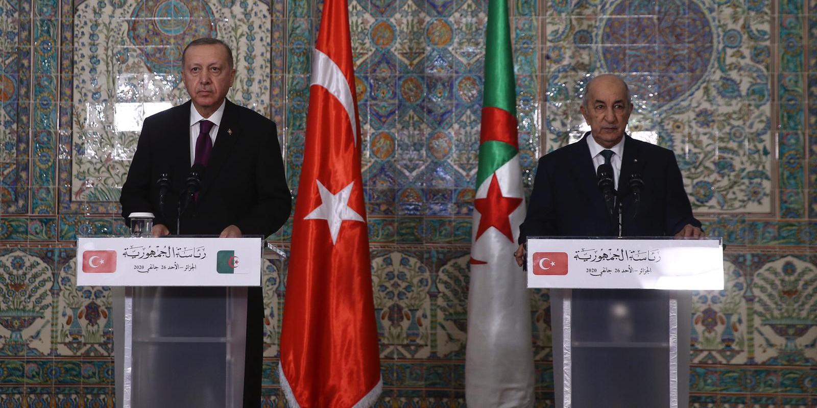 Görüşmelerde, bölgesel meseleler hakkında kapsamlı ve verimli fikir teatisinde bulunduklarına işaret eden Erdoğan, "Bölgemizin içinden geçtiği bu zorlu dönemde Cezayir istikrar ve barış unsuru olmaya devam ediyor. Ancak Libya'daki gelişmeler komşu Cezayir'i de doğrudan etkiliyor. Gerek göç yükü gerekse güvenlik noktasında Cezayir'in karşılaştığı sıkıntıların farkındayız. Biz krizin başından beri Libya'da askeri çözümlerle sonuç alınamayacağını vurguluyoruz." şeklinde konuştu.