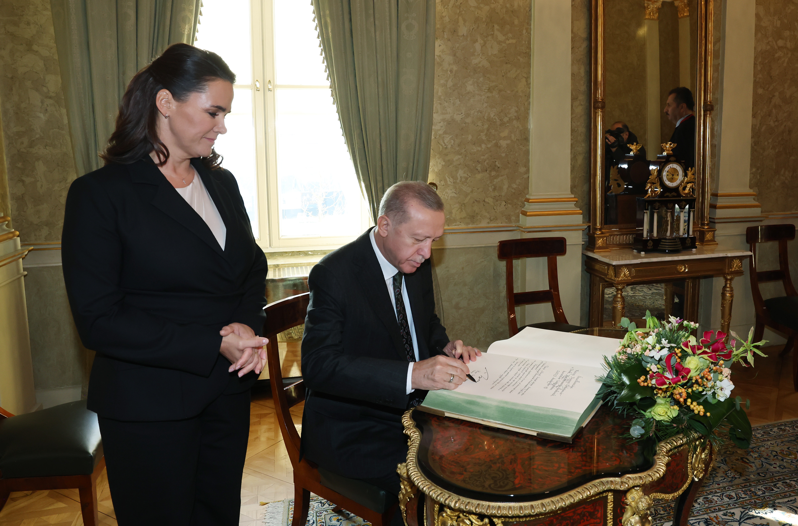 Cumhurbaşkanı Erdoğan, daha sonra Macaristan Cumhurbaşkanlığının özel defterini imzaladı.
