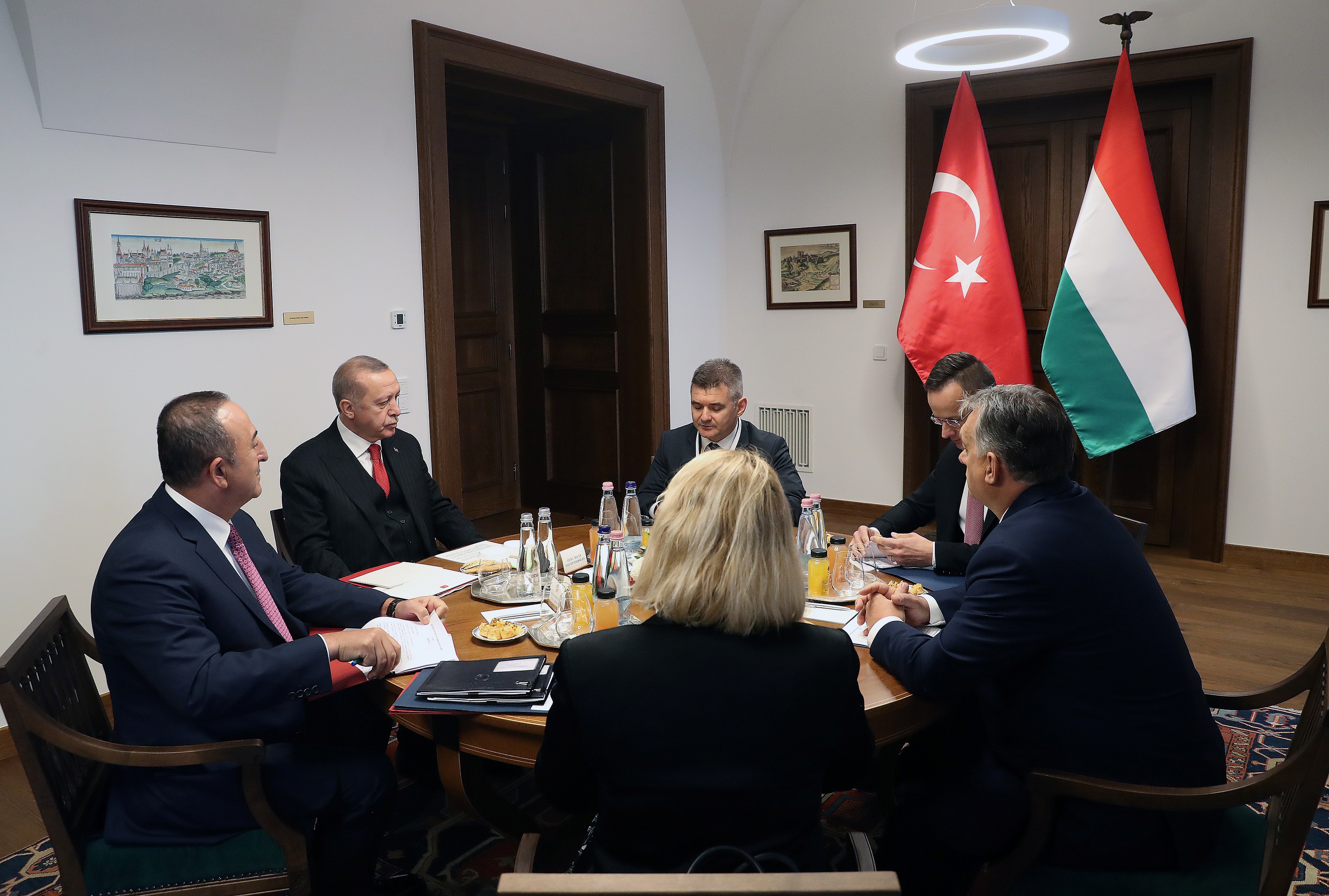 Yüksek Düzeyli Stratejik İşbirliği Konseyi Toplantısı'nın dördüncüsüne katılmak üzere Macaristan'a giden Cumhurbaşkanı Erdoğan, resmî temasları kapsamında Macaristan Başbakanı Orban ile çalışma yemeğinde bir araya geldi.