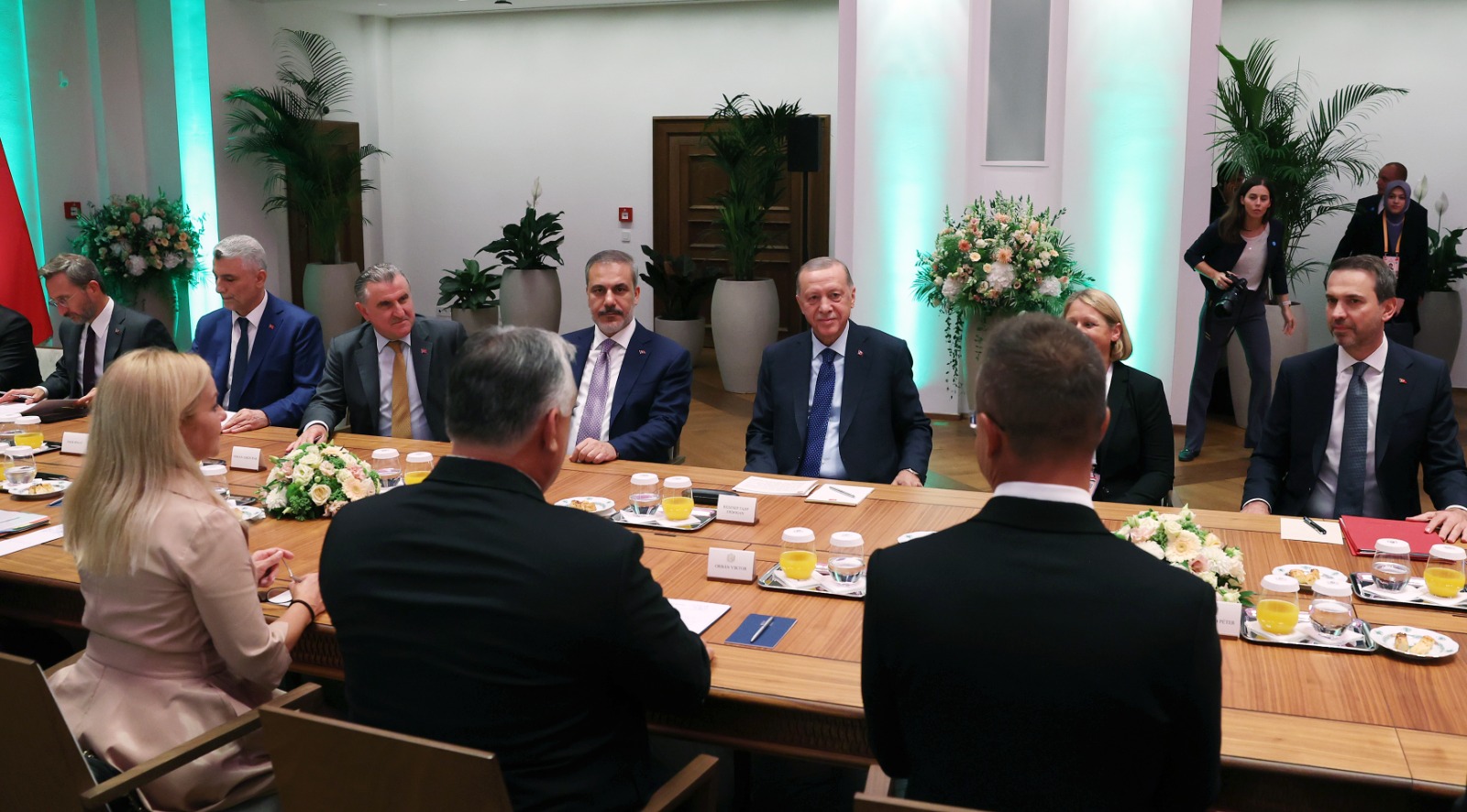 Cumhurbaşkanı Erdoğan ile Dışişleri Bakanı Hakan Fidan, Enerji ve Tabii Kaynaklar Bakanı Alparslan Bayraktar, Gençlik ve Spor Bakanı Osman Aşkın Bak, Sanayi ve Teknoloji Bakanı Mehmet Fatih Kacır, Ticaret Bakanı Ömer Bolat, Cumhurbaşkanlığı İletişim Başkanı Fahrettin Altun, Cumhurbaşkanı Başdanışmanı Büyükelçi Akif Çağatay Kılıç ve bazı yetkililer de Budapeşte'ye gitti.