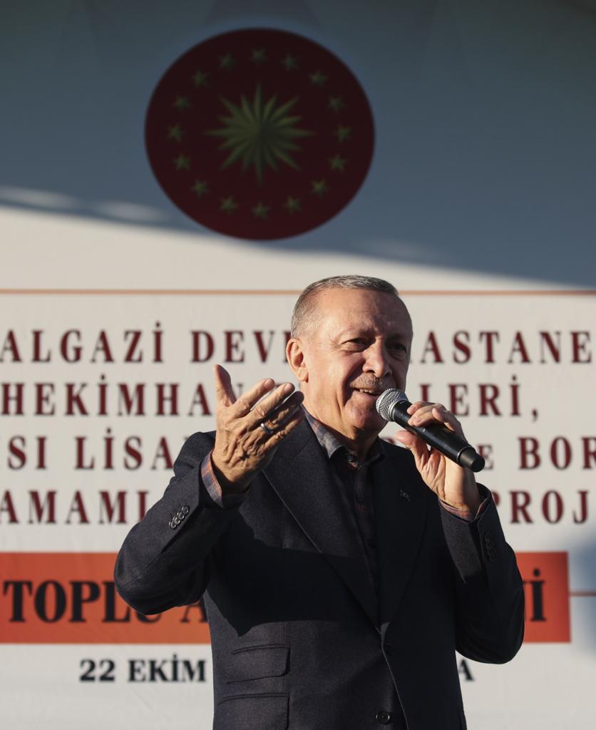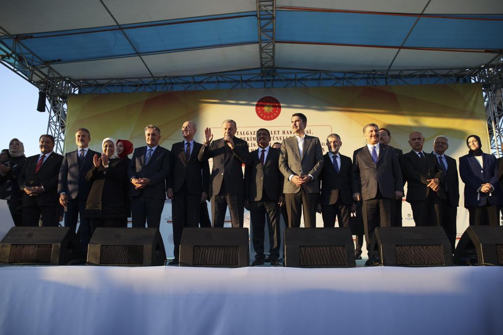 Cumhurbaşkanı Recep Tayyip Erdoğan, Malatya Büyükşehir Belediyesi yanındaki meydanda düzenlenen "Battalgazi Devlet Hastanesi, Hekimhan Tünelleri, Kuru Kayısı Lisanslı Depo ve Borsası ile Yapımı Tamamlanan Diğer Projelerin Toplu Açılış Töreni"nde vatandaşlara hitap etti.