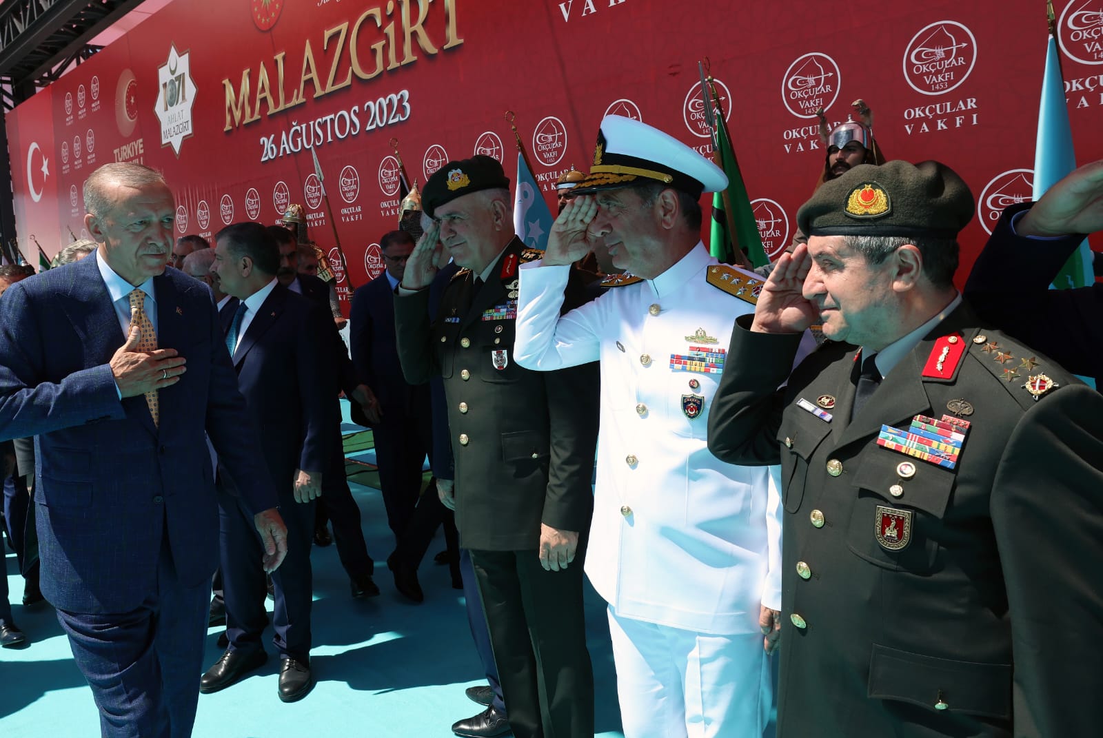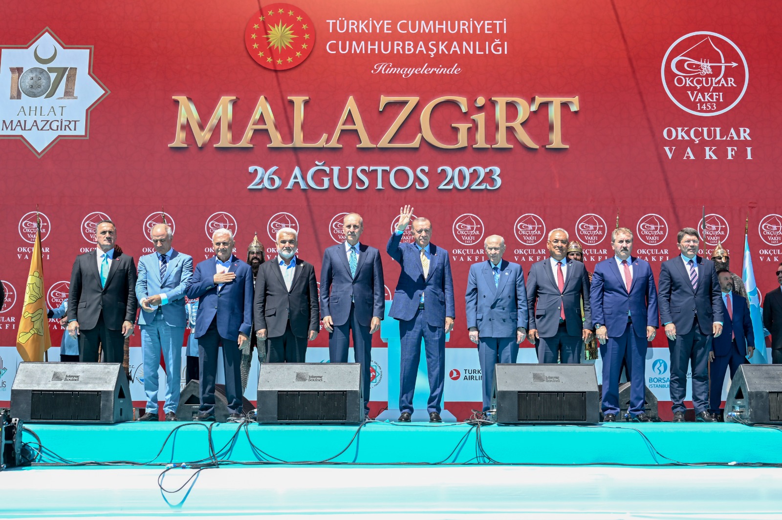 Malazgirt Zaferi'nin 952. yıl dönümü vesilesiyle tarihin önemli dönüm noktalarından birine şahitlik eden mübarek topraklarda tekrar bir arada olduklarını belirten Cumhurbaşkanı Erdoğan, "Sözlerimin hemen başında Anadolu'yu bizlere vatan hâline getiren tüm kahramanlarımızı, şehitlerimizi, gazilerimizi, gönül sultanlarımızı rahmetle, şükranla yâd ediyorum. Sultan Alparslan'ın ve ordusunda yer alan her bir neferin bize emaneti olan bu toprakları kanımızın son damlasına kadar koruma azim ve kararlılığımızı buradan bir kez daha ilan ediyoruz." diye konuştu.