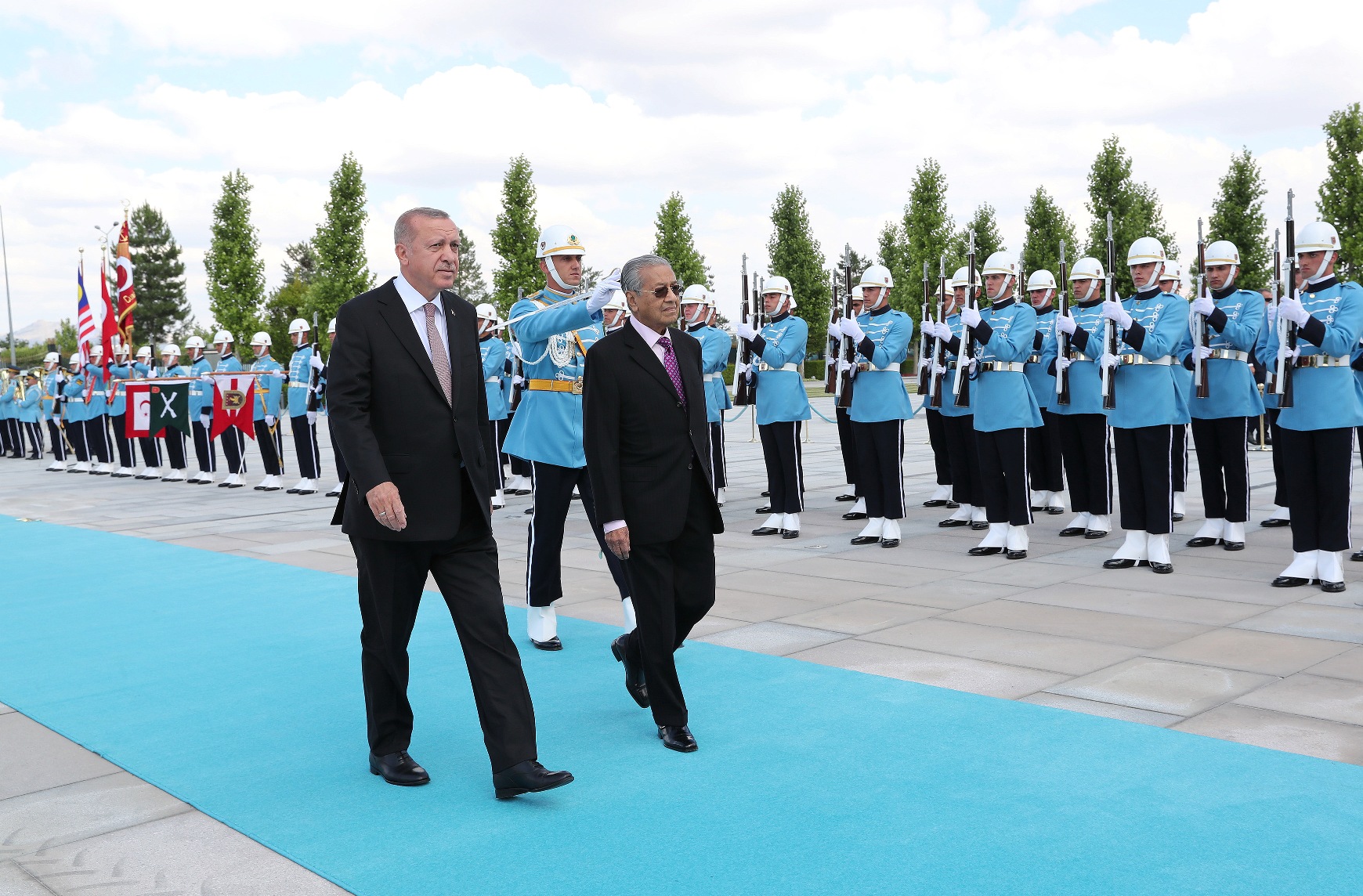 Cumhurbaşkanı Recep Tayyip Erdoğan, Malezya Başbakanı Mahathir Muhammed'i resmi törenle karşıladı.