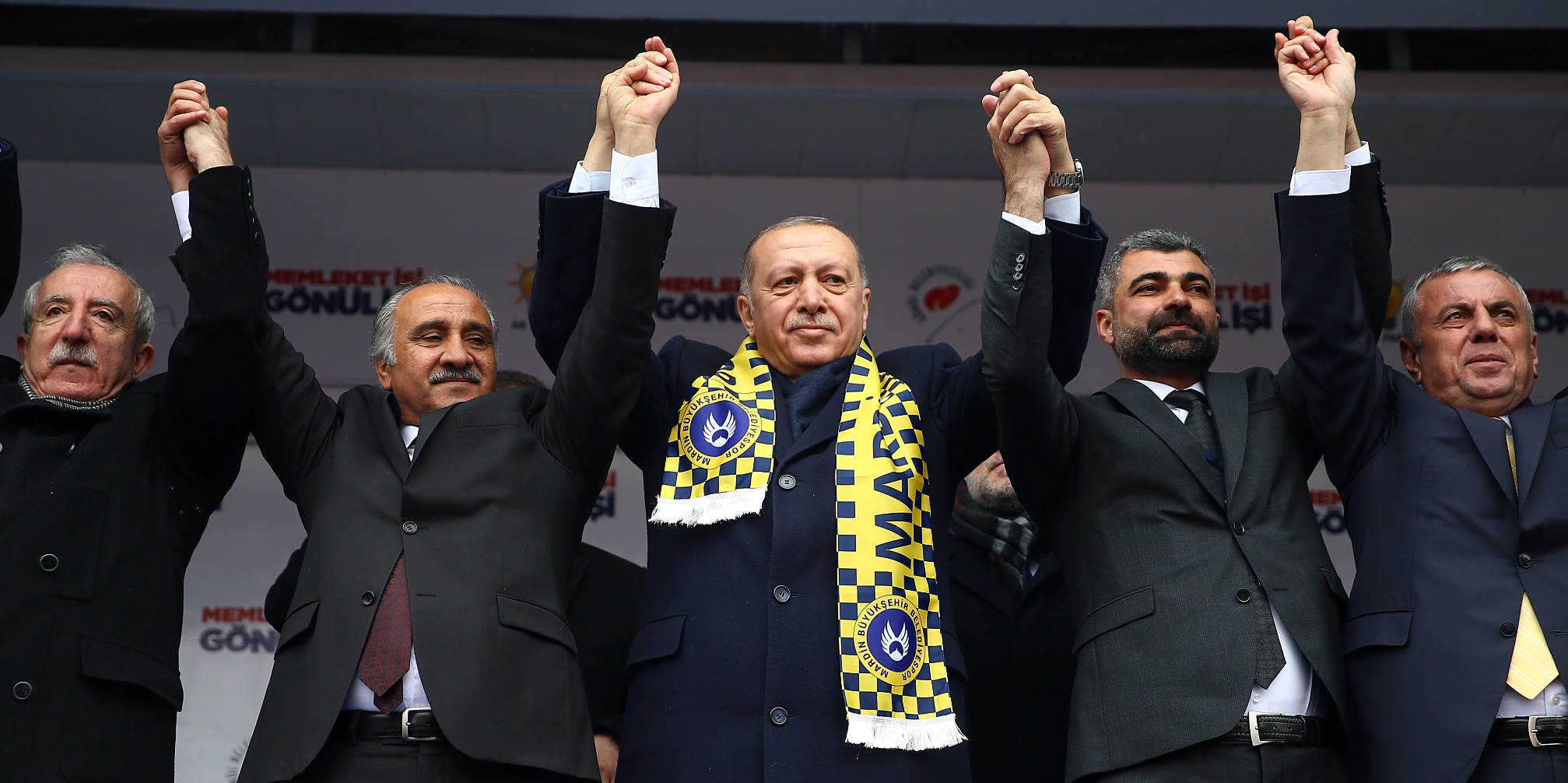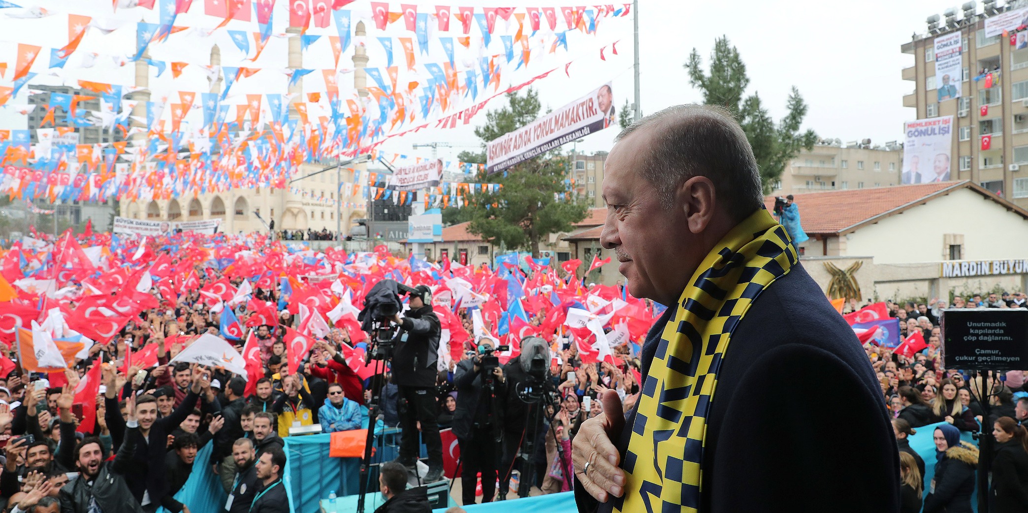 Cumhurbaşkanı Erdoğan, mitinge katılanlara yönelttiği, "Mardin, 31 Mart'ta istikrarımıza, istiklalimize ve istikbalimize göz dikenlere dersini veriyor musun? Mardin, 31 Mart'ta milli iradeye sahip çıkıyor musun? Mardin, 31 Mart'ta tevazu, samimiyet ve gayretle 'Memleket işi gönül işi' diyor muyuz? Mardin, 31 Mart'ta mührü gönül belediyeciliğine vuruyor muyuz? Mardin, 31 Mart'ta büyükşehirde ve ilçelerimizde belediye başkan adaylarımıza sahip çıkıyor muyuz?" sorularına, "Evet" yanıtını aldı.