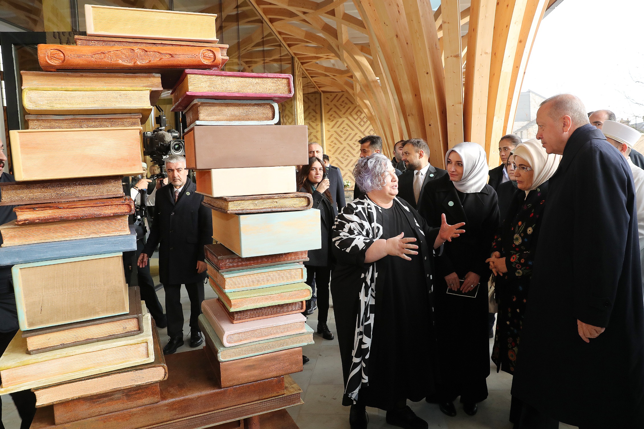 Yunus Emre'nin "Bir kez gönül yıktın ise bu kıldığın namaz değil/Yetmiş iki millet dahi elin yüzün yumaz değil. Bir gönülü yaptın ise er eteğin tuttun ise/ Bir kez hayr ettin ise binde bir ise az değil./ Yol odur ki doğru vara göz odur ki Hak'kı göre/Er odur alçakta dura, yüceden bakan göz değil." dizelerini okuyan Cumhurbaşkanı Erdoğan, Cambridge Camisi'nin yapımında emeği geçenlere şahsı, Türk milleti ve İslam topluluğu adına teşekkür etti.