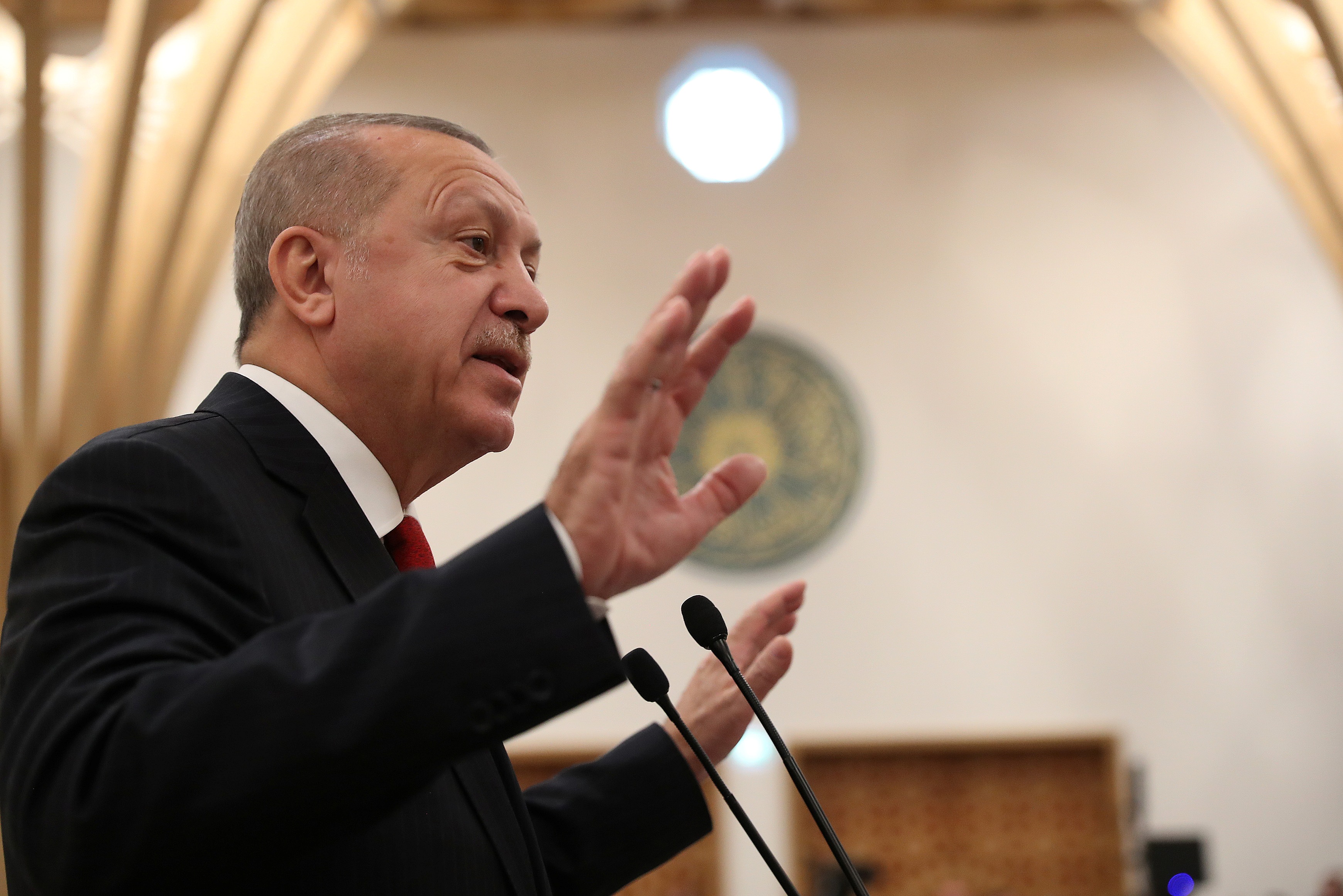 Oysa savaşta bile ibadethanelere dokunulmayacağının altını çizen Erdoğan, "Bırakın katletmeyi, tarih boyunca ibadethanelere sığınan insanların, canı, malı, namusu hep korunmuştur. Şayet bir yerde ibadethaneler hedef alınıyorsa, bombalanıyorsa, yakılıyorsa orada bulunan siviller vahşice öldürülüyorsa insanlık için alarm zilleri çalıyor demektir." ifadelerini kullandı.