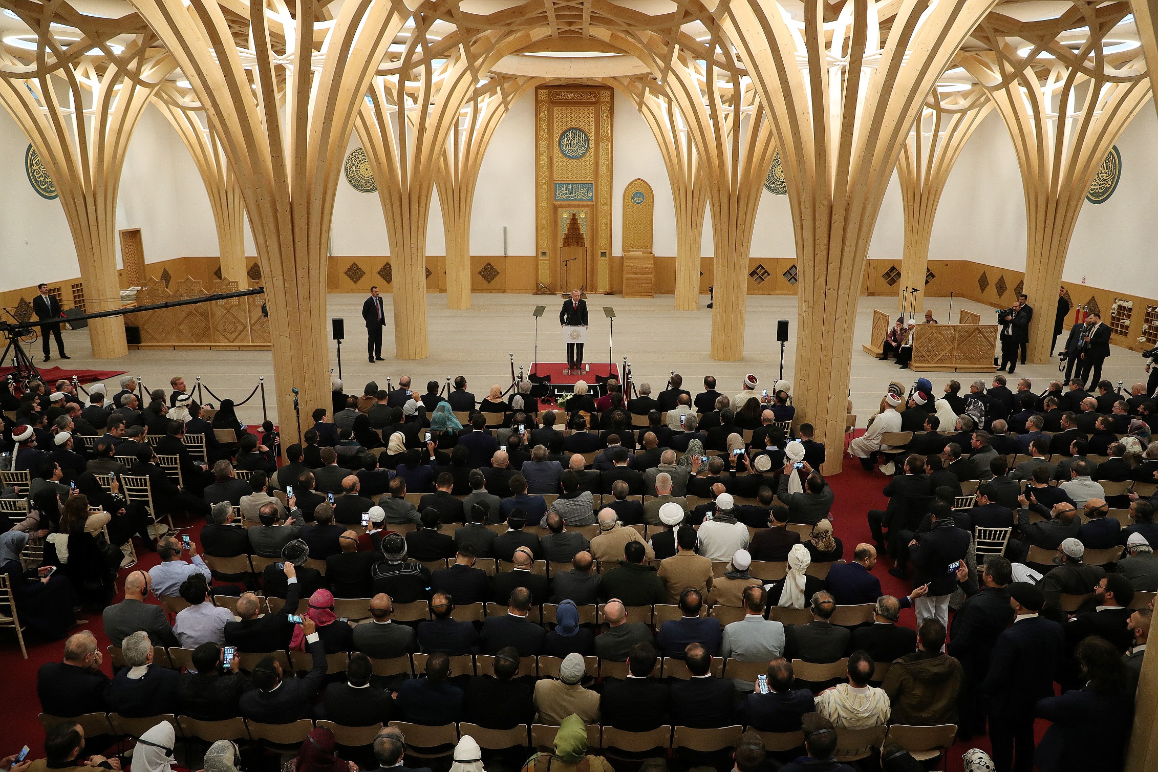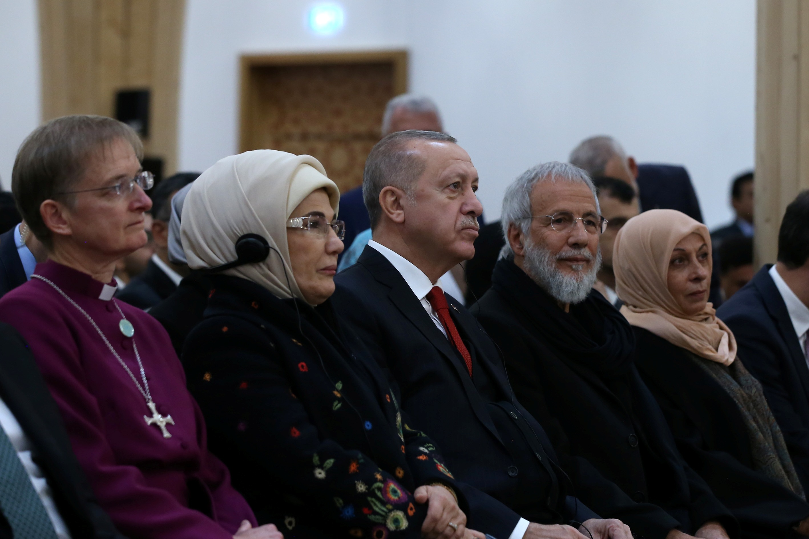"Türkiye olarak bu konuda bir yaklaşım sergileyen Birleşik Krallık makamlarına her türlü desteği vermeyi sürdüreceğiz. Camiler, her gün 5 vakit okunan ezanlarıyla Müslümanları ibadete, insanlığı ise barışa, felaha ve tevhide çağırır. Her cami Allah'ın 'El-Cami' isminin yeryüzündeki tecellisi ve tezahürüdür. İbadet için gittiğimiz camiler bizi birleştirir, kucaklaştırır. Günlük hayatın mücadeleleriyle nasırlaşan kalplerimizi yumuşatır. Bu mukaddes mekanlar bize kulluğumuzu, yani bu dünyadaki asıl varoluş gayemizi hatırlatır. Bu kubbe altında rütbelerin, zengin veya fakir olmanın, işçi ya da işveren olmanın, Arap, Türk, Kürt, Afrikalı, Asyalı olmanın hiçbir önemi yoktur. İşte hepimiz aynı safta, bir aradayız. Zengin-fakir var mı? Yok. Arap-beyaz var mı? Yok. Hep birlikte buradayız. Burada ayrımcılık yok, burada olmadığı gibi işte meydanlarda, sokaklarda, caddelerde de olmamalıdır."