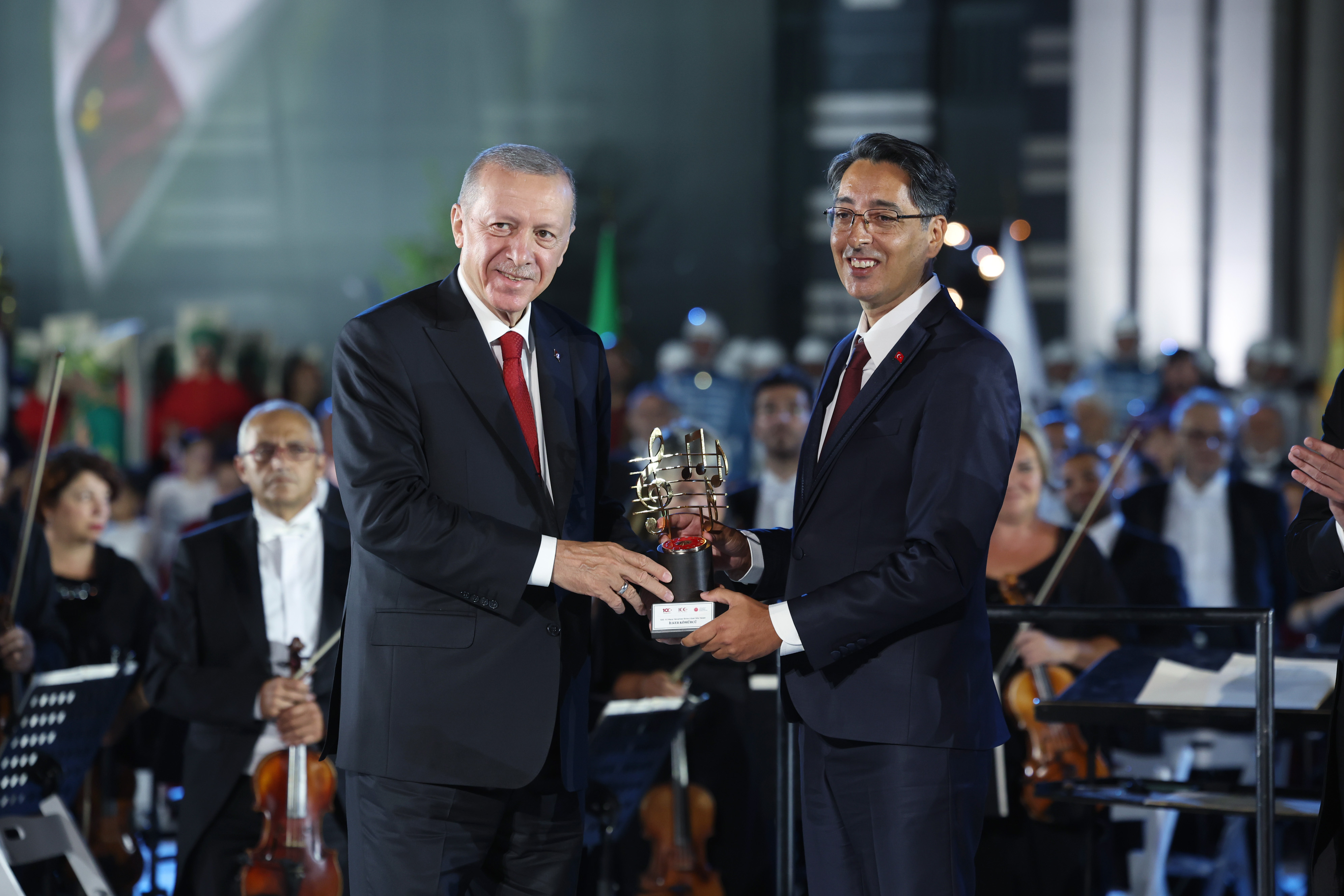 30 Ağustos Zafer Bayramı kutlamaları kapsamındaki "30 Ağustos Zafer Bayramı Özel Konseri ve 100. Yıl Marşı Tanıtım Programı" bandoların parça icrasıyla başladı. Tüfekli gösterinin ardından alana giren Cumhurbaşkanı Erdoğan, CSO'nun seslendirdiği 15 Temmuz Marşı ile karşılandı.