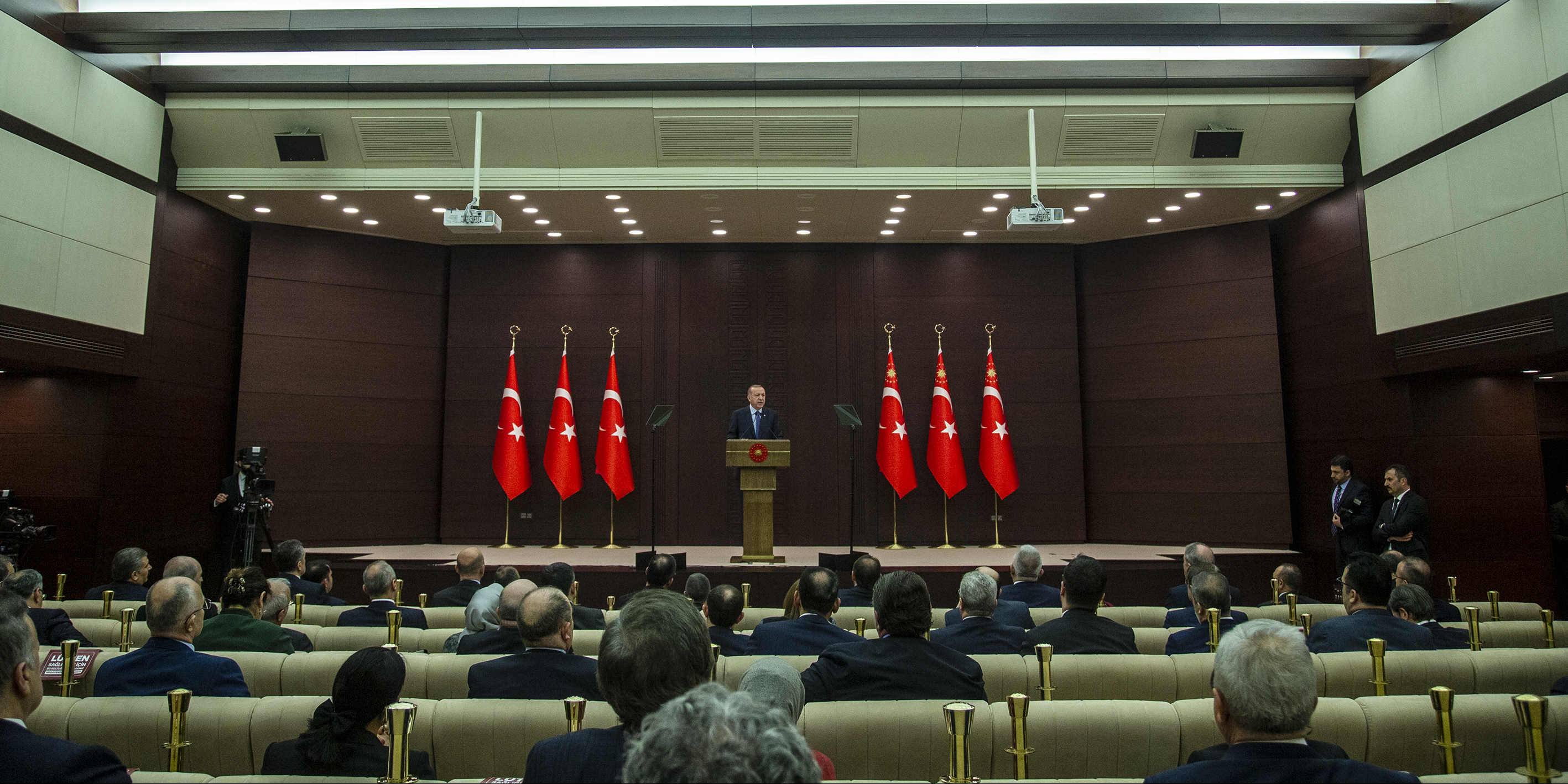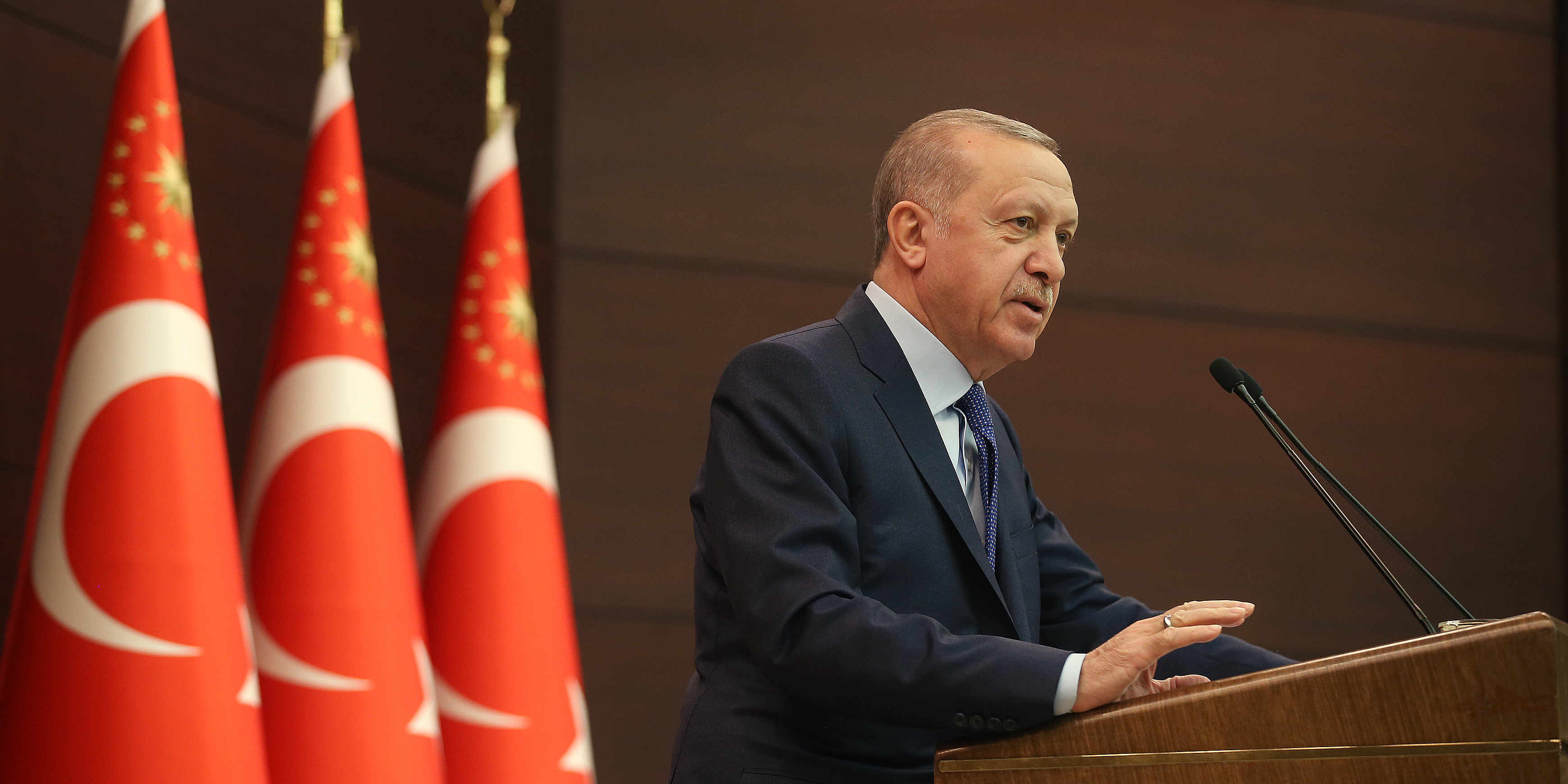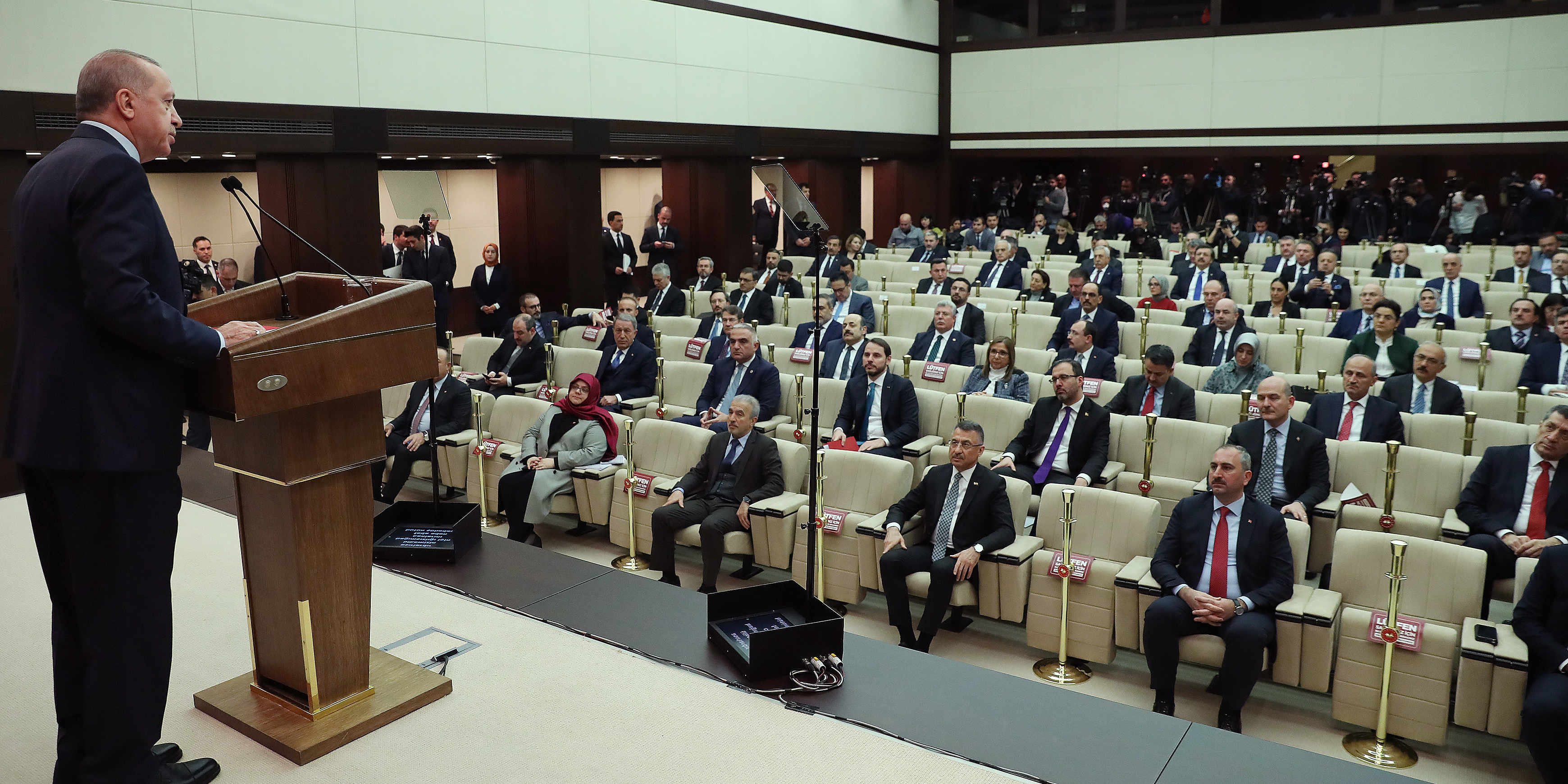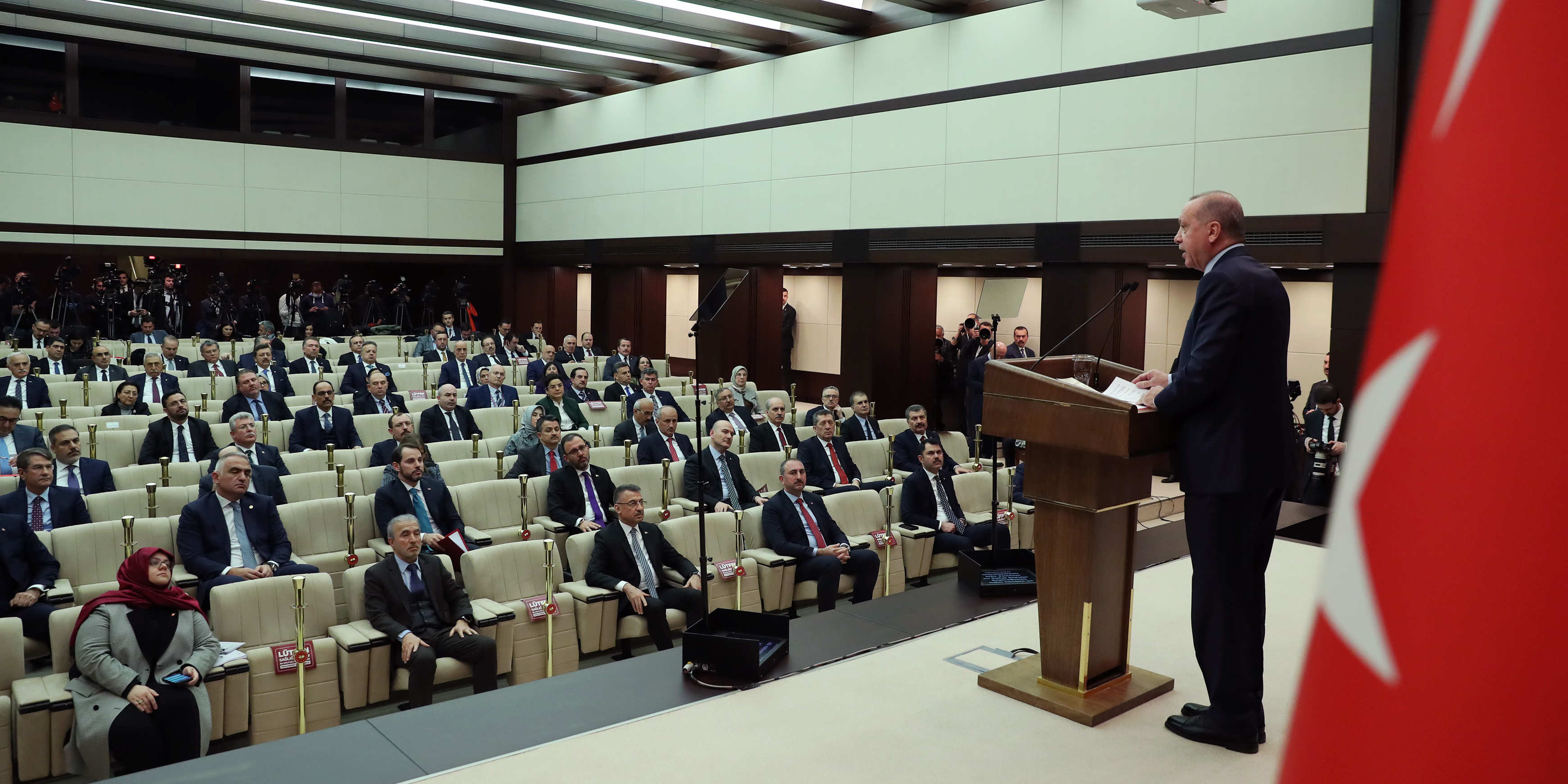 "Nitekim çevremizdeki ülkelerde çok yoğun görülmesine, ciddi kayıplara yol açmasına rağmen, virüsün ülkemize sirayeti hem oldukça geç, hem de oldukça sınırlı olmuştur. Aldığımız tedbirlerin etkisiyle ortaya çıkan bu olumlu görüntüyü sürdürmekte kararlıyız. Bunun için tehlikenin kapımızı çalmasını beklemeden, sürekli yeni ve etkili tedbirler alıyor, uygulamaya geçiriyoruz. Bu çerçevede, biraz önce de bakanlarımızın, iş dünyasından temsilcilerimizin, resmi, sivil ilgili tüm kurumlarımızın temsilcilerinin katılımıyla kapsamlı bir değerlendirme toplantısını gerçekleştirdik.