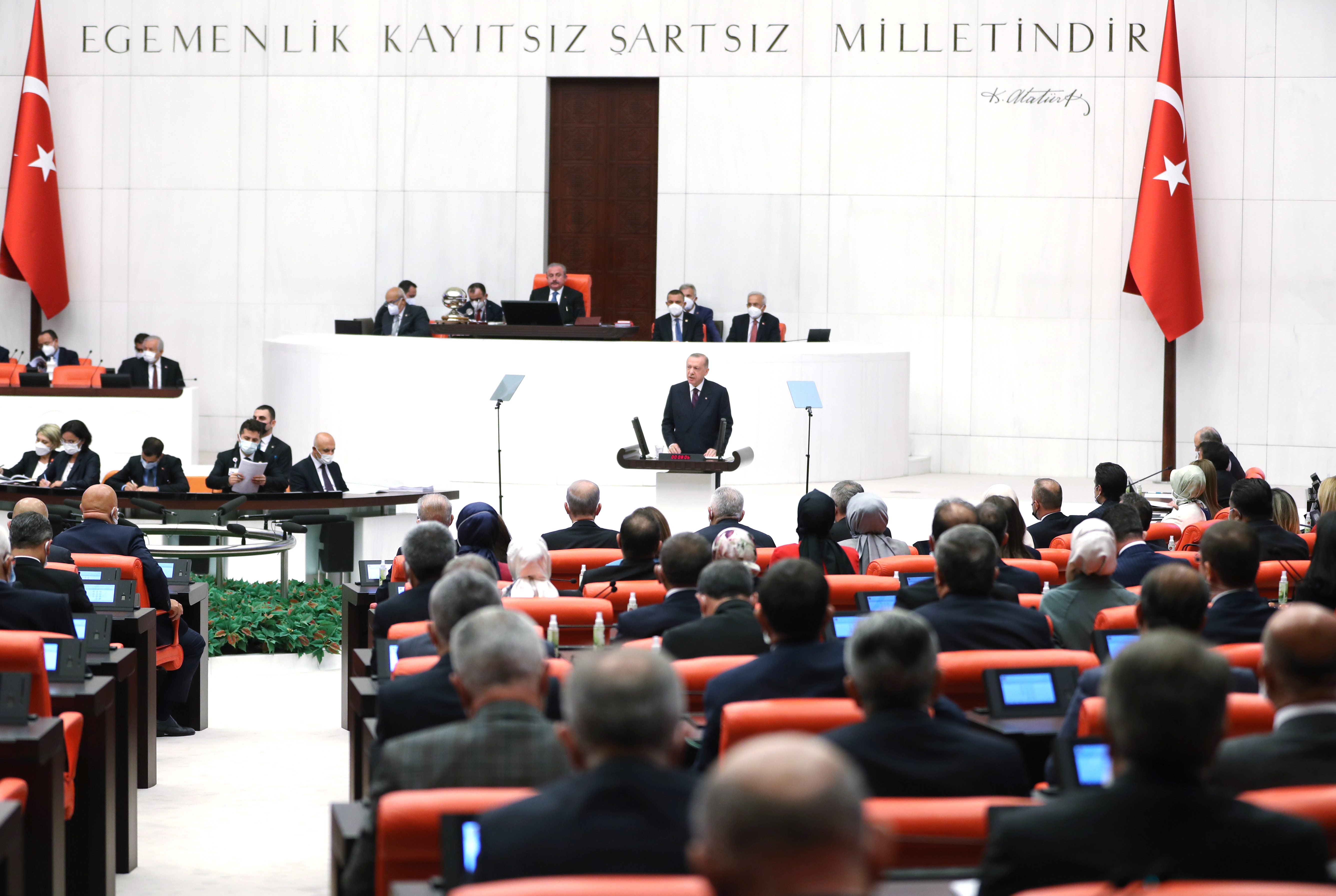 Cumhurbaşkanı Erdoğan, Türkiye Büyük Millet Meclisinin 27'nci Dönem 5'inci Yasama Yılı'nın açılışı dolayısıyla TBMM Genel Kurulunda milletvekillerine hitap etti.