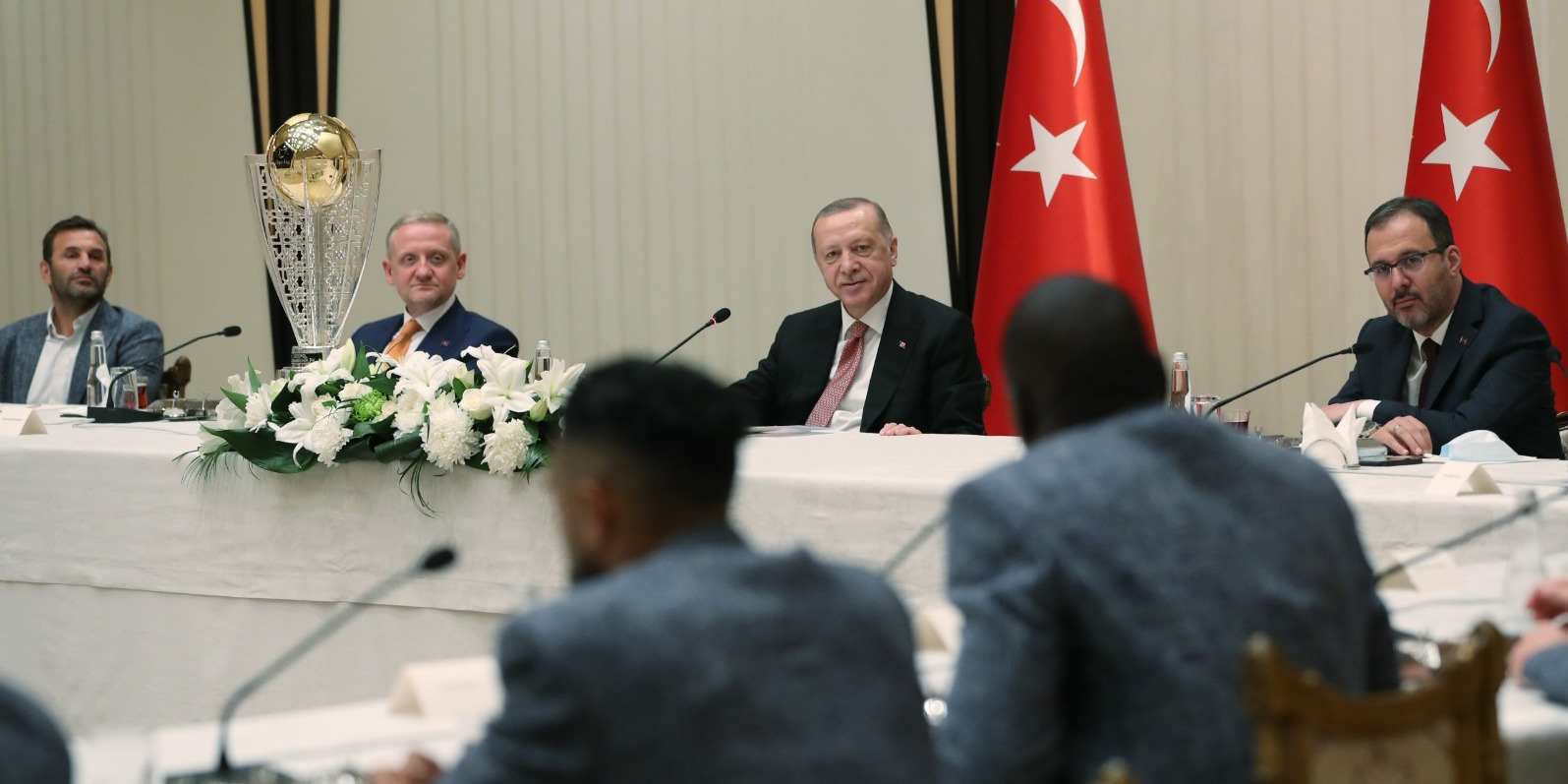 Cumhurbaşkanlığı Külliyesi'ndeki kabul, basına kapalı gerçekleştirildi. Gümüşdağ ve futbolcular Cumhurbaşkanı Erdoğan'a üzerinde ismi yazılı olan 12 numaralı formayı hediye etti.