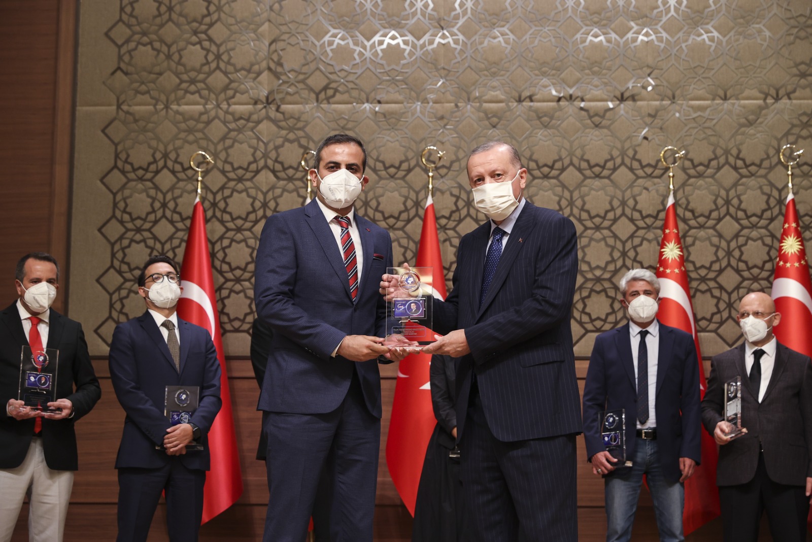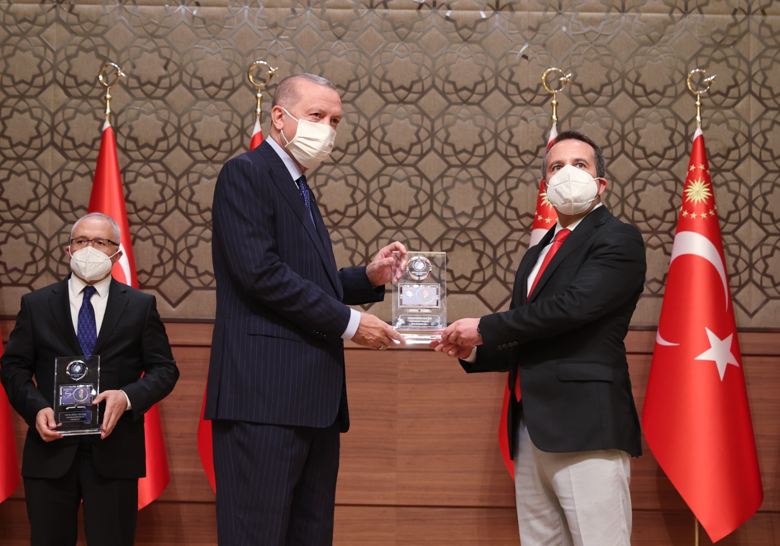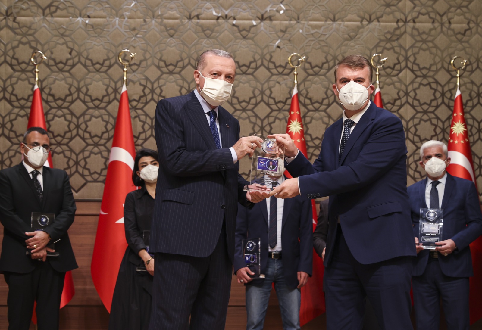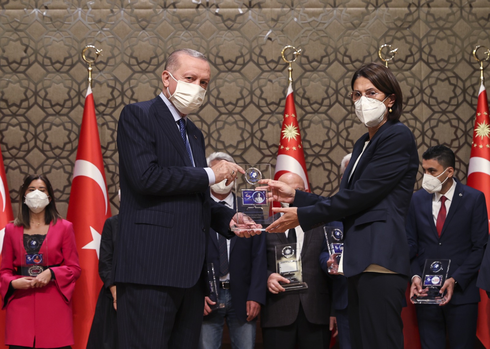 Konuşmaların ardından Cumhurbaşkanı Erdoğan, çeşitli kategorilerde ödüle layık görülenlere ödüllerini verdi.