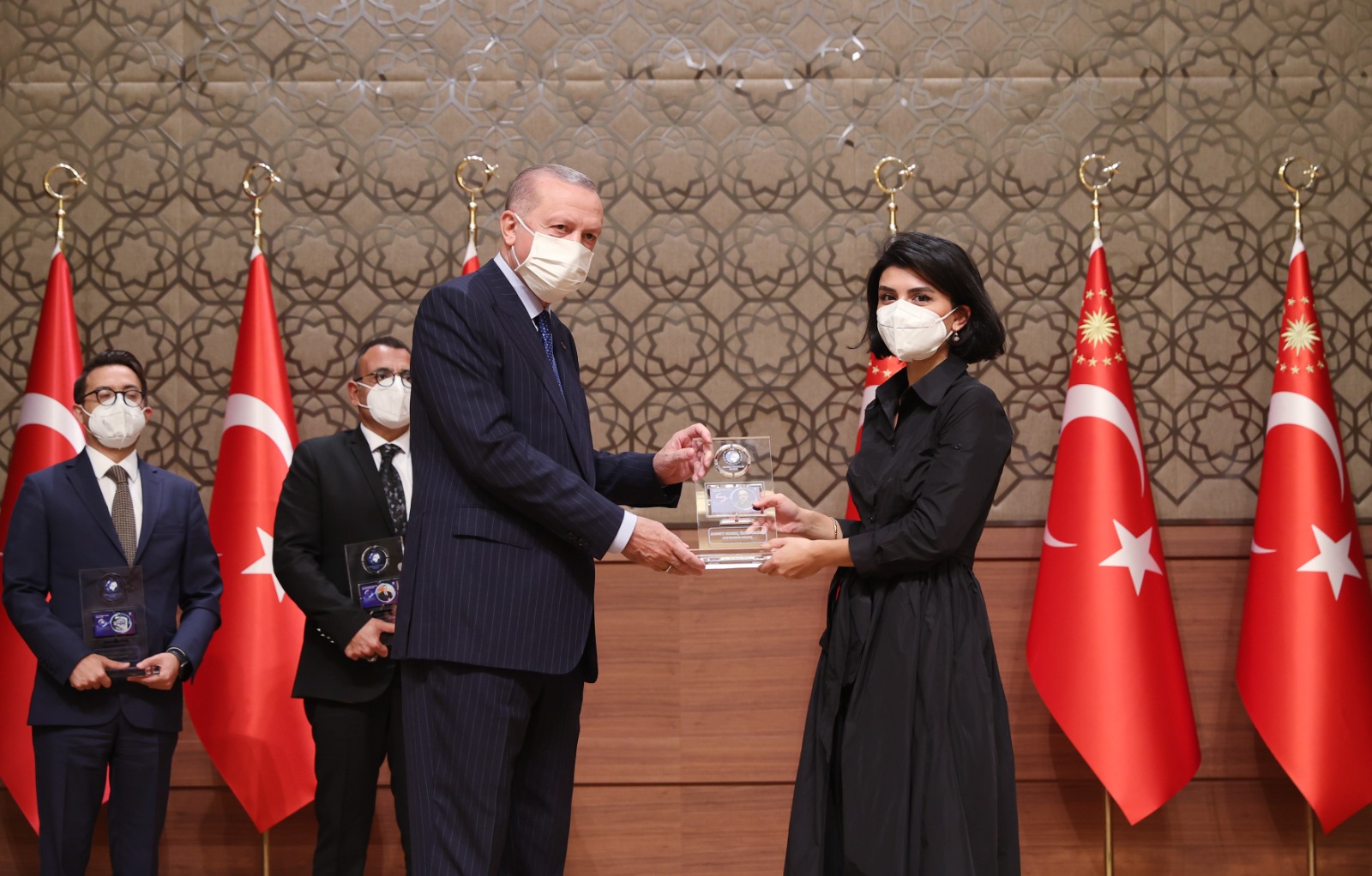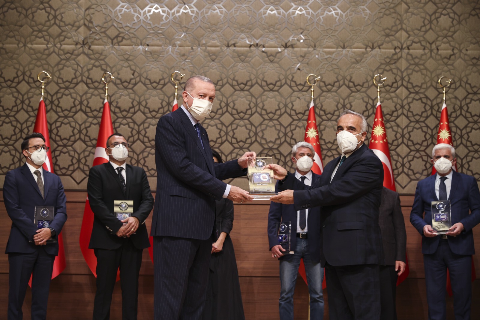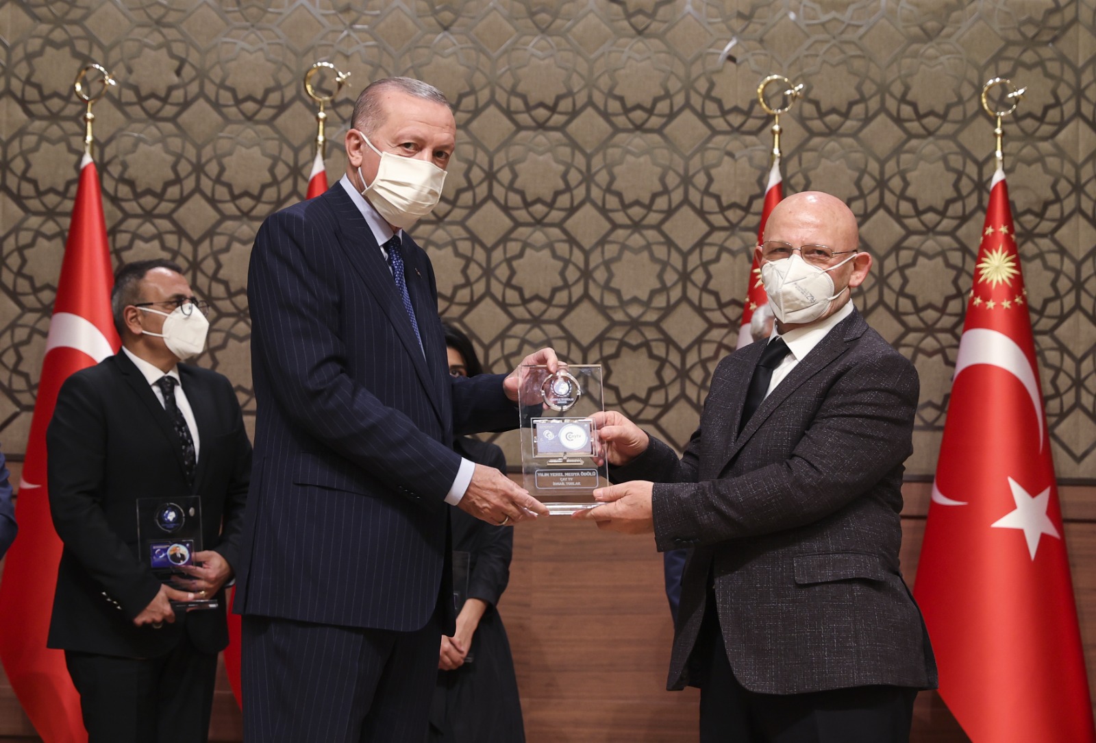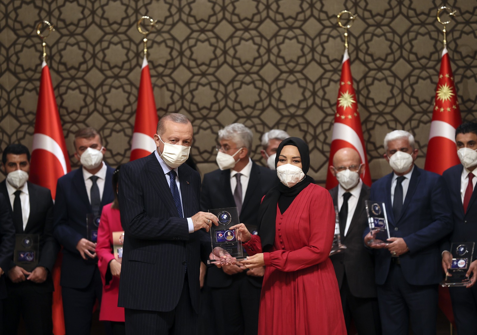 Konuşmaların ardından Cumhurbaşkanı Erdoğan, çeşitli kategorilerde ödüle layık görülenlere ödüllerini verdi.
