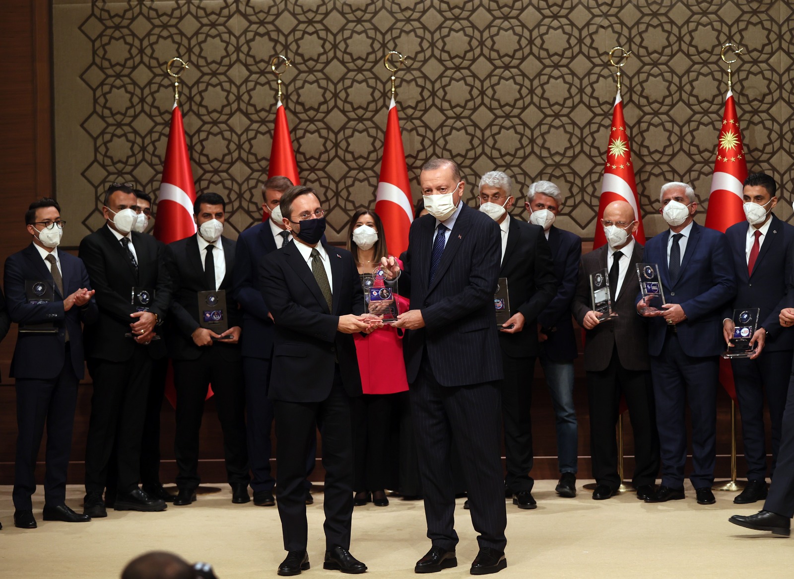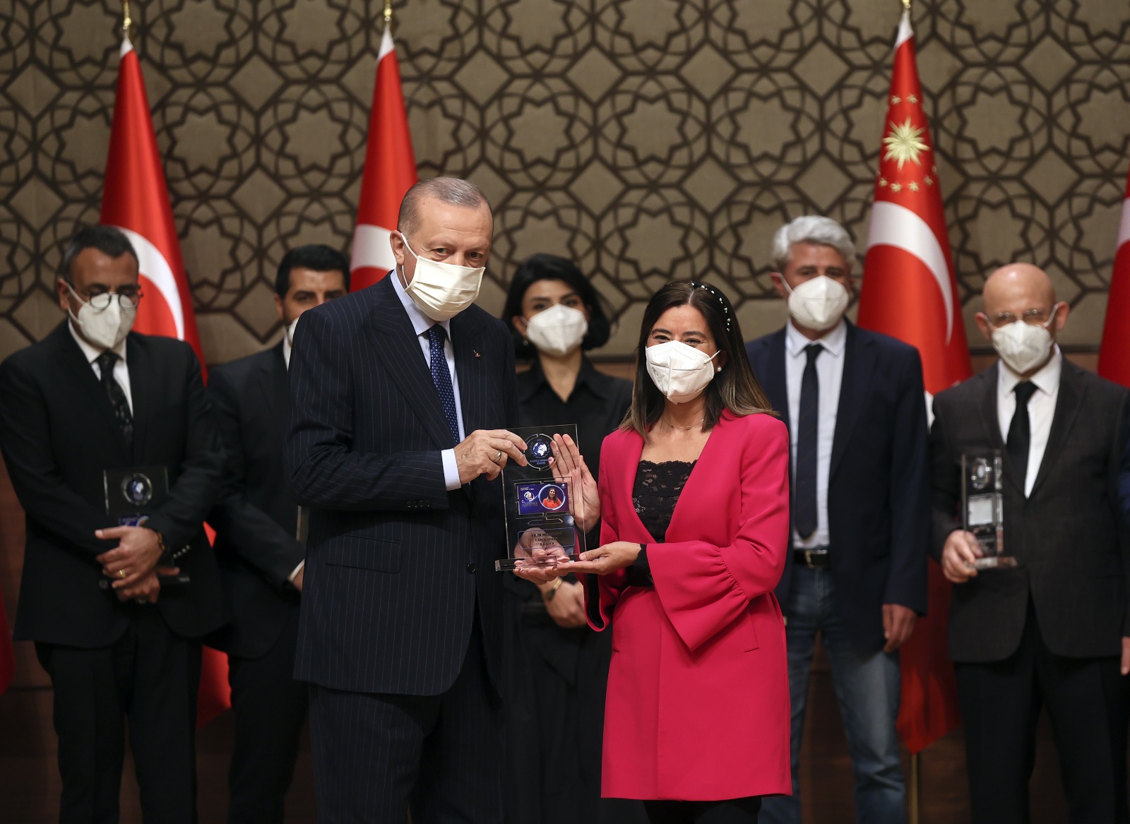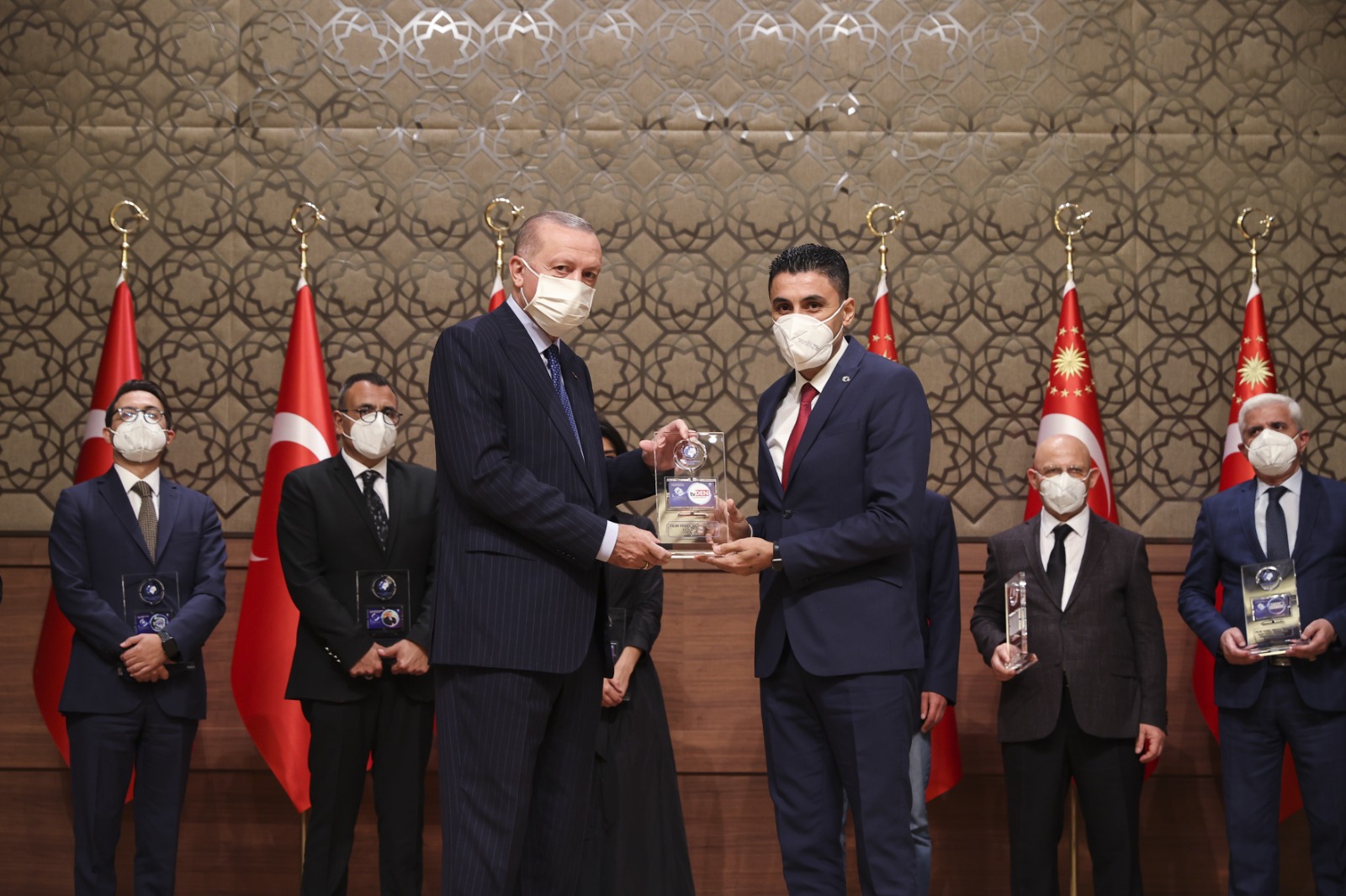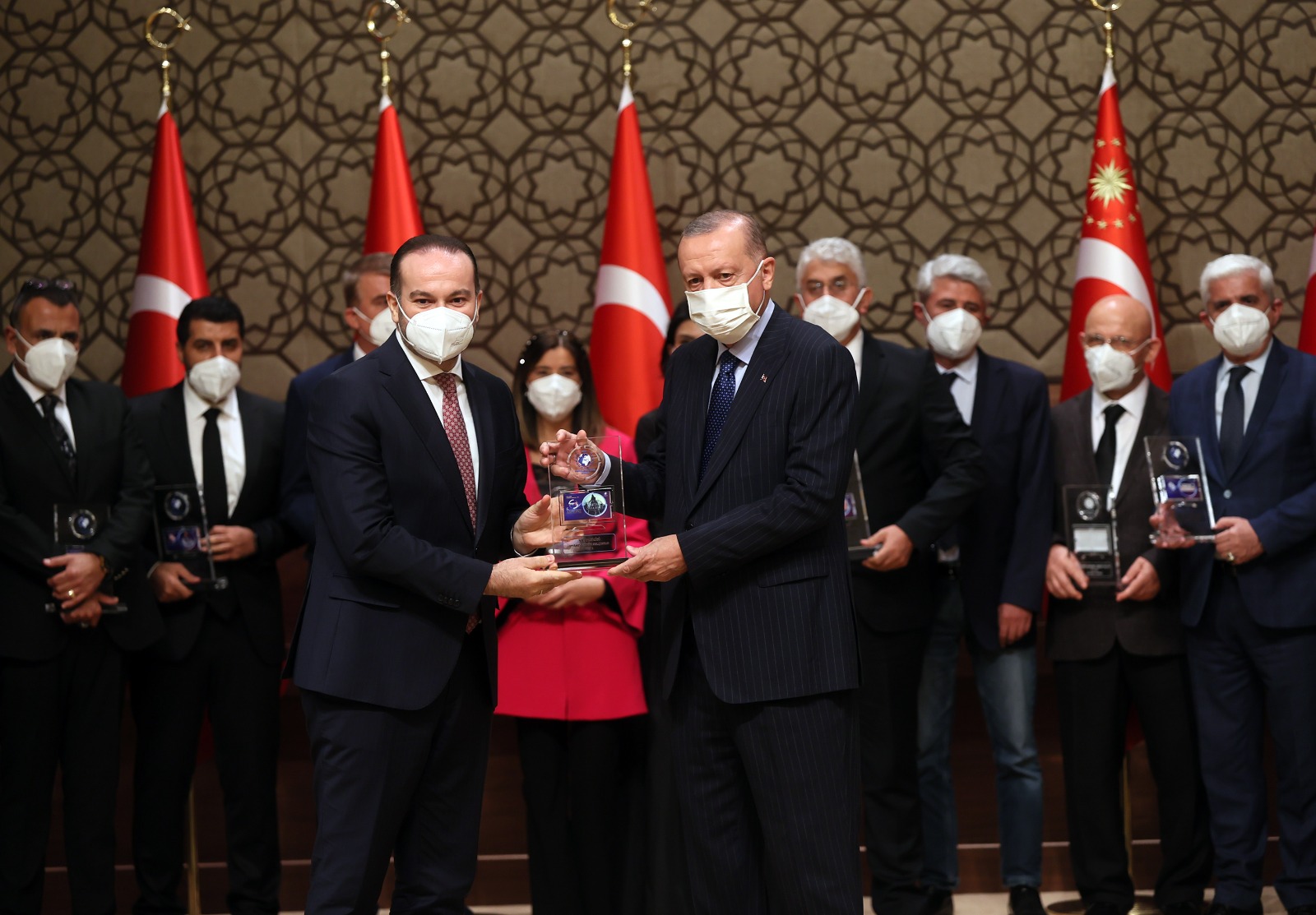 Konuşmaların ardından Cumhurbaşkanı Erdoğan, çeşitli kategorilerde ödüle layık görülenlere ödüllerini verdi.