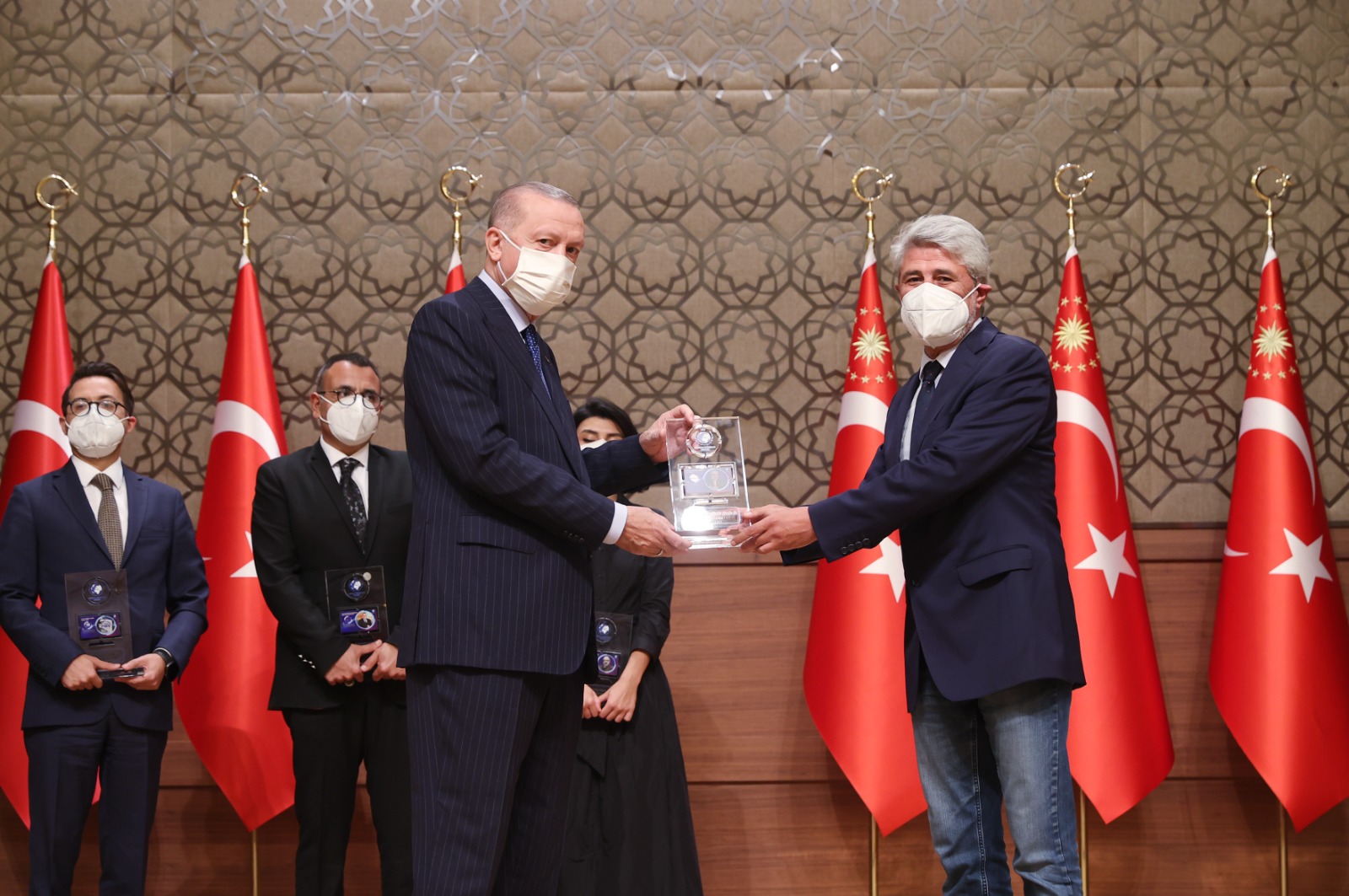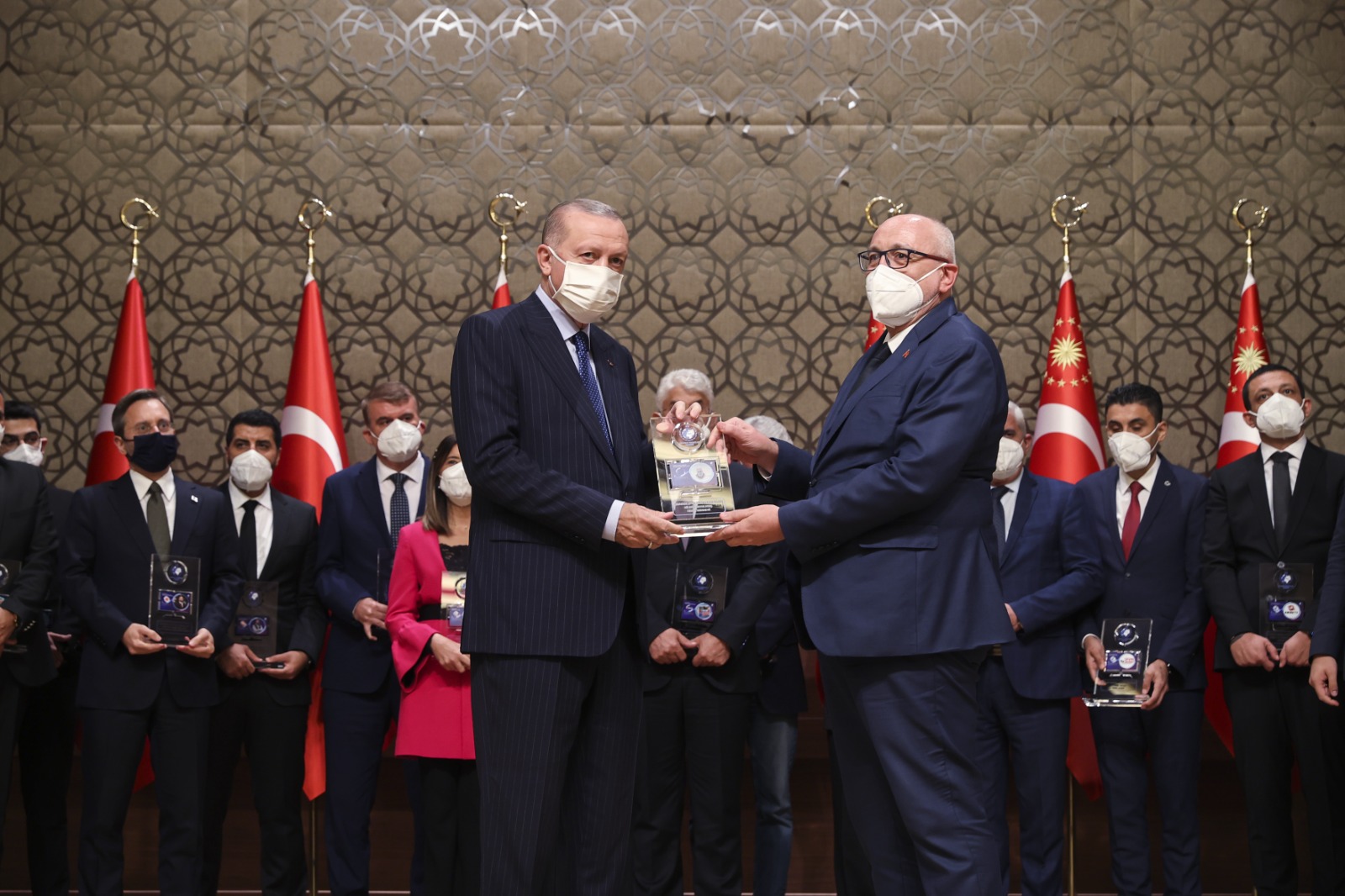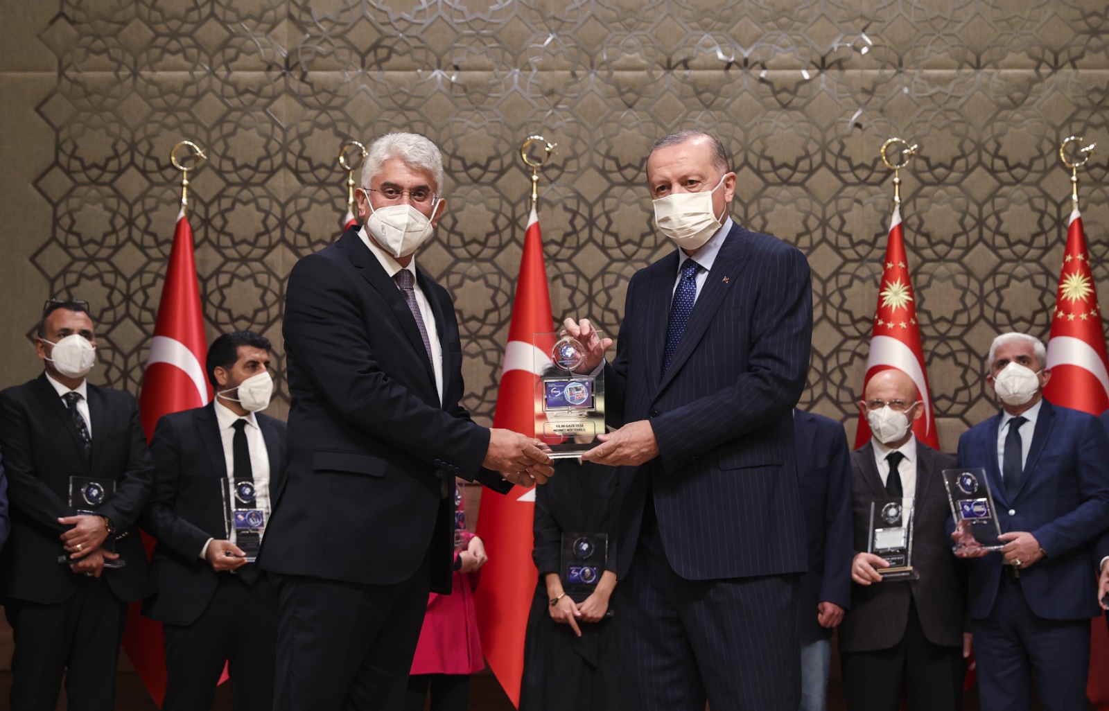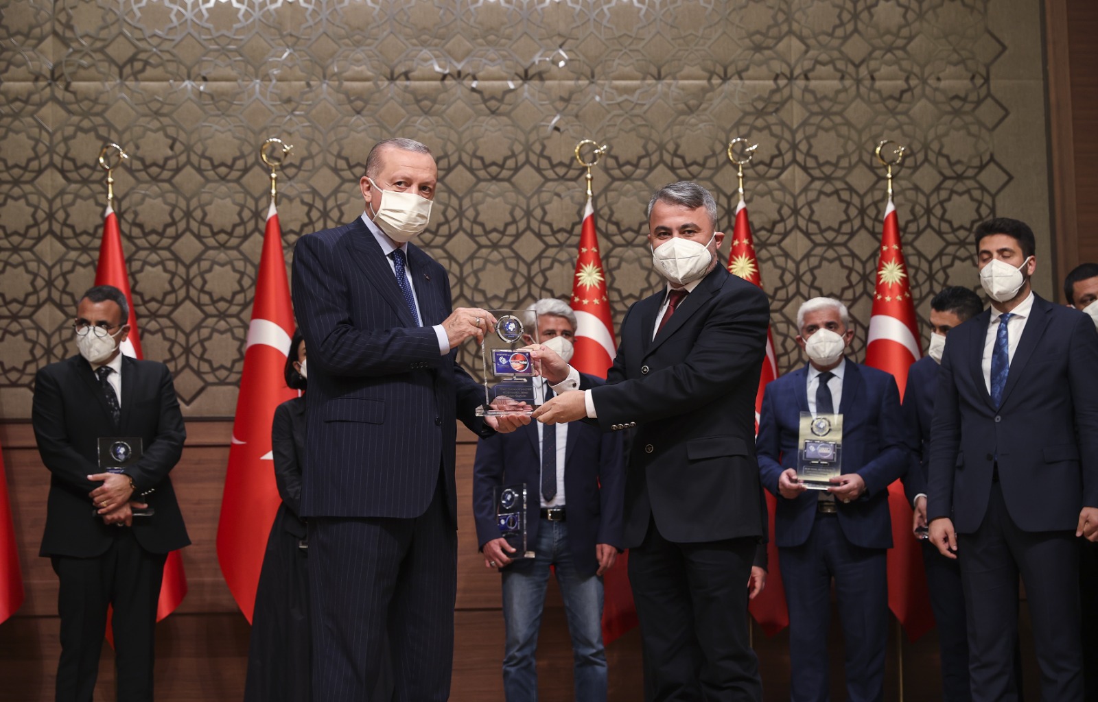 Konuşmaların ardından Cumhurbaşkanı Erdoğan, çeşitli kategorilerde ödüle layık görülenlere ödüllerini verdi.