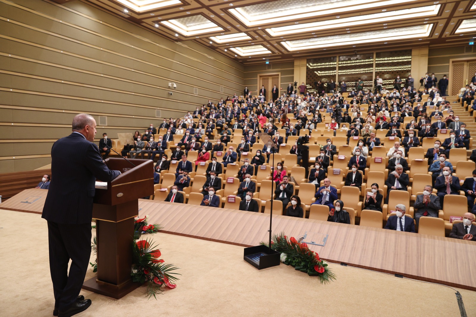 "Türkiye, geçmişte bu içe dönük kavgaların bedellerini hem maddi hem manevi olarak ziyadesi ile ödedi. Geçtiğimiz 19 yılda 81 vilayetimizin tamamını eğitimden sağlığa, ulaşımdan sanayiye, enerjiden spora her alanda gerçekten çok iyi bir altyapıya kavuşturduk. Gençlerimizin heyecanı, kabiliyeti, azmi, gayreti gözlerinden okunuyor. Sahip olduğumuz altyapı üzerinde ihtiyacımız olan asıl büyük sıçramayı yapabileceğimiz bir döneme girdik.