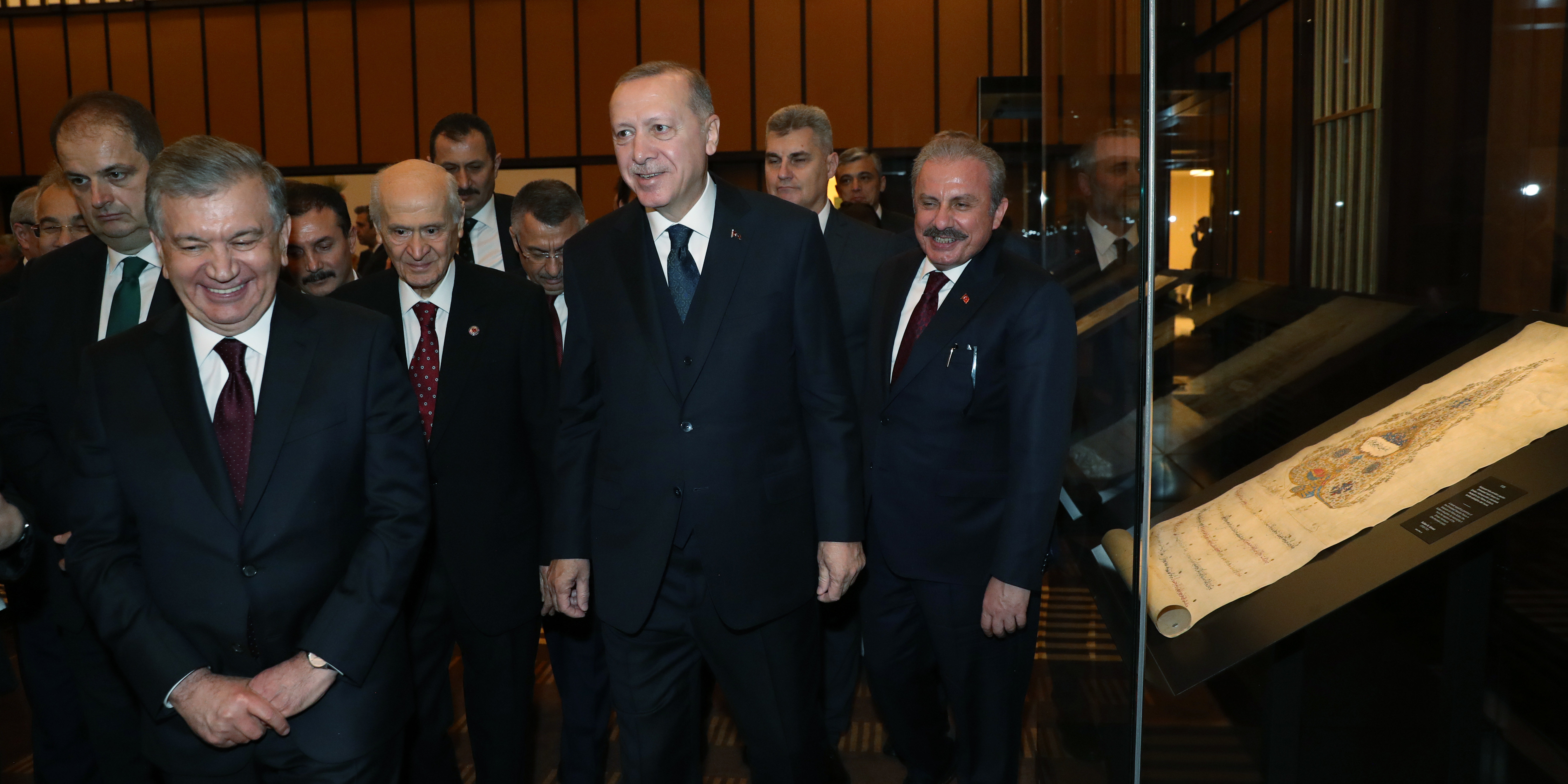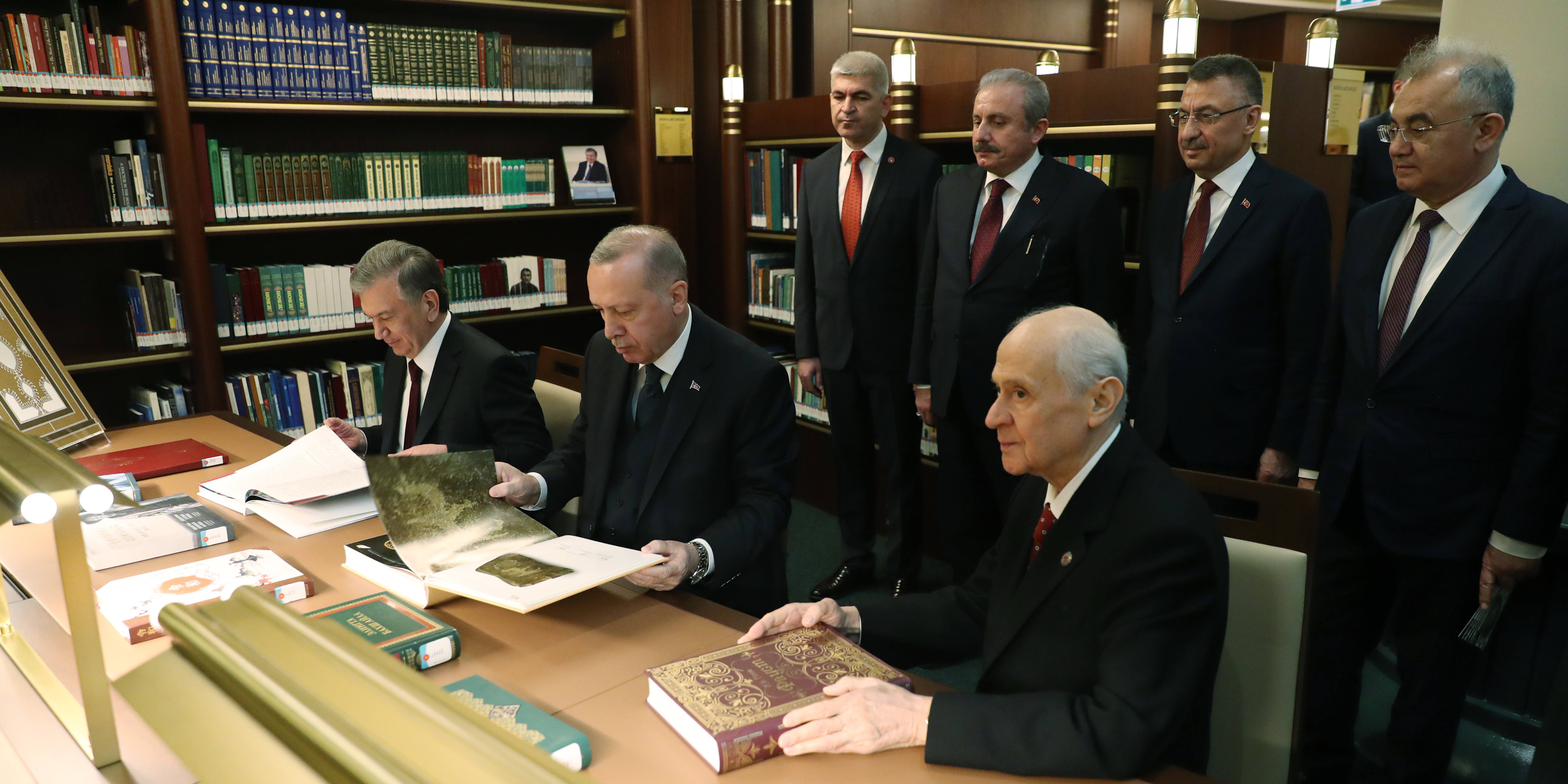 İşte bu ilim iklimi, asırlar boyunca Taşkent ile Ankara, Semerkant ile Konya, Buhara ile Bursa, Hive ile Edirne'yi aynı şekilde beslemiş, zenginleştirmiştir. Bu anlamlı günde Millet Kütüphanemizin açılışını Zat-ı Devletleriyle birlikte yaparak, ortak medeniyetimiz konusunda tüm dünyaya çok önemli bir mesaj verdiğimize inanıyorum. Zat-ı Devletlerinin ata yurdumuzun Yurt Başı olmasını müteakip, 3 sene gibi kısa bir sürede, Amelde Birlik ruhuyla çalışarak ilişkilerimizde çığır açtık."