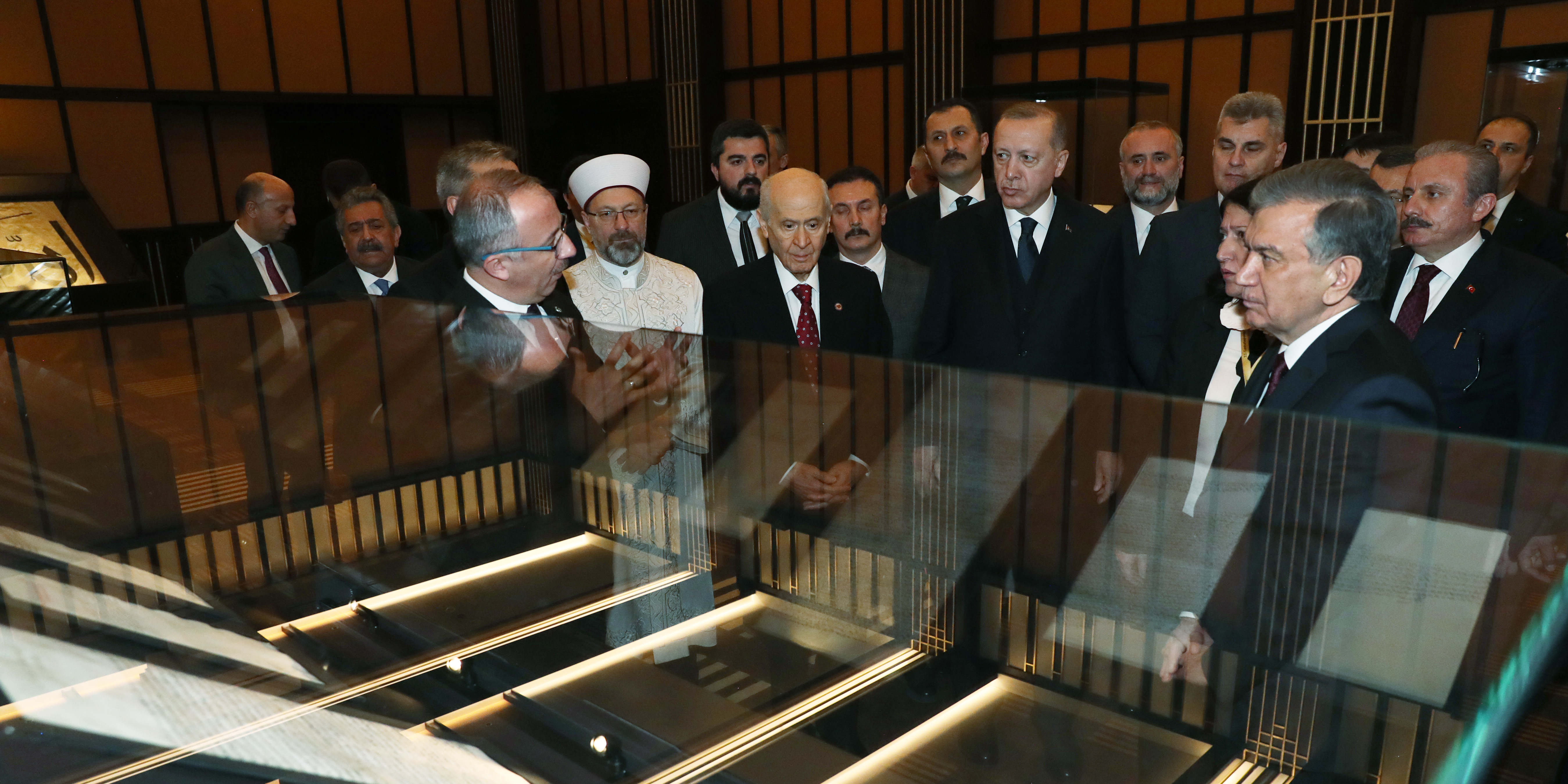 Gençlere ders kitaplarında adlarını öğrendikleri bu eserlerin asıllarını gelip görmelerini tavsiye eden Erdoğan, "Evlatlarımız, kültür ve medeniyet dünyamızın müstesna eserlerini, akl-ı selim, kalb-i selim ve zevk-i selim bir medeniyetin mücevherleri olan kitap sanatlarını burada tanısınlar." dedi.