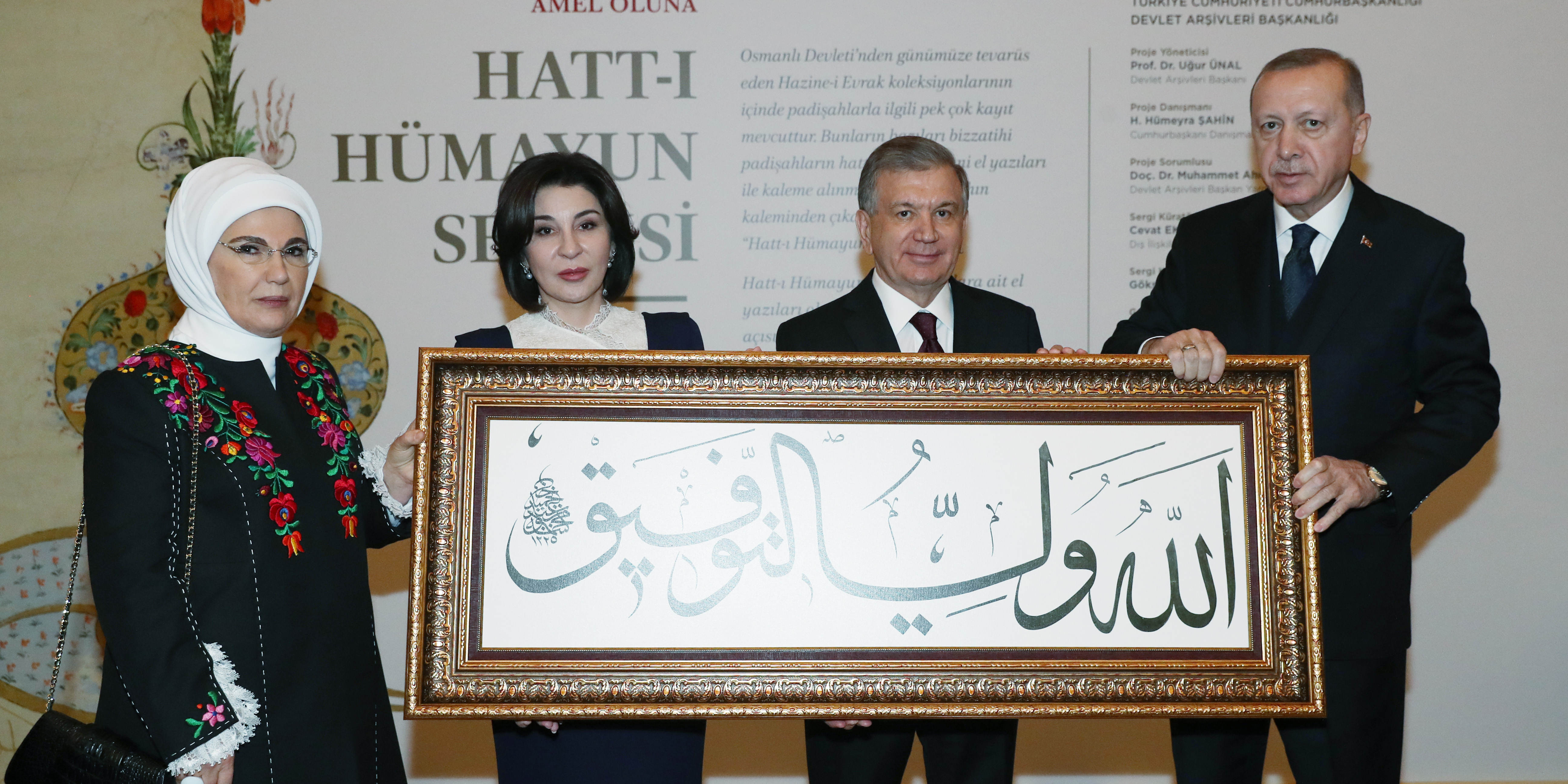 Kütüphanede, çok önemli iki serginin de açılışını yaptıklarını belirten Erdoğan, bu sergilerden birinin Devlet Arşivleri tarafından düzenlenen Hatt-ı Hümayun Sergisi olduğunu bildirdi.