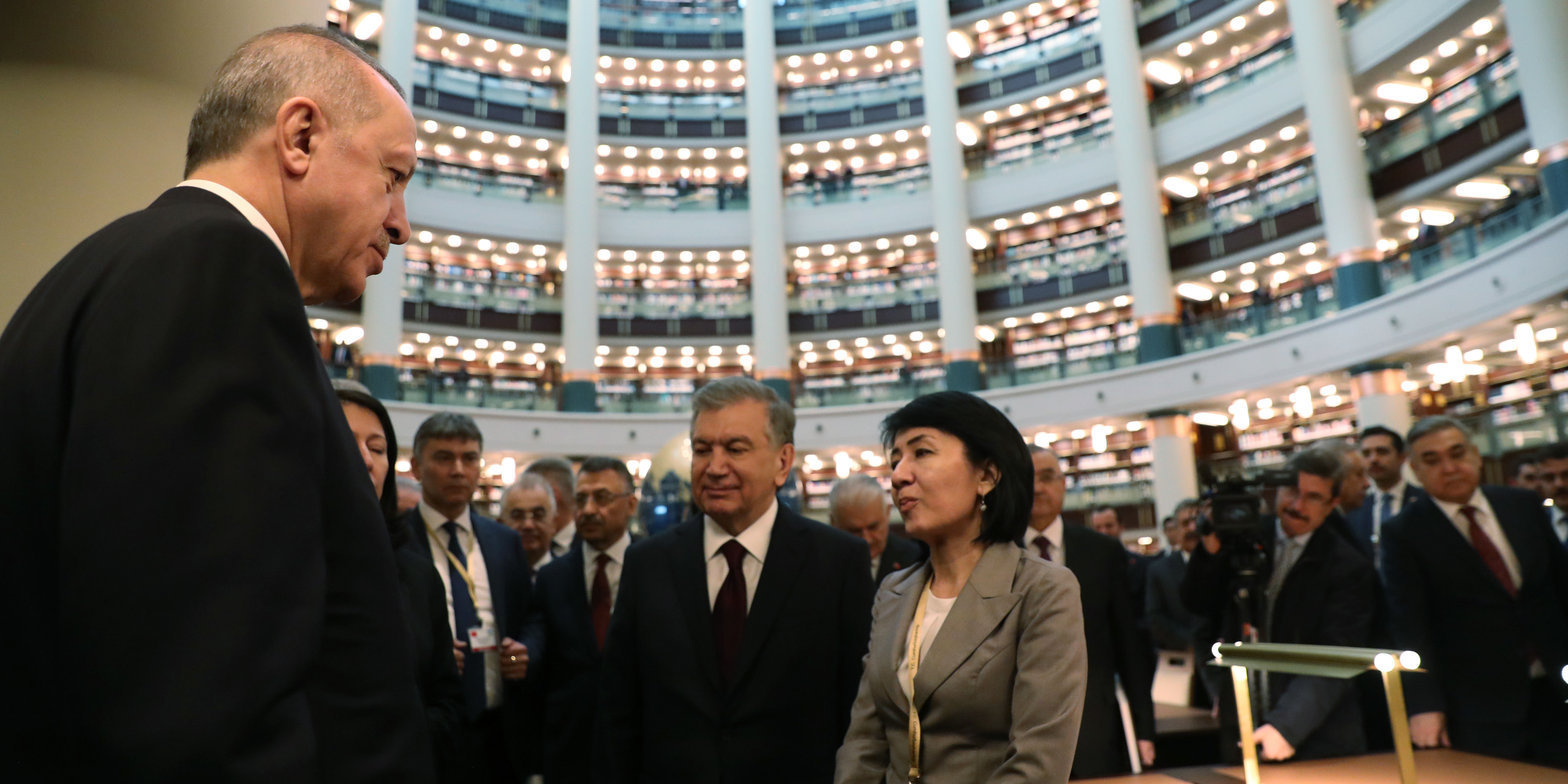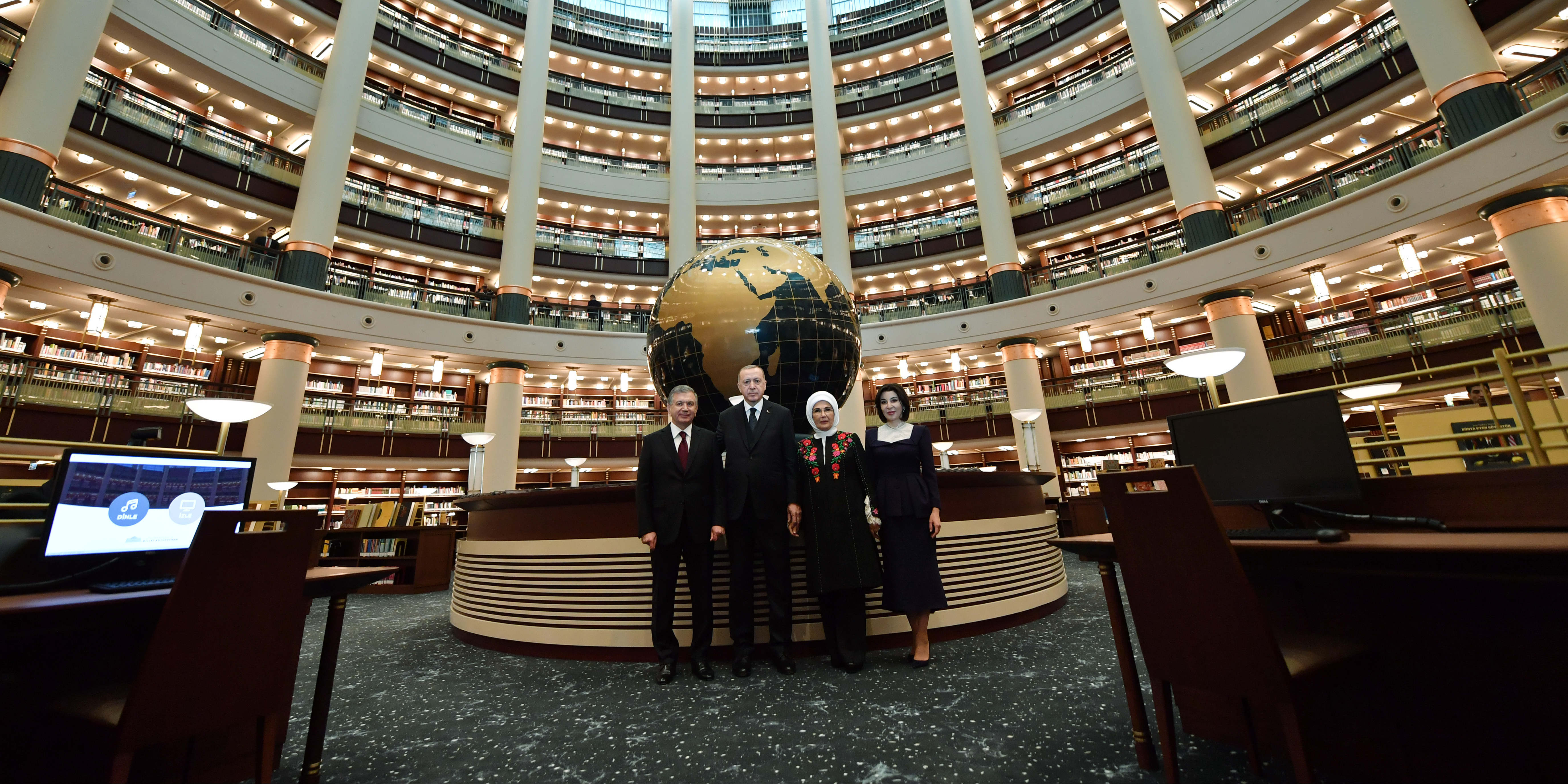 Millet Kütüphanesi'nin hayırlı olmasını dileyen Erdoğan, "Özbekistan Cumhurbaşkanı aziz kardeşim Mirziyoyev ve muhterem hanımefendiye heyecanımıza ortak oldukları için özellikle teşekkürlerimi sunuyorum. Dünyanın farklı ülkelerinden kütüphanemize katkı sunan, destek veren tüm dostlarımıza buradan ayrıca teşekkürlerimi iletiyorum." dedi.
