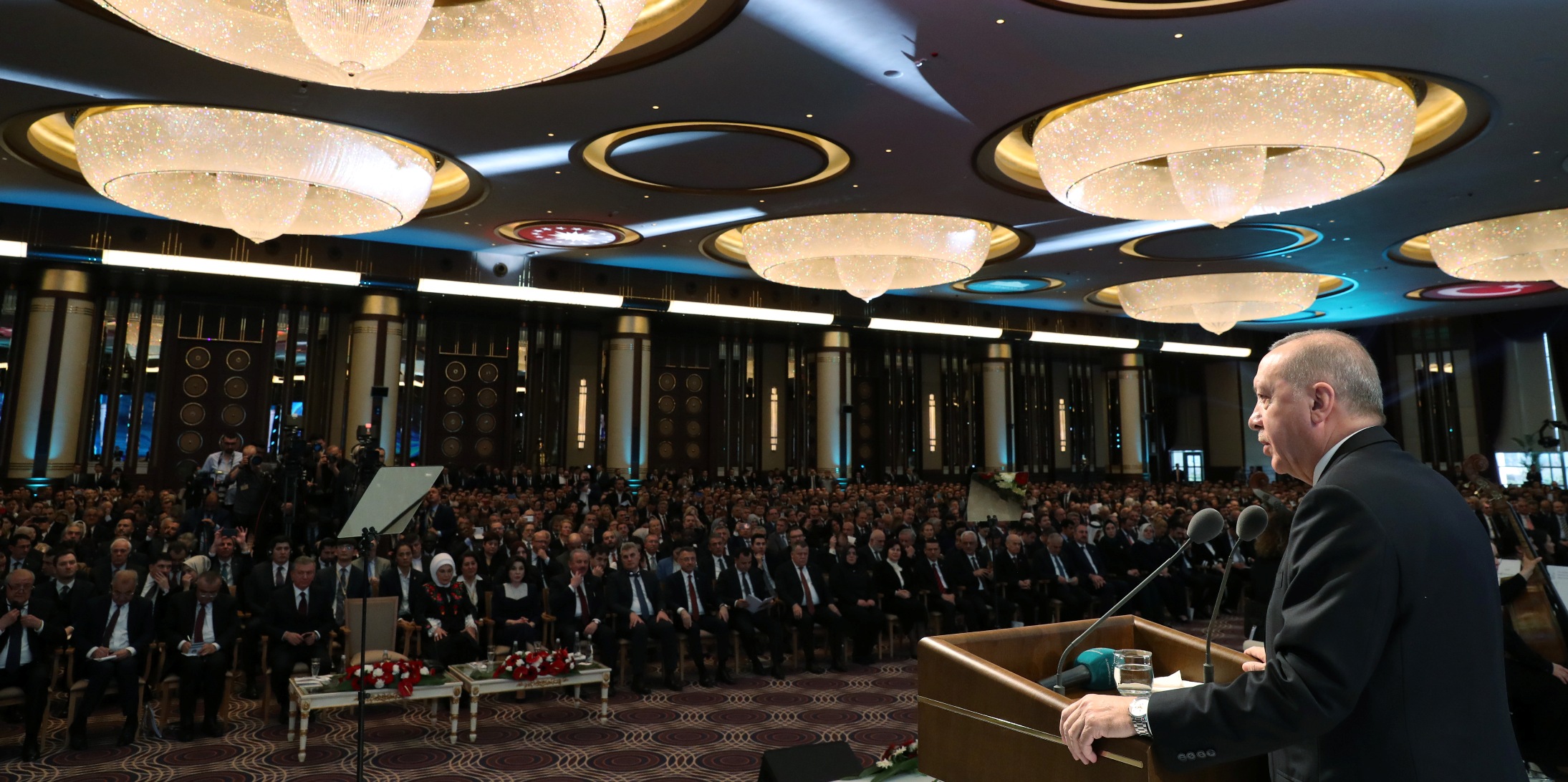 Konuşmasına, Almanya'nın Hanau kentindeki ırkçı terör saldırısında hayatını kaybeden Türk vatandaşlarına Allah'tan rahmet, ailelerine ve sevenlerine sabır niyaz ederek başlayan Erdoğan, "Yaralılarımıza acil şifalar diliyorum. Başta büyükelçiliğimiz görevlileri olmak üzere ilgili tüm birimlerimiz süreci hassasiyetle takip ediyor, vatandaşlarımıza gereken desteği sunuyorlar. Alman makamlarının, saldırıyı tüm boyutlarıyla aydınlatmak için gereken her türlü çabayı göstereceğine inanıyorum." ifadelerini kullandı.