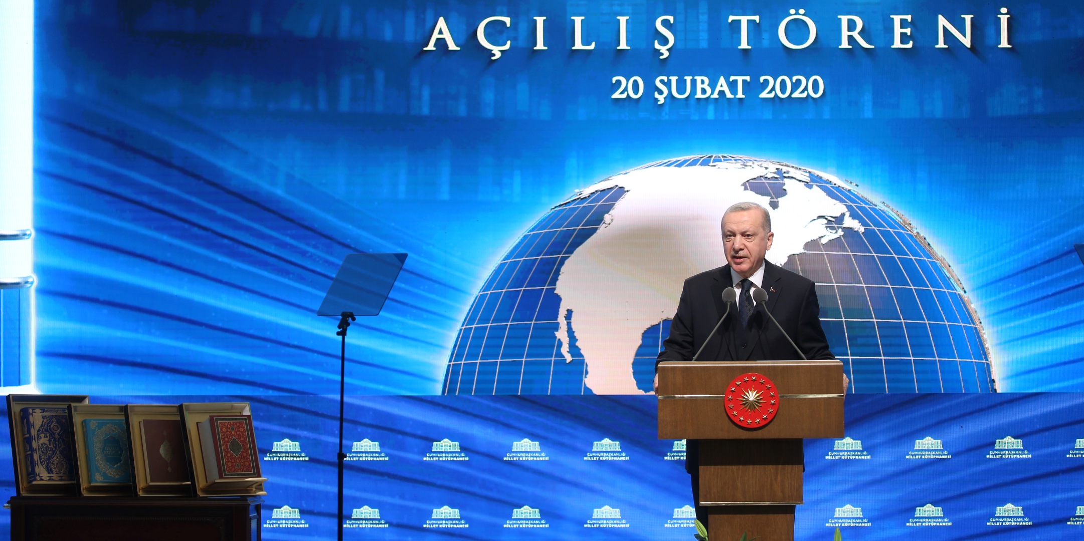 Tarih boyunca nerede bir medeniyet kurma, ihya etme gayreti varsa orada bir kütüphane inşa çabasının da mevcut olduğunu anımsatan Cumhurbaşkanı Erdoğan, "Nerede bir soykırım, savaş, medeniyet yıkımı varsa ilk hedef yine kütüphaneler olmuştur. Hülagü'nün başında olduğu Moğol orduları kütüphaneleri yakarken, Semerkand gibi asude bir şehri inşa eden Timur, kütüphaneler kurarak, Semerkand'ı bilimin başkenti yapmıştır." dedi.